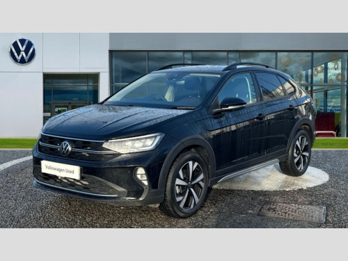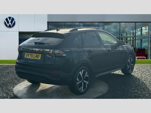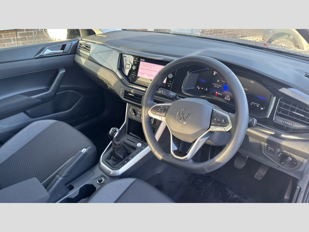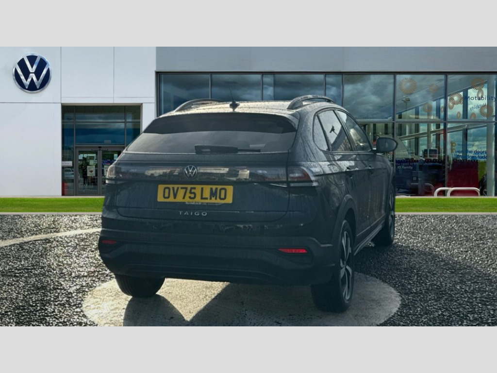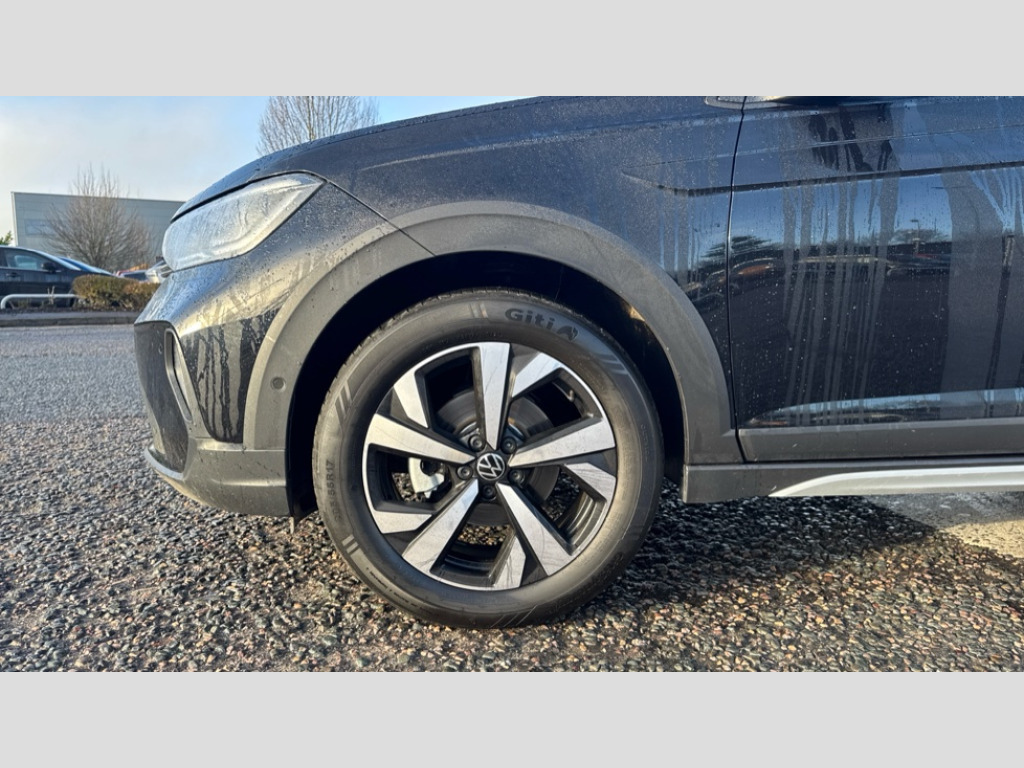 Volkswagen Taigo 1.0 TSI 115 Match 5dr 8" Digital cockpit basic display, Advanced driver attention and drowsiness monitor, Dynamic road sign display, e-Call (emergency call), Power Steering, Predictive adaptive cruise control, Rear view camera, Travel assist including emergency assist, Washer fluid level indicator, Wireless Charging including Bluetooth, Start-stop system with battery regeneration (recuperation - energy recovery during braking), Digital radio reception (DAB+), WeConnect plus, Ambient lighting with logo projection, Aspherical driver's exterior mirror, Body coloured bumpers, Body coloured exterior mirror housings and door handles, Electric windows, External USB type C socket and charging sockets, Heat insulating glass windscreen, LED rear combination lamp, LED third brake light, Left convex exterior mirror, Power folding adjustable/heated exterior mirrors and front passenger exterior mirror lowering function, Rear fog light on one side, reversing light on both sides, Rear side wing doors, Rear wash/wipe with intermittent wipe setting, Side windows in heat-insulating glass, from B-pillar and rear window dark tinted, 'Slash/ Austin' Cloth upholstery, 12V socket in centre console, 2 front reading lights, 3 rear head restraints, 3 seat bench in 2nd row, Black carpets, Ceramique headliner, Child seat anchor for child seat system i-Size, 2x top tether and child seat anchor in front on front passenger side, Door and side trim panels in titan black, Driver and front passenger seat height adjustment, Front centre armrest, Handbrake lever handle in leather, Height and reach adjustable steering wheel, Leather trimmed gear knob, Leather wrapped multifunction steering wheel, Luggage compartment floor, Luggage compartment light, Lumbar support for driver's and front passengers seat, Seat covers in titanium black, Single front passenger seat, Split folding backrest with centre armrest and unsplit rear seat bench, Storage compartment under front seats, Sun visors with illuminated vanity mirrors, Titanium black instrument panel, Chrome Package - Taigo, Drivers assistance package - Taigo, Light and sight pack - Taigo, 2 x 3-point seatbelts/outer rear seats with ECE label, 3-point seat belts in front with pretensioner and height adjustment, 3-point seatbelt for centre rear seat, Driver and front passenger airbag with front passenger airbag deactivation, Driver and front passenger safety-optimised head restraints, Electronic stability control, Extended and predictive pedestrian/ cyclist protection, Front and rear disc brakes, Front curtain and side airbags with center airbag, Hill start assist, Manual rear child locks, Single tone horn, Tyre pressure loss indicator, Anti-theft alarm system with interior monitoring, backup horn, and towing protection, Keyless locking and starting system keyless access with safelock, Black (slush) Dashboard, Lava stone black gloss/matt decorative inserts in dash and front door panels, Low rolling resistance tyres