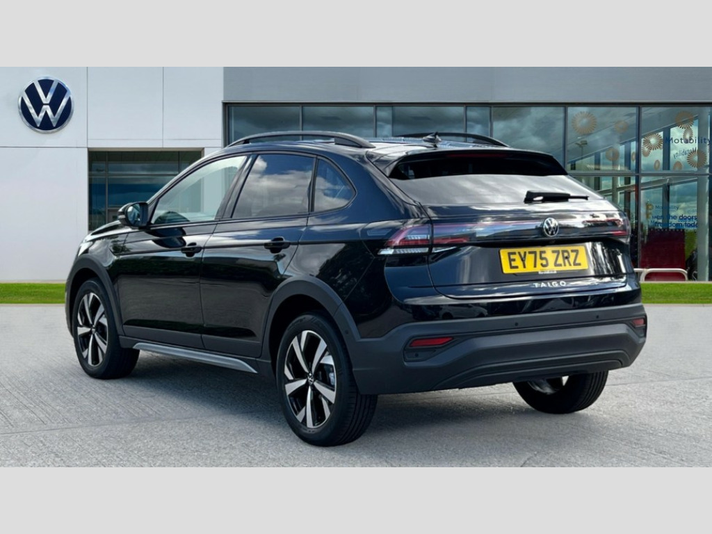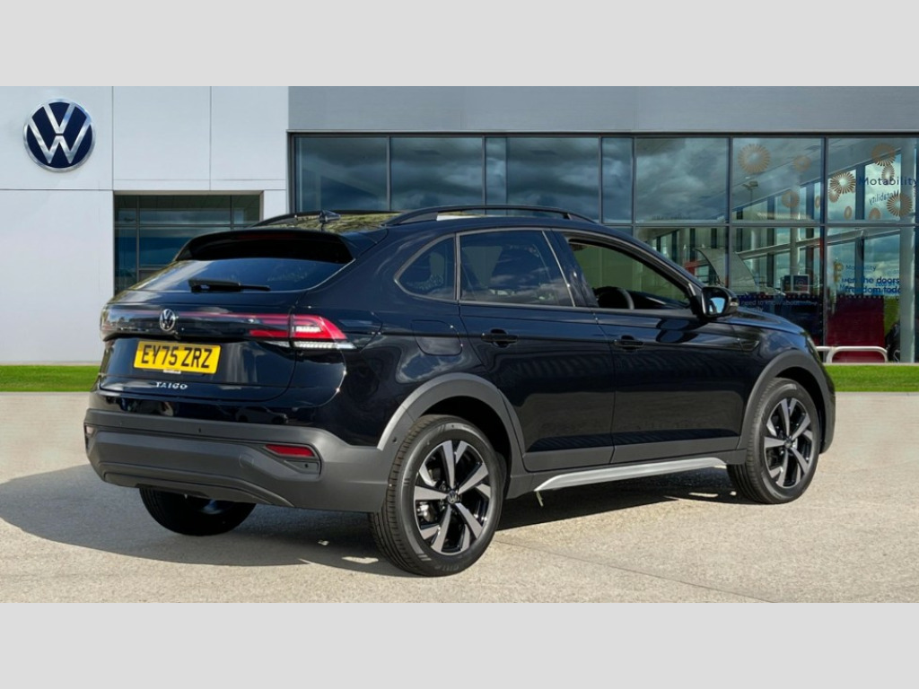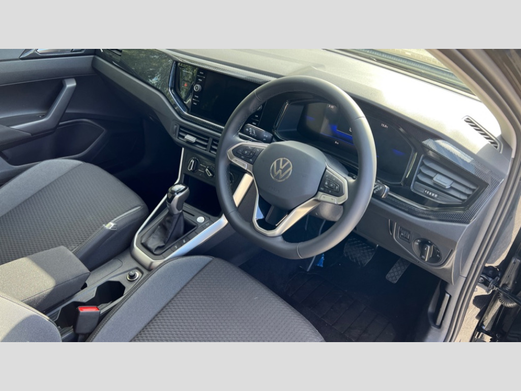 Volkswagen Taigo 1.0 TSI 115 Match 5dr DSG 8" Digital cockpit basic display, Adaptive cruise control, Advanced driver attention and drowsiness monitor, Dynamic road sign display, e-Call (emergency call), Power Steering, Rear view camera, Travel assist including emergency assist, Washer fluid level indicator, Wireless Charging including Bluetooth, Start-stop system with battery regeneration (recuperation - energy recovery during braking), Digital radio reception (DAB+), WeConnect plus, Ambient lighting with logo projection, Aspherical driver's exterior mirror, Body coloured bumpers, Body coloured exterior mirror housings and door handles, Electric windows, External USB type C socket and charging sockets, Heat insulating glass windscreen, LED rear combination lamp, LED third brake light, Left convex exterior mirror, Power folding adjustable/heated exterior mirrors and front passenger exterior mirror lowering function, Rear fog light on one side, reversing light on both sides, Rear side wing doors, Rear wash/wipe with intermittent wipe setting, Side windows in heat-insulating glass, from B-pillar and rear window dark tinted, 'Slash/ Austin' Cloth upholstery, 12V socket in centre console, 2 front reading lights, 3 rear head restraints, 3 seat bench in 2nd row, Black carpets, Ceramique headliner, Child seat anchor for child seat system i-Size, 2x top tether and child seat anchor in front on front passenger side, Door and side trim panels in titan black, Driver and front passenger seat height adjustment, Front centre armrest, Handbrake lever handle in leather, Height and reach adjustable steering wheel, Leather trimmed gear knob, Leather wrapped multifunction steering wheel with paddle shift, Luggage compartment floor, Luggage compartment light, Lumbar support for driver's and front passengers seat, Seat covers in titanium black, Single front passenger seat, Split folding backrest with centre armrest and unsplit rear seat bench, Storage compartment under front seats, Sun visors with illuminated vanity mirrors, Titanium black instrument panel, Chrome Package - Taigo, Drivers assistance package - Taigo, Light and sight pack - Taigo, 2 x 3-point seatbelts/outer rear seats with ECE label, 3-point seat belts in front with pretensioner and height adjustment, 3-point seatbelt for centre rear seat, Driver and front passenger airbag with front passenger airbag deactivation, Driver and front passenger safety-optimised head restraints, Electronic stability control, Extended and predictive pedestrian/ cyclist protection, Front and rear disc brakes, Front curtain and side airbags with center airbag, Hill start assist, Manual rear child locks, Single tone horn, Tyre pressure loss indicator, Anti-theft alarm system with interior monitoring, backup horn, and towing protection, Keyless locking and starting system keyless access with safelock, Black (slush) Dashboard, Lava stone black gloss/matt decorative inserts in dash and front door panels, Low rolling resistance tyres