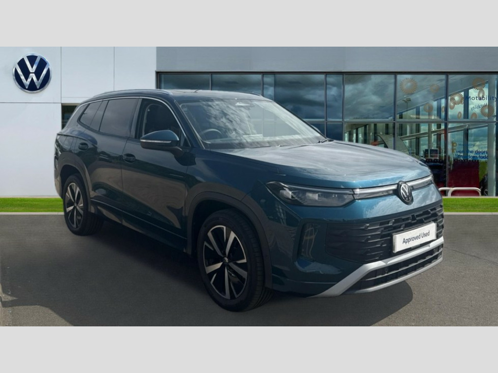 Volkswagen Tayron 1.5 TSI eHybrid Match 5dr DSG6 Adaptive cruise control (ACC), Digital Cockpit Pro - 10.25" high resolution dash display screen with customisable menus and information, Driver alert system, Driver attention monitoring system, Dynamic road sign display, E-Sim card for online connectivity, eCall emergency call system, Lane change system, Side assist, Rear traffic alert and Exit warning system, Multifunction front facing camera, Oncoming vehicle braking when turning including swerve support, Power assisted steering with speed sensitive, Start/stop system with regenerative braking, Voice activation spoken voice commands for telephone and navigation system, Warning signal and warning light for front and rear seatbelts not fastened, Wireless App-Connect, Adaptive chassis control DCC pro includes driving mode selection, Charging cable Mode 2 Type 2 / G (10A), Charging cable Mode 3 Type 2 / 3 (16A), Front shock absorption G08, Front wheel drive, Rear shock absorption, Digital radio reception (DAB), Diversity antenna for FM reception, Auto dimming interior rear view mirror, Automatic headlight control system, Body colour door handles, Body-coloured exterior mirror housings, Chrome moldings on the side windows, Comfort bumpers, Coming/leaving home lighting function, Exterior mirrors convex on the left and aspherical on the right, Heat insulating glass in side and rear windows, Laminated safety glass winshield, heat insulating, LED 3rd brake light, Puddle lights, Rain sensor windscreen wipers, Rear fog light on one side, reversing light on both sides, Rear side wing doors, Rear wiper, Reverse activated passenger's door mirror, Surround lighting with welcome light, Tilting and sliding panoramic sunroof with rear panoramic sunroof, 12V outlet in center console rear and in luggage compartment, 3 rear headrests, 3 rear seat bench in 2nd row, split folding, longitudinally movable and folding with load-through hatch, Carpet mats, front and rear, Centre console with illuminated storage compartment with sliding cover and two drinks holders, Door and side trim panel with leatherette insert, Flat luggage compartment floor, Front centre armrest, ISOFIX anchors for child seats on outer rear seats and front passenger seat compatible with i-Size, Mechanical rear seat release, Power adjustable lumbar support in front, Single front passenger seat, Sun visors with illuminated vanity mirrors, Comfort package with park assist pro - Tayron, 3 Point seat belts in front with pretensioners, 3 point seatbelts in outer rear with ECE label, Autonomous emergency braking front assist with pedestrian and cyclist monitoring, Driver and front passenger airbag with front passenger airbag deactivation, Electronic parking brake with auto hold, First aid kit with warning triangle and safety vest, Front and rear curtain airbags, Front and rear side airbags, Front centre airbag, Front disc brakes, Hill start assist, Rear disc brakes, Two tone horn, Decorative material set, Tool kit for tyre mobility set, Tyre mobility kit including compressor and sealing foam. In lieu of spare wheel