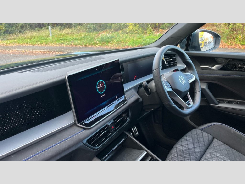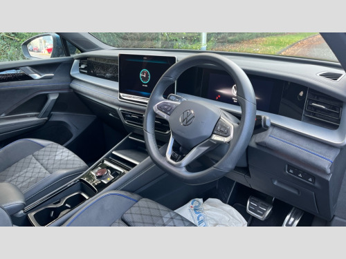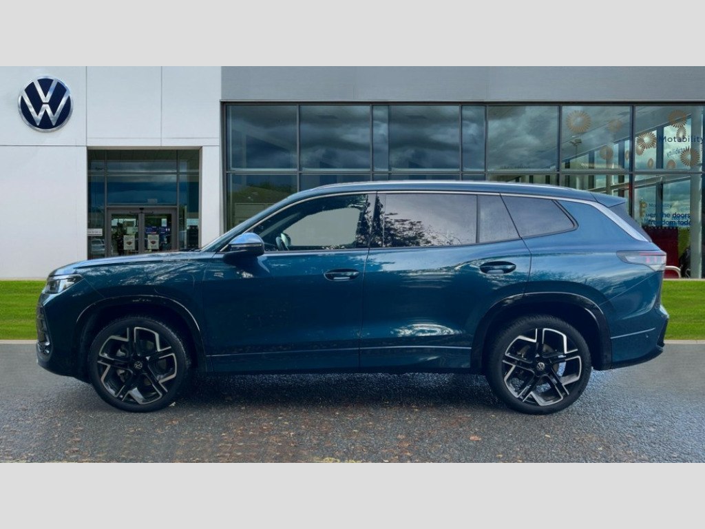 Volkswagen Tayron 1.5 TSI eHybrid R-Line Edition 5dr DSG6 Adaptive cruise control (ACC), Digital Cockpit Pro - 10.25" high resolution dash display screen with customisable menus and information, Driver alert system, Driver attention monitoring system, Dynamic road sign display, E-Sim card for online connectivity, eCall emergency call system, Lane change system, Side assist, Rear traffic alert and Exit warning system, Multifunction front facing camera, Oncoming vehicle braking when turning including swerve support, Progressive steering, Start/stop system with regenerative braking, Voice activation spoken voice commands for telephone and navigation system, Warning signal and warning light for front and rear seatbelts not fastened, Wireless App-Connect, Adaptive chassis control DCC pro includes driving mode selection, Charging cable Mode 2 Type 2 / G (10A), Charging cable Mode 3 Type 2 / 3 (16A), Front shock absorption G08, Front wheel drive, Rear shock absorption, Digital radio reception (DAB), Diversity antenna for FM reception, Air intake with Chrome trim, Auto dimming interior rear view mirror, Automatic headlight control system, Body colour door handles, Chrome moldings on the side windows, Coming/leaving home lighting function, Dynamic headlight range control with dynamic cornering light, Exterior mirrors convex on the left and aspherical on the right, Heat insulating glass in side and rear windows, Illuminated Volkswagen logo rear with animation, Laminated safety glass from B-pillar backwards 90% tinted, Laminated safety glass windshield, heat insulating, LED 3rd brake light, LED separate signature day time running light, Puddle lights, Rain sensor windscreen wipers, Rear fog light on one side, reversing light on both sides, Rear side wing doors, Rear wiper, Reverse activated passenger's door mirror, Surround lighting with welcome light, Tilting and sliding panoramic sunroof with rear panoramic sunroof, Volkswagen logo in front, illuminated lighting animation with wake up/goodbye scenario and illuminated door handles, 12V socket in centre console, 3 rear headrests, 3 rear seat bench in 2nd row, split folding, longitudinally movable and folding with load-through hatch, Black roof lining, Brushed stainless steel pedals, Carpet mats, front and rear, Centre console with illuminated storage compartment with sliding cover and two drinks holders, Chrome elements on the mirror switch and power window switches and door pulls, Door and side trim panel insert in Art velour, Flat luggage compartment floor, Front centre armrest, Front scuff plates in aluminium, Interior ambient lighting with 30 colour options, ISOFIX anchors for child seats on outer rear seats and front passenger seat compatible with i-Size, Mechanical rear seat release, Power adjustable lumbar support in front, Single front passenger seat, Sports comfort seats in front, Sun visors with illuminated vanity mirrors, Comfort package with park assist pro - Tayron, 3 Point seat belts in front with pretensioners, 3 point seatbelts in outer rear with ECE label, Autonomous emergency braking front assist with pedestrian and cyclist monitoring, Driver and front passenger airbag with front passenger airbag deactivation, Electronic parking brake with auto hold, First aid kit with warning triangle and safety vest, Front and rear curtain airbags, Front and rear side airbags, Front centre airbag, Front disc brakes, Hill start assist, Rear disc brakes, Two tone horn, Decorative material set R-Line, Interior door handle in matte chrome, Tool kit for tyre mobility set, Tyre mobility kit including compressor and sealing foam. In lieu of spare wheel