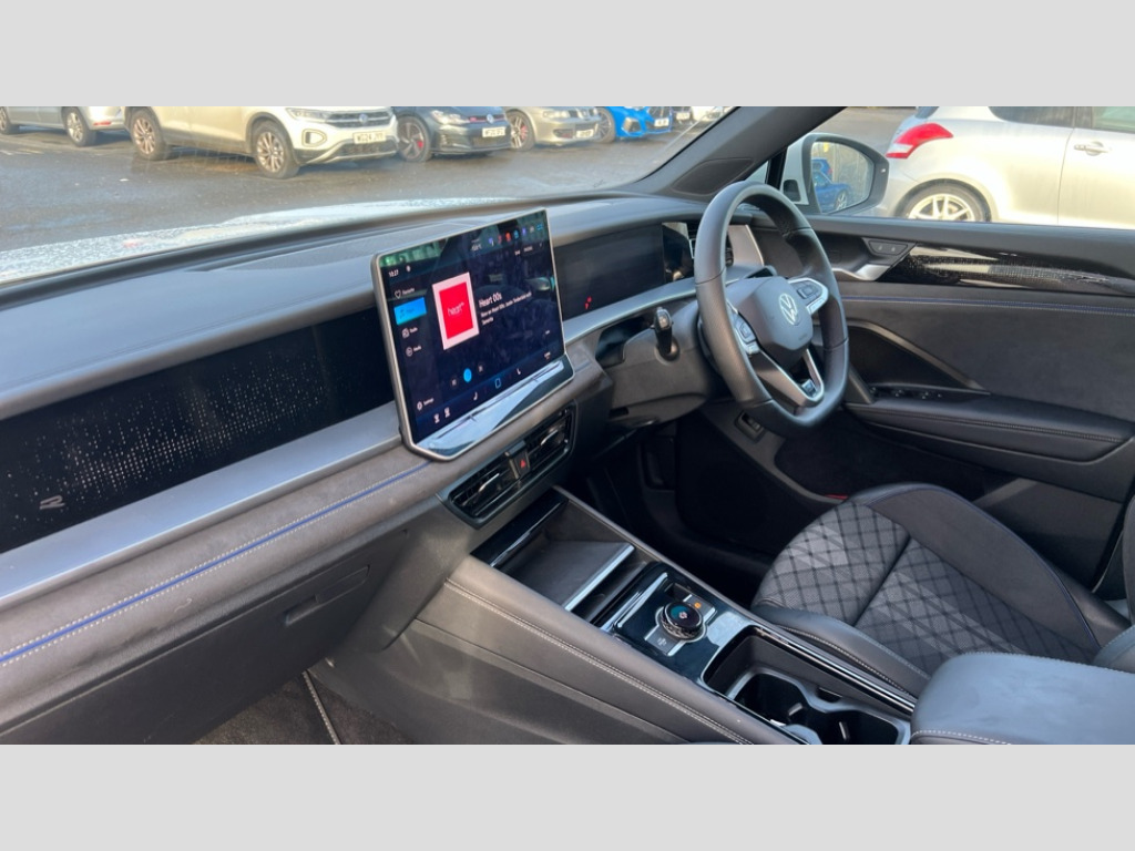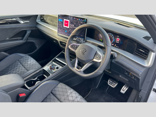 Volkswagen Tayron 1.5 eTSI R-Line 5dr DSG7 [7 Seat] Adaptive cruise control (ACC), Digital Cockpit Pro - 10.25" high resolution dash display screen with customisable menus and information, Driver alert system, Driver attention monitoring system, Dynamic road sign display, E-Sim card for online connectivity, eCall emergency call system, Lane change system, Side assist, Rear traffic alert and Exit warning system, Multifunction front facing camera, Oncoming vehicle braking when turning including swerve support, Start/stop system with regenerative braking, Voice activation spoken voice commands for telephone and navigation system, Warning signal and warning light for front and rear seatbelts not fastened, Wireless App-Connect, Front wheel drive, Digital radio reception (DAB), Diversity antenna for FM reception, Air intake with Chrome trim, Auto dimming interior rear view mirror, Automatic headlight control system, Body colour door handles, Chrome moldings on the side windows, Coming/leaving home lighting function, Dynamic headlight range control with dynamic cornering light, Exterior mirrors convex on the left and aspherical on the right, Heat insulating glass in side and rear windows, Illuminated Volkswagen logo rear with animation, Laminated safety glass windshield, heat insulating, LED 3rd brake light, LED separate signature day time running light, Puddle lights, Rain sensor windscreen wipers, Rear fog light on one side, reversing light on both sides, Rear side wing doors, Rear wiper, Reverse activated passenger's door mirror, Surround lighting with welcome light, Volkswagen logo in front, illuminated lighting animation with wake up/goodbye scenario and illuminated door handles, 10 colour interior ambient lighting, 12V outlet in center console rear and in luggage compartment, 3 rear headrests, 3 rear seat bench in 2nd row, backrest split folding with centre armrest and 2 seats in 3rd row of seats, Black roof lining, Brushed stainless steel pedals, Carpet mats, front and rear, Centre console with illuminated storage compartment with sliding cover and two drinks holders, Chrome elements on the mirror switch and power window switches and door pulls, Door and side trim panel insert in Art velour, Flat luggage compartment floor, Front centre armrest, Front scuff plates in aluminium, ISOFIX anchors for child seats on outer rear seats and front passenger seat compatible with i-Size, Mechanical rear seat release, Power adjustable lumbar support in front, Single front passenger seat, Sports comfort seats in front, Sun visors with illuminated vanity mirrors, 3 Point seat belts in front with pretensioners, 3 point seatbelts in outer rear with ECE label, Autonomous emergency braking front assist with pedestrian and cyclist monitoring, Driver and front passenger airbag with front passenger airbag deactivation, Electronic parking brake with auto hold, First aid kit with warning triangle and safety vest, Front and rear curtain airbags, Front and rear side airbags, Front centre airbag, Front disc brakes, Hill start assist, Rear disc brakes, Two tone horn, Decorative material set R-Line, Interior door handle in matte chrome