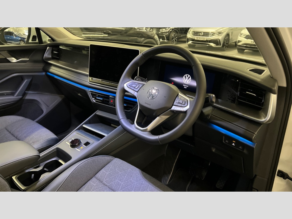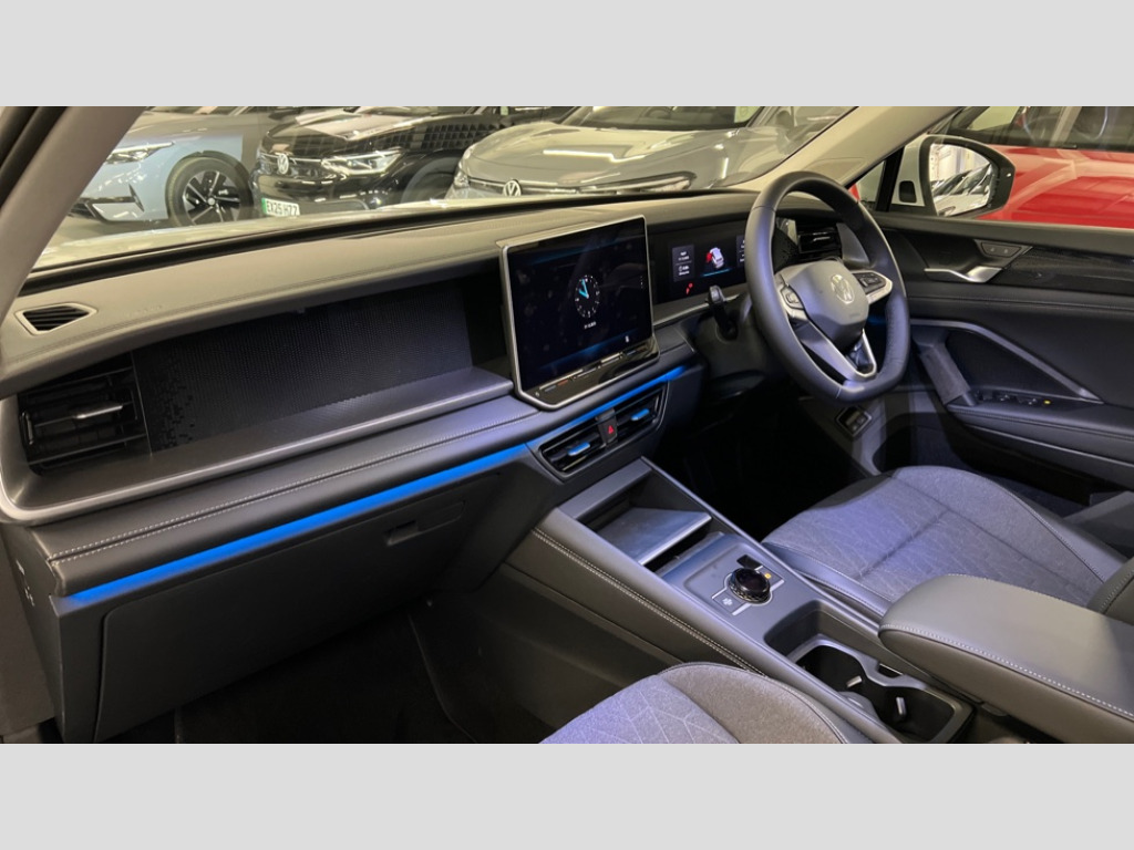 Volkswagen Tayron 1.5 TSI eHybrid Life 5dr DSG6 Adaptive cruise control (ACC), Digital Cockpit Pro - 10.25" high resolution dash display screen with customisable menus and information, Driver alert system, Driver attention monitoring system, Dynamic road sign display, E-Sim card for online connectivity, eCall emergency call system, Lane change system, Side assist, Rear traffic alert and Exit warning system, Multifunction front facing camera, Oncoming vehicle braking when turning including swerve support, Power assisted steering with speed sensitive, Start/stop system with regenerative braking, Voice activation spoken voice commands for telephone and navigation system, Warning signal and warning light for front and rear seatbelts not fastened, Wireless App-Connect, Adaptive chassis control DCC pro includes driving mode selection, Charging cable Mode 2 Type 2 / G (10A), Charging cable Mode 3 Type 2 / 3 (16A), Front shock absorption G08, Front wheel drive, Rear shock absorption, Digital radio reception (DAB), Diversity antenna for FM reception, Auto dimming interior rear view mirror, Automatic headlight control system, Body colour door handles, Body-coloured exterior mirror housings, Chrome moldings on the side windows, Comfort bumpers, Coming/leaving home lighting function, Exterior mirrors convex on the left and aspherical on the right, Heat insulating glass in side and rear windows, Laminated safety glass windshield, heat insulating, LED 3rd brake light, Puddle lights, Rain sensor windscreen wipers, Rear fog light on one side, reversing light on both sides, Rear side wing doors, Rear wiper, Reverse activated passenger's door mirror, Surround lighting with welcome light, 12V outlet in center console rear and in luggage compartment, 3 rear headrests, 3 rear seat bench in 2nd row, split folding, longitudinally movable and folding with load-through hatch, Carpet mats, front and rear, Centre console with illuminated storage compartment with sliding cover and two drinks holders, Door and side trim panel with leatherette insert, Flat luggage compartment floor, Front centre armrest, ISOFIX anchors for child seats on outer rear seats and front passenger seat compatible with i-Size, Mechanical rear seat release, Power adjustable lumbar support in front, Single front passenger seat, Sun visors with illuminated vanity mirrors, 3 Point seat belts in front with pretensioners, 3 point seatbelts in outer rear with ECE label, Autonomous emergency braking front assist with pedestrian and cyclist monitoring, Driver and front passenger airbag with front passenger airbag deactivation, Electronic parking brake with auto hold, First aid kit with warning triangle and safety vest, Front and rear curtain airbags, Front and rear side airbags, Front centre airbag, Front disc brakes, Hill start assist, Rear disc brakes, Two tone horn, Decorative material set
