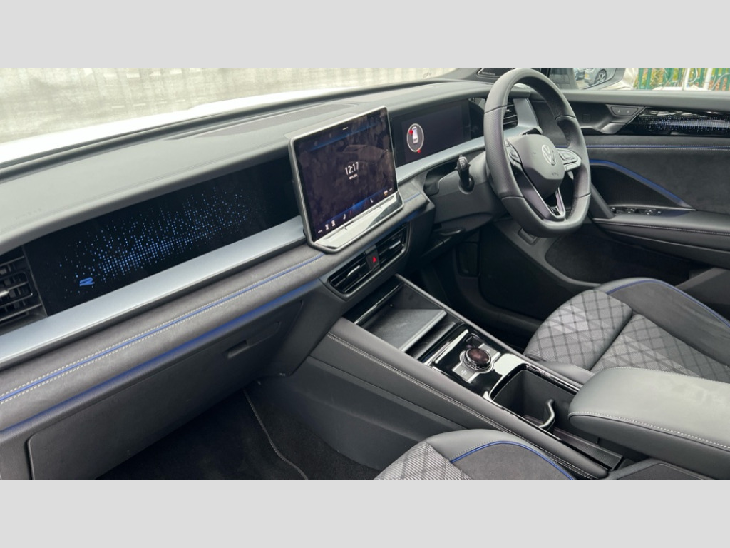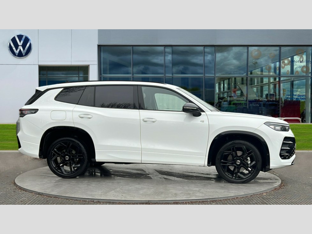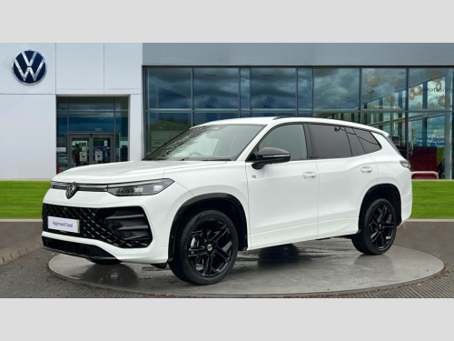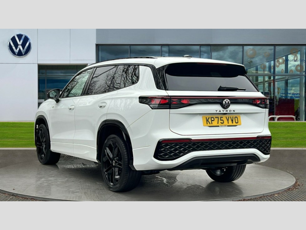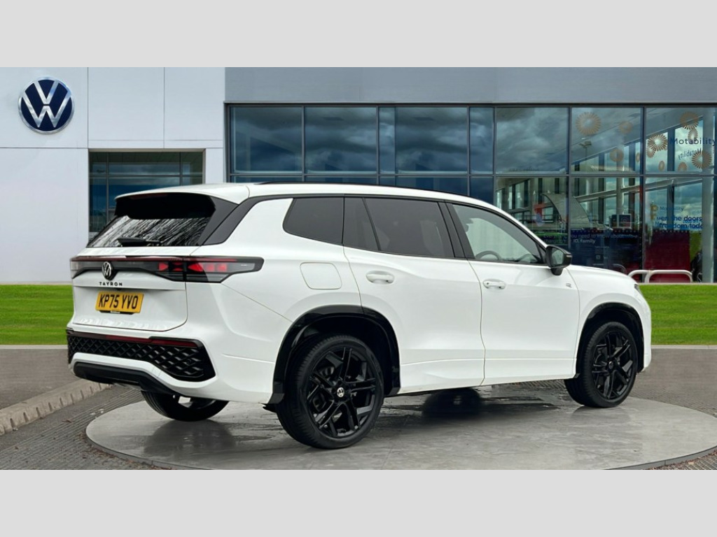 Volkswagen Tayron 2.0 TDI R-Line 5dr DSG7 [7 Seat] Adaptive cruise control (ACC), Digital Cockpit Pro - 10.25" high resolution dash display screen with customisable menus and information, Driver alert system, Driver attention monitoring system, Dynamic road sign display, E-Sim card for online connectivity, eCall emergency call system, Lane change system, Side assist, Rear traffic alert and Exit warning system, Multifunction front facing camera, Oncoming vehicle braking when turning including swerve support, Start/stop system with regenerative braking, Voice activation spoken voice commands for telephone and navigation system, Warning signal and warning light for front and rear seatbelts not fastened, Wireless App-Connect, Front wheel drive, Digital radio reception (DAB), Diversity antenna for FM reception, Air intake with Chrome trim, Auto dimming interior rear view mirror, Automatic headlight control system, Body colour door handles, Chrome moldings on the side windows, Coming/leaving home lighting function, Dynamic headlight range control with dynamic cornering light, Exterior mirrors convex on the left and aspherical on the right, Heat insulating glass in side and rear windows, Illuminated Volkswagen logo rear with animation, Laminated safety glass windshield, heat insulating, LED 3rd brake light, LED separate signature day time running light, Puddle lights, Rain sensor windscreen wipers, Rear fog light on one side, reversing light on both sides, Rear side wing doors, Rear wiper, Reverse activated passenger's door mirror, Surround lighting with welcome light, Volkswagen logo in front, illuminated lighting animation with wake up/goodbye scenario and illuminated door handles, 10 colour interior ambient lighting, 12V outlet in center console rear and in luggage compartment, 3 rear headrests, 3 rear seat bench in 2nd row, backrest split folding with centre armrest and 2 seats in 3rd row of seats, Black roof lining, Brushed stainless steel pedals, Carpet mats, front and rear, Centre console with illuminated storage compartment with sliding cover and two drinks holders, Chrome elements on the mirror switch and power window switches and door pulls, Door and side trim panel insert in Art velour, Flat luggage compartment floor, Front centre armrest, Front scuff plates in aluminium, ISOFIX anchors for child seats on outer rear seats and front passenger seat compatible with i-Size, Mechanical rear seat release, Power adjustable lumbar support in front, Single front passenger seat, Sports comfort seats in front, Sun visors with illuminated vanity mirrors, 3 Point seat belts in front with pretensioners, 3 point seatbelts in outer rear with ECE label, Autonomous emergency braking front assist with pedestrian and cyclist monitoring, Driver and front passenger airbag with front passenger airbag deactivation, Electronic parking brake with auto hold, First aid kit with warning triangle and safety vest, Front and rear curtain airbags, Front and rear side airbags, Front centre airbag, Front disc brakes, Hill start assist, Rear disc brakes, Two tone horn, Decorative material set R-Line, Interior door handle in matte chrome