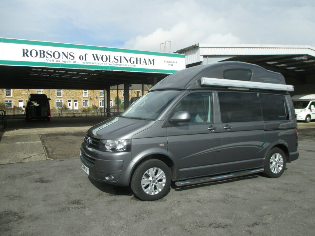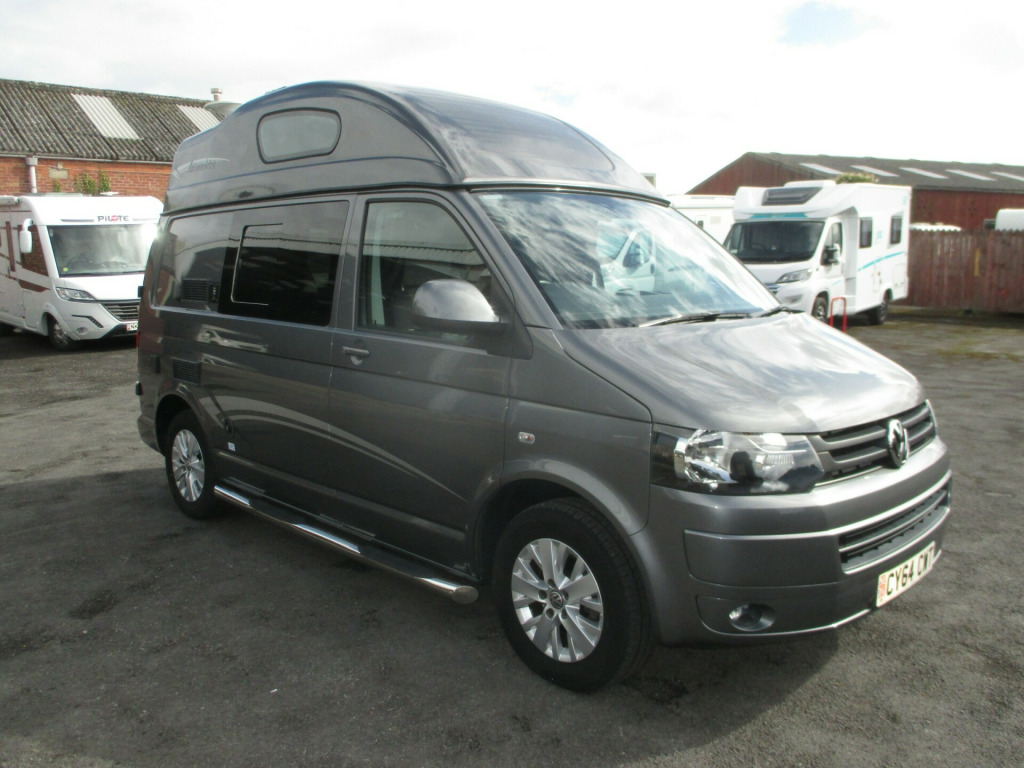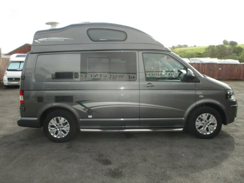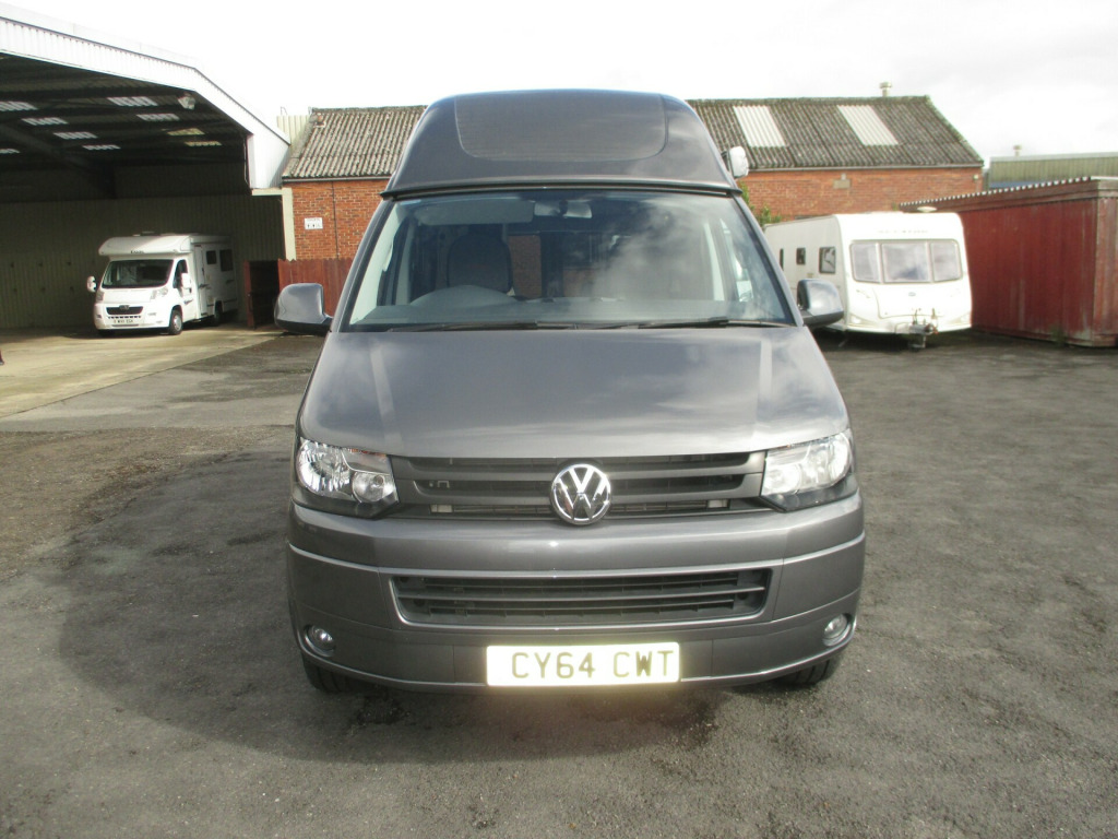 SPECIFICATION: 2 berth, 3 seat belts, manual, diesel, swb, Transporter T28 HiLine 102 TDI. HiTop Campervan. RHD. Date of Registration 05-01-2015. Reg. CY64CWT.WEIGHTS: MIS 1917kg. MPM 2800kg.LAYOUT: two front seats, swivel passenger seat, dinette seats, end kitchen / cassette toilet.FEATURES:EXTERIOR: Alloy wheels, colour coordinated handles, mirrors, bumpers. front fog lights, running boards, fresh water tank, 2.5mtr FIAMMA conopy, FIAMMA awning light, solar panel, TV aerial, extractor fan.INTERIOR: Radio/CD player, Air-con., cruise control, Eberspacher diesel heater, WIDNEY PH700 electric plinth heater, mains electric/charger, leisure battery, Dometic 3-way fridge/freezer box, PROPEX 10ltr electric water heater, sink, SMEV 2 burner hob, SMEV oven/grill, cassette toilet, external shower point, external BBQ point, internal silver screens for all windows.