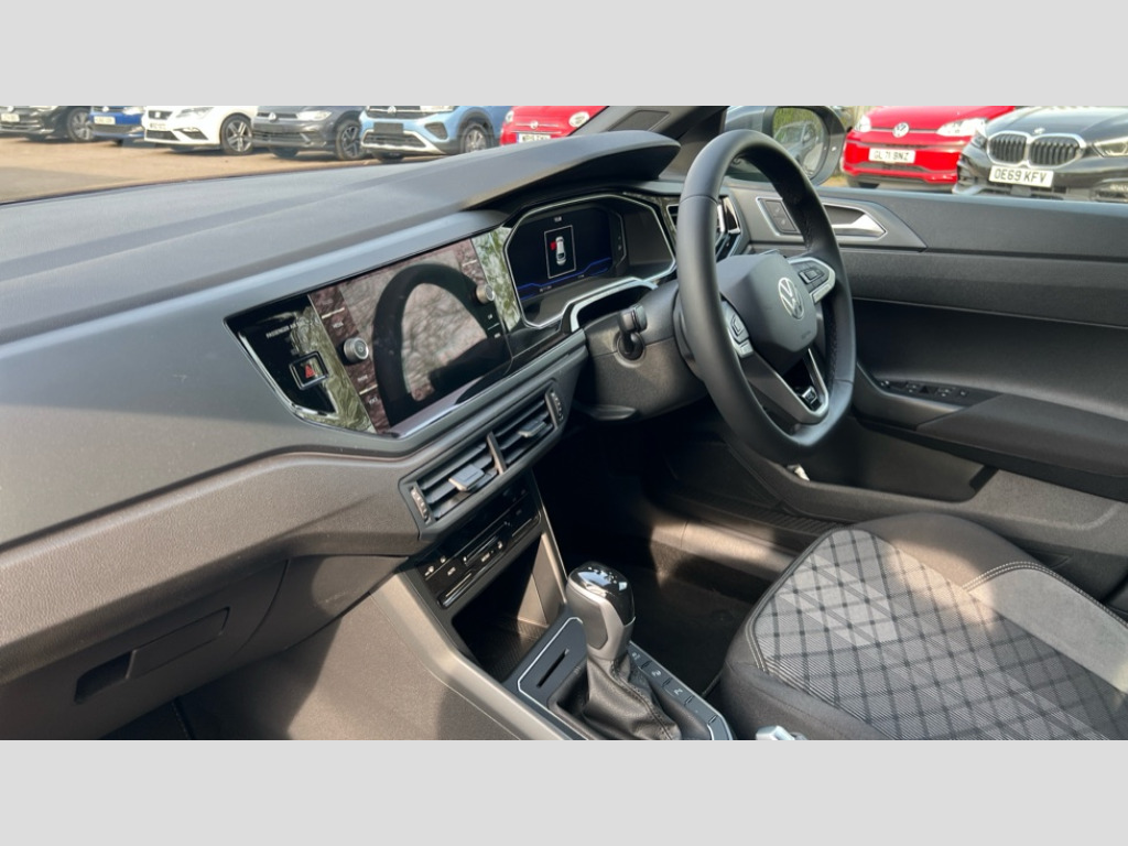 This Taigo stands out with its impressive fuel economy, achieving up to 50 mpg, meaning fewer trips to the petrol station. Its low CO2 emissions also make it a greener choice compared to similar vehicles. This combination of style, technology, and efficiency makes the Volkswagen Taigo a compelling option for those seeking a modern and economical car. Adaptive cruise control, Advanced driver attention and drowsiness monitor, App-Connect including App-Connect Wireless, Digital cockpit pro - 10.25" high resolution TFT dash display screen with customizable menus and information, Driving profile selection, Dynamic road sign display, e-Call (emergency call), Power Steering, Travel assist including emergency assist, Washer fluid level indicator, Wireless Charging including Bluetooth, Start-stop system with battery regeneration (recuperation - energy recovery during braking), XDS electronic differential lock for improved traction and handling, Digital radio reception (DAB+), Diversity antenna for FM reception, WeConnect plus, Ambient lighting with logo projection, Aspherical driver's exterior mirror, Auto headlights, Body coloured bumpers, Bumpers in R-Line style, Electric windows, External USB type C socket and charging sockets, Front scuff plates with R-Line logo, LED rear combination lamp, LED third brake light, Left convex exterior mirror, Power folding adjustable/heated exterior mirrors and front passenger exterior mirror lowering function, Rear fog light on one side, reversing light on both sides, Rear side wing doors, Rear wash/wipe with intermittent wipe setting, 12V socket in centre console, 2 front reading lights, 3 rear head restraints, 3 seat bench in 2nd row, Air care climatronic air conditoning system with active combination filter and 2-zone temperature control, Black carpets, Black roof lining, Child seat anchor for child seat system i-Size, 2x top tether and child seat anchor in front on front passenger side, Chrome bezel for instrument cluster, vents, door handles + gear shift, Driver and front passenger seat height adjustment, Front + rear carpet mats, Front centre armrest, Front footwell illumination, Front sports comfort seats, Height and reach adjustable steering wheel, Interior ambient lighting and surround lighting, Karoso artvelours cloth upholstery, Leather trimmed gear knob, Leather wrapped multifunction steering wheel, Luggage compartment floor, Luggage compartment light, Lumbar support for driver's and front passengers seat, Seat covers in grey + titanium black, Single front passenger seat, Split folding backrest with centre armrest and unsplit rear seat bench, Stainless steel pedals, Storage compartment under front seats, Sun visors with illuminated vanity mirrors, Chrome Package - Taigo, Drivers assistance pack - Taigo, Light and Sight pack including High beam assist - Taigo, 2 x 3-point seatbelts/outer rear seats with ECE label, 3-point seat belts in front with pretensioner and height adjustment, 3-point seatbelt for centre rear seat, Adaptive driver and front passenger airbags with passenger airbag deactivation function, Driver and front passenger safety-optimised head restraints, Electronic stability control, Extended and predictive pedestrian/ cyclist protection, Front and rear disc brakes, Front curtain and side airbags with center airbag, Hill start assist, Manual rear child locks, Single tone horn, Tyre pressure loss indicator, Anti-theft alarm system with interior monitoring, backup horn, and towing protection, Grey anodised matte decorative inserts in dash and front door panels, Low rolling resistance tyres