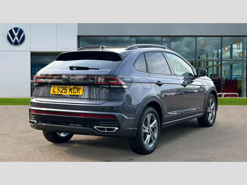 Volkswagen Taigo 1.0 TSI 115 R-Line 5dr DSG With only 2195 miles on the clock, this 2025 Volkswagen Taigo offers an almost new driving experience. As a Volkswagen manufacturer-approved vehicle, this Taigo R-Line boasts a 1.0L petrol engine and meets Euro 6 emission standards. The R-Line trim adds a sporty edge, complemented by 17in Coventry black diamond-turned alloy wheels. Stay connected on the move with the Discover Media Navigation System, which includes streaming, internet access, Android Auto, and Apple CarPlay. The convenience of wireless charging, including Bluetooth connectivity, ensures your devices are always ready to go. The Mobile Phone Interface with inductive charging further simplifies your digital life. Travel Assist, complete with Emergency Assist and Adaptive Cruise Control, enhances safety and convenience on every journey.