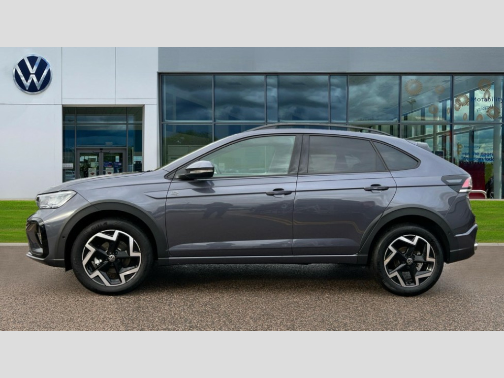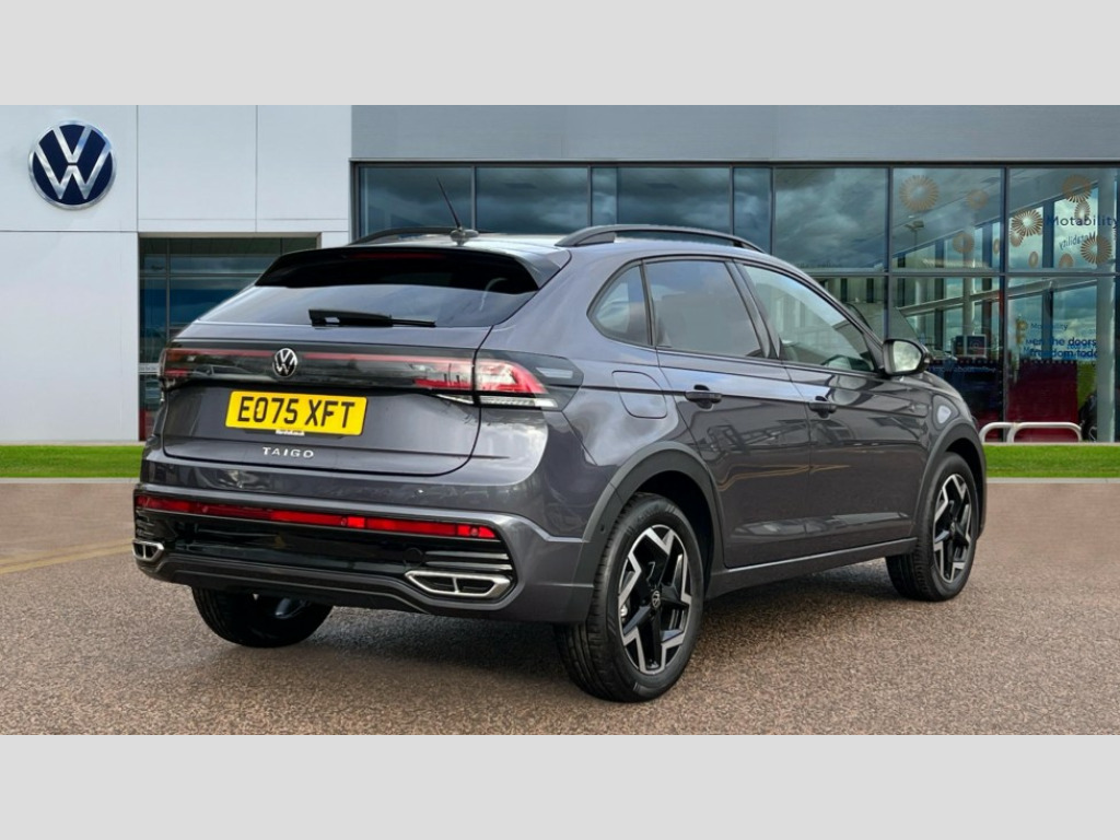 This 2025 Volkswagen Taigo TSI R-Line is a Volkswagen manufacturer approved vehicle with only one owner, offering peace of mind and excellent provenance. This stylish SUV coupe features a 1.5 litre petrol engine, meeting Euro 6 emissions standards. Inside, you'll find the R Line trim, complete with LED headlights, Travel Assist including Emergency Assist with adaptive cruise control, and an Air Care Climatronic air conditioning system offering two zone temperature control and an active combination filter. The Light and Sight Pack enhances visibility and parking with automatic headlights and a front camera, while the mobile phone interface includes convenient inductive wireless charging.