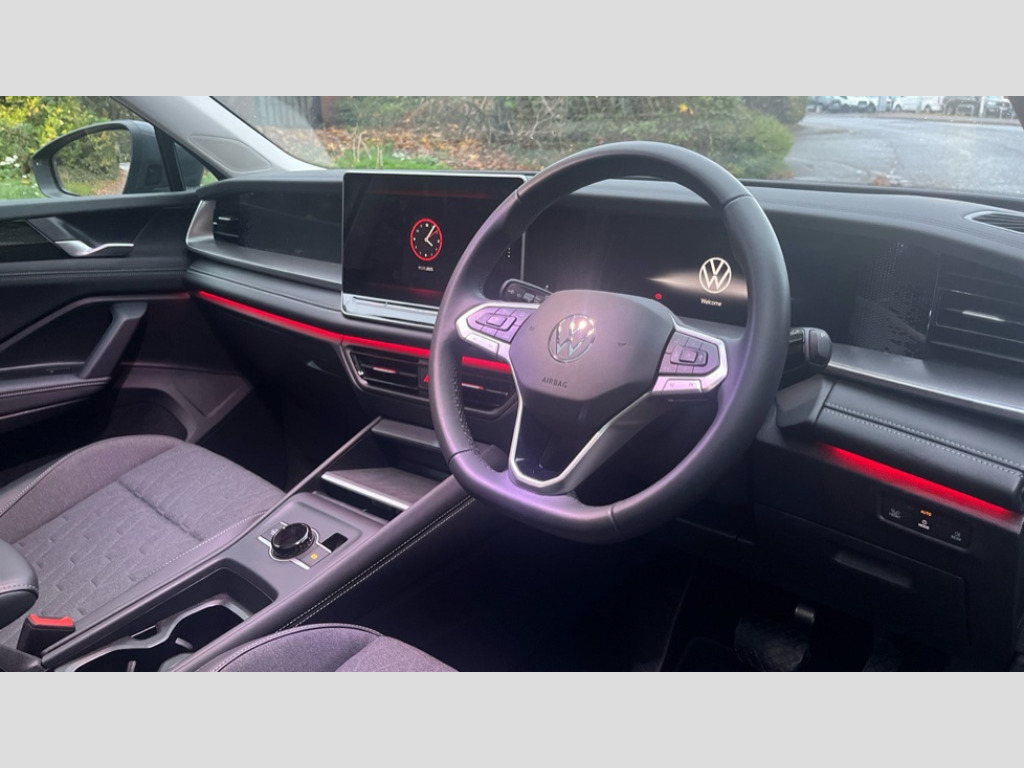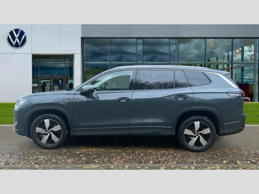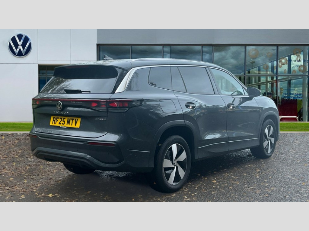 Volkswagen Tayron 1.5 TSI eHybrid Match 5dr DSG6 Adaptive cruise control (ACC), Digital Cockpit Pro - 10.25" high resolution dash display screen with customisable menus and information, Driver alert system, Driver attention monitoring system, Dynamic road sign display, E-Sim card for online connectivity, eCall emergency call system, Lane change system, Side assist, Rear traffic alert and Exit warning system, Multifunction front facing camera, Oncoming vehicle braking when turning including swerve support, Power assisted steering with speed sensitive, Start/stop system with regenerative braking, Voice activation spoken voice commands for telephone and navigation system, Warning signal and warning light for front and rear seatbelts not fastened, Wireless App-Connect, Adaptive chassis control DCC pro includes driving mode selection, Charging cable Mode 2 Type 2 / G (10A), Charging cable Mode 3 Type 2 / 3 (16A), Front shock absorption G08, Front wheel drive, Rear shock absorption, Digital radio reception (DAB), Diversity antenna for FM reception, Auto dimming interior rear view mirror, Automatic headlight control system, Body colour door handles, Body-coloured exterior mirror housings, Chrome moldings on the side windows, Comfort bumpers, Coming/leaving home lighting function, Exterior mirrors convex on the left and aspherical on the right, Heat insulating glass in side and rear windows, Laminated safety glass windshield, heat insulating, LED 3rd brake light, Puddle lights, Rain sensor windscreen wipers, Rear fog light on one side, reversing light on both sides, Rear side wing doors, Rear wiper, Reverse activated passenger's door mirror, Surround lighting with welcome light, Tilting and sliding panoramic sunroof with rear panoramic sunroof, 12V outlet in center console rear and in luggage compartment, 3 rear headrests, 3 rear seat bench in 2nd row, split folding, longitudinally movable and folding with load-through hatch, Carpet mats, front and rear, Centre console with illuminated storage compartment with sliding cover and two drinks holders, Door and side trim panel with leatherette insert, Flat luggage compartment floor, Front centre armrest, ISOFIX anchors for child seats on outer rear seats and front passenger seat compatible with i-Size, Mechanical rear seat release, Power adjustable lumbar support in front, Single front passenger seat, Sun visors with illuminated vanity mirrors, Comfort package with park assist pro - Tayron, 3 Point seat belts in front with pretensioners, 3 point seatbelts in outer rear with ECE label, Autonomous emergency braking front assist with pedestrian and cyclist monitoring, Driver and front passenger airbag with front passenger airbag deactivation, Electronic parking brake with auto hold, First aid kit with warning triangle and safety vest, Front and rear curtain airbags, Front and rear side airbags, Front centre airbag, Front disc brakes, Hill start assist, Rear disc brakes, Two tone horn, Decorative material set, Tool kit for tyre mobility set, Tyre mobility kit including compressor and sealing foam. In lieu of spare wheel