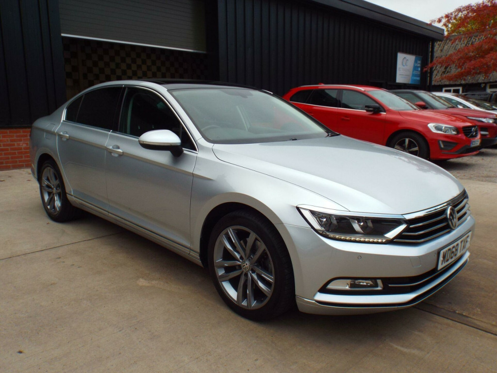 **NATIONWIDE DELIVERY AVAILABLE**This is an extremely clean and well looked after 2019/68 Volkswagen Passat 1.5TSI EVO GT DSG which comes with a Full service history (Just serviced too) a full years MOT and an excellent spec. Finished in silver the paintwork is excellent and the vehicle has a superb shine to it from all over. The half black leather / alcantara interior is also in excellent condition with no adverse wear at all. Excellent spec: E/Windows, E/Folding Mirrors, Remote C/L (2xKeys), Keyless Go, Unmarked Grey alloy wheels, Front and rear parking sensors, Auto lights, LED DRLs, Front and rear fog lights, Glass sunroof, Half black leather / alcantara interior, Heated seats, Half electric seats, AM/FM/DAB Radio, Aux/USB Input. Bluetooth connectivity, SAT-NAV, 3-Way climate control with Air conditioning, Multi-function steering wheel, Adaptive cruise control, ABS/PAS/DSC, Fully fitted mats plus loads more. A very high spec, well looked after example which looks great and drives lovely too. We offer excellent finance rates, accept credit/debit cards and welcome ..., v socket - front centre console, 12v socket - luggage compartment, 18in alloy wheels - oxford anthracite, abs - anti-lock braking system, active info display, adaptive cruise control, airbags, alarm with interior protection with deactivation via infotainment system, ambient lighting, analogue clock in dashboard, armrest - front centre with storage compartment and two rear air vents, armrest - rear centre with storage compartment, automatic dimming interior rear view mirror, automatic leaving home and manual coming home lighting function, automatic post-collision braking system, body coloured bumpers, body coloured door handles, body-coloured door mirrors with integrated indicators, car-net app connect, car-net guide and inform (3 year subscription from new), car-net security and service including ecall, carpet mats - front and rear, chrome plated instrument and air vent surrounds, climate control, composition media system, convenience pack, cup holders with covers - front x2, daytime running lights, decorative trim - front side and rear sills in chrome, discover navigation touch-screen system, door mirrors - automatic dimming on driver side, driver alert system, driver profile selection, drivers and passengers safety optimised head restraints - longitudinal and height adjustable, dusk sensor - automatic driving lights, esc - electronic stability control, electric windows - front and rear, electronic engine immobiliser, electronic parking brake with auto hold function, entrance-warning lights in front doors - led, exterior temperature gauge and frost warning function, first aid kit, front assist, front fog lights with static cornering function, galvanised body, gloss black b pillar, glovebox - cooled - illuminated - lockable, halogen clear headlights - range adjustable via infotainment system, head restraints - height adjustable rear x3, heated rear window, heated windscreen washer jets, height and reach adjustable steering wheel, height-adjustable front three-point seat belts with tensioners, high level 3rd brake light, hill hold function, isofix child seat preparation - outer rear, interior lighting - front and rear with interior delay and dimming function, led headlights, leather trimmed three spoke multifunction steering wheel and gear knob, load lashing points x4 in luggage compartment, load-through provision, luggage compartment light, mirror pack, misfuel prevention device, multifunction computer, one-touch indicator turn signals, panoramic sunroof, parking sensors - front and rear, piano black decorative inserts in centre console, power assisted steering - speed sensitive, pre-crash preventive occupant protection, press and drive - keyless start, radiator grille - black with chrome louvres, radio aerial integrated into rear windscreen, rain sensor, reading lights - front and rear x2 incorporating led technology, rear light incorporating led technology with dynamic lighting effect, rear number plate lights incorporating led technology, rear tinted glass, remote boot unlocking, remote central locking with 2 remote keys, rigid safety cell with front and rear crumple zones, side window surrounds - chrome plated, spare wheel - full size alloy, speedo and rev counter - electronic odometer - trip - service interval display and fuel gauge, split folding rear backrests 60-40, steering wheel - paddle shift, storage compartment in drivers door for 1.0 litre bottle, storage compartment in passengers door for 1.5 litre bottle, storage compartment in rear doors, storage compartment in roof console with cover, three rear 3-point seat belts, tyre pressure loss indicator, vanity mirrors - illuminated, warning buzzer and light for front seat belts if unfastened, warning light for low washer fluid, warning lights for open boot lid and doors, warning lights for rear seat belts if unfastened, warning reflectors in all doors, white instrument lighting, windscreen wipers with intermittent operation, winter pack