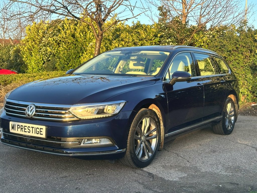 ONE OWNER FROM NEW GREAT SPECIFICATION - Stunning VW Passat in Atlantic Blue Metallic with White Leather interior supplied with a Full Volkswagen Service History, FITTING & INSTALLATION OF GHOST 2 IMMOBILISER AVAILABLE ON REQUEST AS ADDITIONAL SECURITY, Car will be supplied with 6 Month Warranty and New MOT, Electric Sliding Panoramic roof with Sun Blind, Factory Towbar, Area View Cameras, Digital Cockpit, Electric Tailgate, 18 Inch Diamond Cut Alloy Wheels, Electronic Stability Control, ABS, ASR, EDL, EDTC and trailer stabilization, Folding trailer hitch with electric release, Leather-wrapped multi-function steering wheel with shifting paddles, ISOFIX, Decorative inserts "Piano Black" for centre console, Tilting and sliding panoramic sunroof with rear panoramic sunroof, Ergo Comfort seat With seat cushion tilt adjustment - depth adjustment and power backrest adjustment on driver side, Roof rails, Heated front seats, Keyless locking, Heated windshield, Auto-dimming interior rear view mirror, Easy Open, Transport protection film, Extractable sun visors, Forward Collision Warning Front Assist Autonomous Emergency Braking, Exterior mirror with surround lighting - Lowering function – Folding - Heated – Auto Dimming, Anti-theft alarm system, Start-stop system, Lumbar support in front power-adjustment, Park Distance Control, High-beam control Light Assist, Automatic headlight control, Dynamic headlight range control, Adaptive Cruise Control ACC, Diversity Towbar - Manually Swivelling, Steering Wheel - Heated Multifunction Le, Nappa Leather - St Tropez, Heated Front Windscreen, Luggage Net, High Beam Assist, Net Partition, Electric Tailgate, Keyless Entry, Nappa Leather Luxury Pack - St Tropez, Tyre Pressure Monitoring System, Atlantic Blue, ergoComfort Front Seats with 14-Way Elec, 18in Alloy Wheels - Marseille Anthracite, Ambient Lighting Plus, 12V Socket - Front Centre Console, 12V Socket - Luggage Compartment, 18in Alloy Wheels - Oxford Anthracite, ABS - Anti-Lock Braking System, Active Info Display, Adaptive Cruise Control, Airbags, Alarm with Interior Protection with Deac, Ambient Lighting, Analogue Clock in Dashboard, Armrest - Front Ce