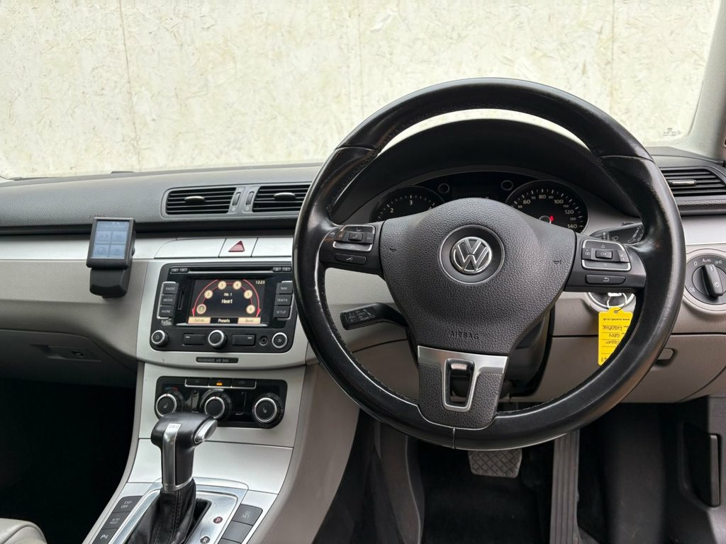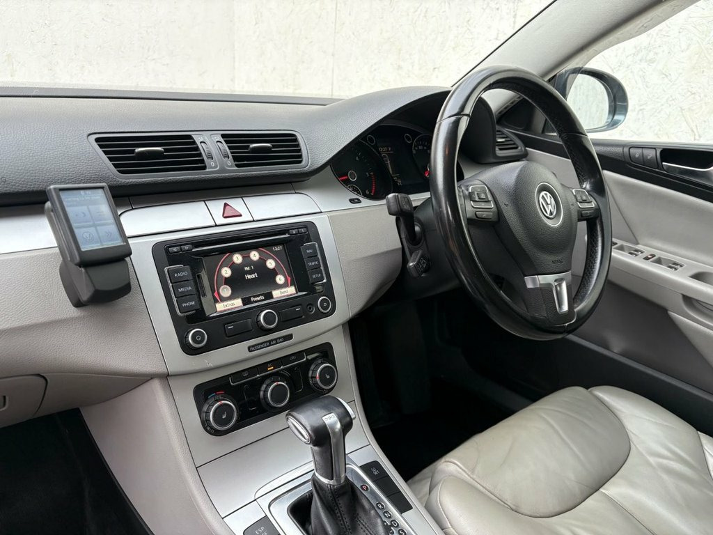 THIS WELL PRESENTED VW PASSAT FINISHED IN GREY METALLIC COMES WITH SERVICE HISTORY, A NEW MOT AND FEATURES INCLUDING CLIMATE CONTROL / AIR CONDITIONING, BLUETOOTH HANDS-FREE, OPTICAL FRONT AND REAR PARKING SENSORS, FULL LEATHER TRIM, TOUCHSCREEN RADIO/CD PLAYER WITH AUX POINT, HEATED FRONT SEATS, MULTI FUNCTION LEATHER STEERING WHEEL, CRUISE CONTROL, AUTO LIGHTS, 4 X ELECTRIC WINDOWS, ELECTRIC MIRRORS, AUTOMATIC GEARBOX, REMOTE CENTRAL LOCKING AND 17" ALLOY WHEELS. 17in Macau Alloy Wheels & AntiTheft , Air Conditioning Climatic semi Automatic, Brushed Stainless Steel Trim, Exterior badge deletion, Matt chrome Trim, RNS 310 SatNav with Radio & MP3 comp