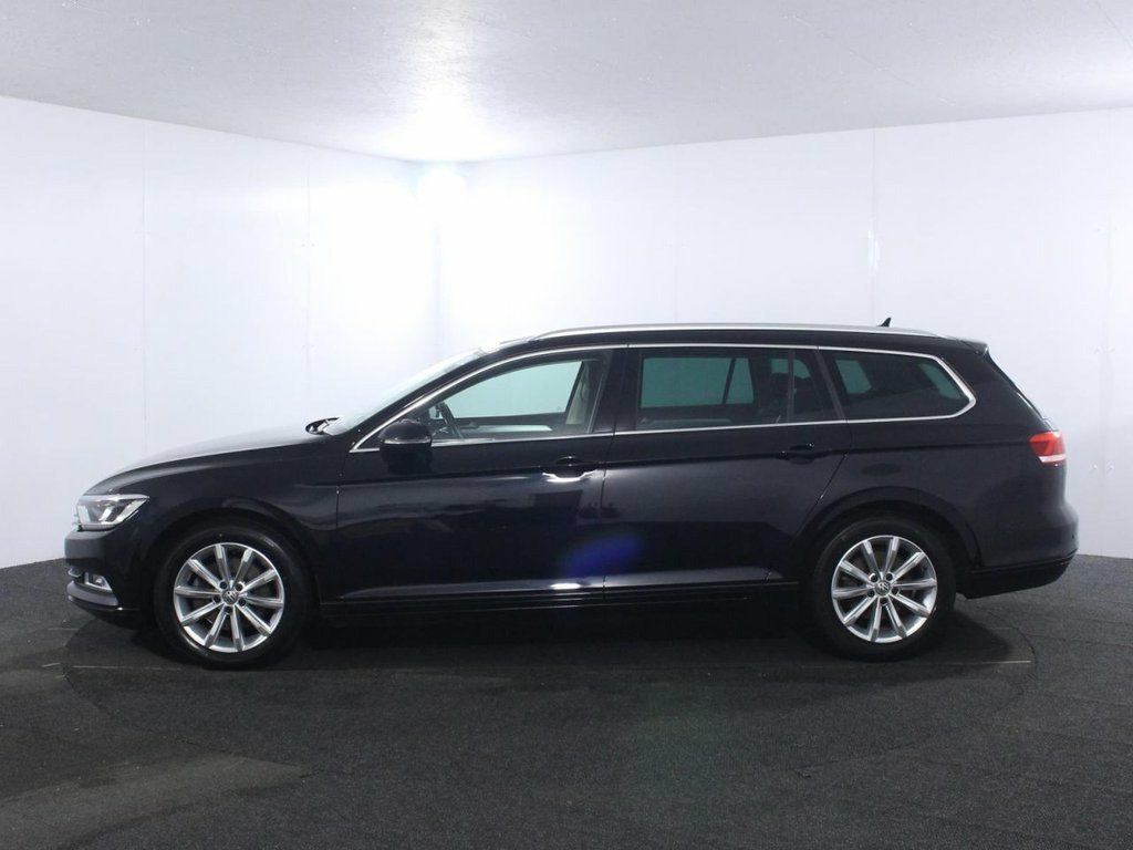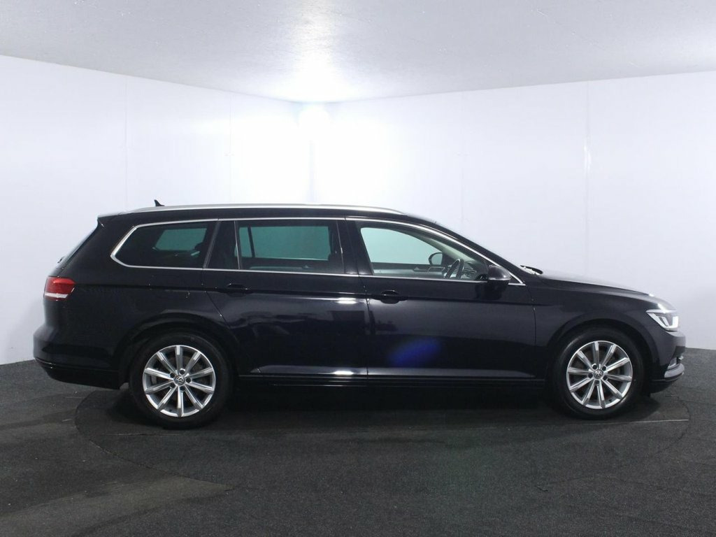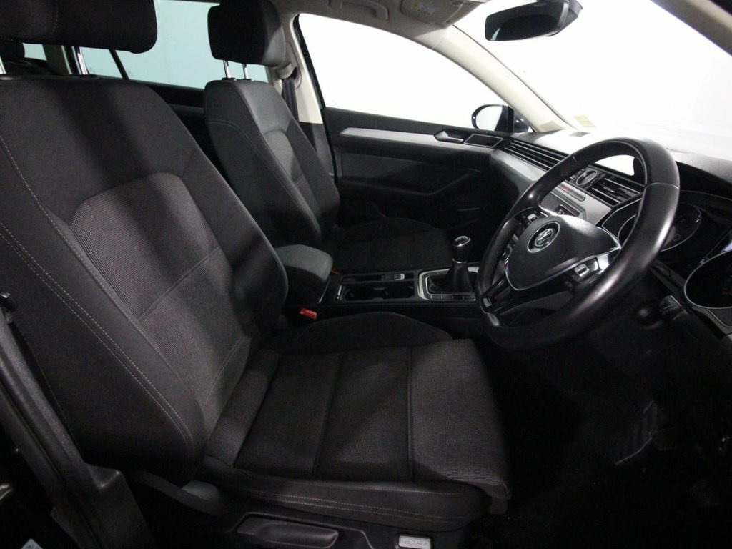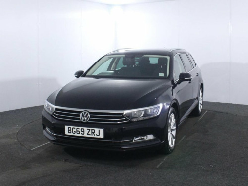 1 Owner. Last serviced at 55,510 miles in January 2026. The 2019 Volkswagen Passat 2.0 TDI SE Business Estate is a refined and practical load-lugger, powered by a 2.0 litre turbo diesel engine producing 150 ps and paired with a smooth 6 speed manual gearbox for relaxed motorway cruising. It looks the part too, finished in Deep Black with 17 inch "London" alloys, silver anodised roof rails and chrome side window surrounds, giving a smart, business like appearance. Inside, the SE Business spec focuses on comfort and tech: Kensington cloth sports-style seats, a leather multifunction steering wheel, climate control, front and rear centre armrests and a cooled, illuminated glovebox. The Discover Navigation touch screen with Car Net App Connect (Apple CarPlay/Android Auto) and Guide & Inform subscription, front and rear parking sensors and keyless start all help daily usability and long distance work. Family and safety credentials are strong, with Front Assist, Pre Crash preventive occupant protection, adaptive cruise control, electronic parking brake with auto hold, LED headlights, ISOFIX outer rear seats and a rigid safety cell with front and rear crumple zones. Practicality is a major selling point: vast estate boot with variable height floor, 40/20/40 split fold rear seats, load through provision, extending luggage cover and multiple 12V and storage solutions, making this Passat SE Business Estate ideal for business users and families alike. 12V Socket - Front Centre Console, 12V Socket - Luggage Compartment, 17in Alloy Wheels - London, ABS - Anti-Lock Braking System, Adaptive Cruise Control, Air Conditioning - Manual, Airbags, Alarm with Interior Protection with Deac, Analogue Clock in Dashboard, Armrest - Front Centre with Storage Comp, Armrest - Rear Centre with Storage Compa, Automatic Dimming Interior Rear View Mir, Automatic Leaving Home and Manual Coming, Automatic Post-Collision Braking System, Body Coloured Bumpers, Body Coloured Door Handles, Body-Coloured Door Mirrors with Integrat, Car-Net App Connect, Car-Net Guide and Inform (3 Year Subscri, Carpet Mats - Front and Rear, Chrome Plated Instrument and Air Vent Su, Cl