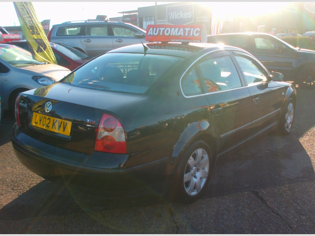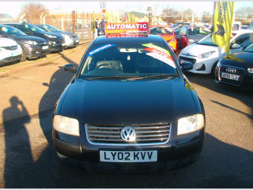 2002 AUTOMATIC VOLKSWAGEN PASSAT PD SPORT SALOON 1.9 TDI TIPTRONIC 4 DOOR, BLACK, 124,307 MILES, SERVICE HISTORY, BLUETOOTH, CRUISE CONTROL, HEATED LEATHER & SUEDE SEATS, LUMBAR SUPPORT, AIR CON, HEATED E/MIRRORS, E/WINDOWS, C/LOCKING, ABS, MULTI AIR BAGS, 16'' ALLOY WHEELS, NEW MOT UPON PURCHASE, SUSSEX, EAST SUSSEX, EASTBOURNE, BN23 6PJ, 01323 643326, r conditioning, bluetooth connection, half leather, cruise control, power steering, abs, multiple airbags, central locking, electric mirrors, electric windows, heated door mirrors, stereo, lumbar support, alloy wheels, colour coded body, zero admin charge