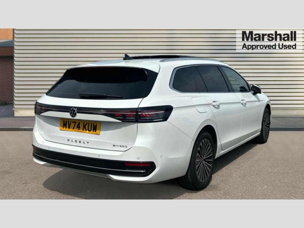 Volkswagen Passat 1.5 TSI eHybrid 272 Elegance 5dr DSG 2 x Front USB-C ports,2 x USB-C charging sockets on the centre console in the rear,charging capacity up to 45W, Adaptive cruise control, Advanced driver attention and drowsiness monitor, Chat GPT function for IDA voice assistant, Digital cockpit pro 10.25" high resolution, Discover media navigation system includes streaming and internet, Dynamic road sign display, E-Sim card for online connectivity, eCall emergency call service, Electronic engine sound, Full electric tailgate operation, Inductive smartphone charging without external antenna connection, Memory feature for park assist, Oncoming vehicle braking when turning including swerve support, Park assist with park distance control, Predictive speed limiter, Preparation for We connect and We connect plus, Wireless app connect, Battery 340 A (58 Ah), Charging cable mode 3 type 2, 16 A6 A, Front wheel drive, Petrol Particulate Filter, 8 Speakers, Auto dimming interior rear view mirror, Automatic headlights, Body colour bumpers, Body colour door handles, Electric panoramic sunroof, tilting and sliding panoramic sunroof with rear panoramic sunroof, Heated windscreen washer jets, Laminated safety glass windshield, heat and sound insulating, LED third brake light, Rain sensor, Rear side wing doors, Rear wiper, Welcome light with surround lighting, 3 seat bench in 2nd row, 3 zone air care climatronic with rear air conditioning control panel, 30 colours options interior ambient lighting, Front + rear carpet mats, Front head restraints, Front sports comfort seats, Isofix child seat preparation, easy-fit (for two outer rear seats, and front passenger seat), compatible with I-size, Leather-wrapped, heated and multi-function steering wheel with shift paddles, Luggage compartment cover, power operated, Rear centre armrest, Single front passenger seat, Standard pedal cluster, Sun visors with illuminated vanity mirrors for driver and front passenger, Sunblind for rear side windows, Three rear head restraints, Unsplit rear seat bench, split folding backrest, Acoustics pack - Passat Estate, LED High matrix headlamps pack - Passat, 3x3 point rear seat belts, ABS (Anti locking brake system) includes BAS (Brake assist) and EBD (Electronic brake pressure distribution), Autonomous emergency braking front assist with pedestrian and cyclist monitoring, Disc brakes in front, Driver/Front Passenger airbags, Drivers knee airbag, Electronic parking brake with auto hold, ESC (Electronic stability control) + EDL (Electronic Differential lock) and ASR (Traction control), EDTC (Engine drag torque control), Extended safety system with proactive passenger protection system, Front passenger airbag deactivation switch, Hill hold function, Tyre pressure loss indicator, Warning triangle and first aid kit, Alarm with interior protection, Electronic engine immobiliser, Keyless locking and starting system keyless access with safelock, Aluminium decorative inserts, Tool kit for tyre mobility set, Trims for alloy wheels, Tyre mobility kit including compressor and sealing foam