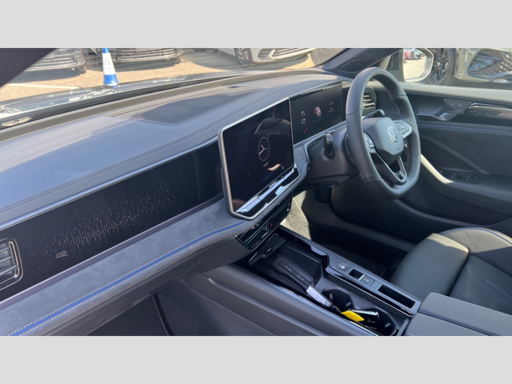 Volkswagen Passat 1.5 TSI eHybrid 272 R-Line 5dr DSG 2 x Front USB-C ports,2 x USB-C charging sockets on the centre console in the rear,charging capacity up to 45W, Adaptive cruise control, Advanced driver attention and drowsiness monitor, Chat GPT function for IDA voice assistant, Digital cockpit pro 10.25" high resolution, Discover media navigation system includes streaming and internet, Dynamic road sign display, E-Sim card for online connectivity, eCall emergency call service, Electronic engine sound, Full electric tailgate operation, Inductive smartphone charging without external antenna connection, Memory feature for park assist, Oncoming vehicle braking when turning including swerve support, Park assist pro with park distance control (Remote park assist), Predictive speed limiter, Preparation for We connect and We connect plus, Wireless app connect, Battery 340 A (58 Ah), Front wheel drive, Petrol Particulate Filter, 8 Speakers, Auto dimming interior rear view mirror, Automatic headlights, Body colour bumpers, Body colour door handles, Heated windscreen washer jets, Laminated safety glass windshield, heat and sound insulating, LED third brake light, Rain sensor, Rear side wing doors, Rear wiper, Welcome light with surround lighting, 3 seat bench in 2nd row, 3 zone air care climatronic with rear air conditioning control panel, 30 colours options interior ambient lighting, Brushed stainless steel pedals, Front + rear carpet mats, Front head restraints, Front sports seats, Isofix child seat preparation, easy-fit (for two outer rear seats, and front passenger seat), compatible with I-size, Luggage compartment cover, power operated, Rear centre armrest, Single front passenger seat, Sun visors with illuminated vanity mirrors for driver and front passenger, Sunblind for rear side windows, Three rear head restraints, Unsplit rear seat bench, split folding backrest, Dynamic chassis control (DCC) pack - Passat, LED High matrix headlamps pack - Passat, 3x3 point rear seat belts, ABS (Anti locking brake system) includes BAS (Brake assist) and EBD (Electronic brake pressure distribution), Autonomous emergency braking front assist with pedestrian and cyclist monitoring, Disc brakes in front, Driver/Front Passenger airbags, Drivers knee airbag, Electronic parking brake with auto hold, ESC (Electronic stability control) + EDL (Electronic Differential lock) and ASR (Traction control), EDTC (Engine drag torque control), Extended safety system with proactive passenger protection system, Front passenger airbag deactivation switch, Hill hold function, Tyre pressure loss indicator, Warning triangle and first aid kit, Alarm with interior protection, Electronic engine immobiliser, Keyless locking and starting system keyless access with safelock, Tool kit for tyre mobility set, Trims for alloy wheels, Tyre mobility kit including compressor and sealing foam