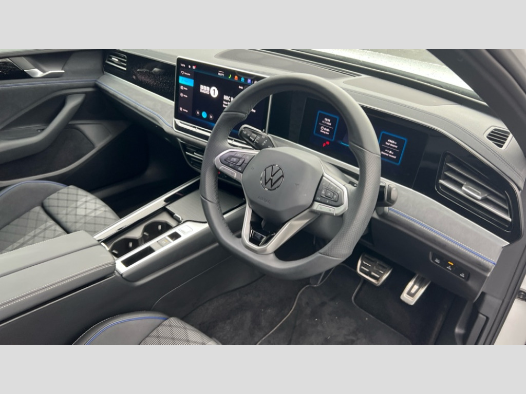 Volkswagen Passat 1.5 TSI eHybrid 272 R-Line 5dr DSG 2 x Front USB-C ports,2 x USB-C charging sockets on the centre console in the rear,charging capacity up to 45W, Adaptive cruise control, Advanced driver attention and drowsiness monitor, Chat GPT function for IDA voice assistant, Digital cockpit pro 10.25" high resolution, Discover media navigation system includes streaming and internet, Dynamic road sign display, E-Sim card for online connectivity, eCall emergency call service, Electronic engine sound, Full electric tailgate operation, Inductive smartphone charging without external antenna connection, Memory feature for park assist, Oncoming vehicle braking when turning including swerve support, Park assist pro with park distance control (Remote park assist), Predictive speed limiter, Preparation for We connect and We connect plus, Wireless app connect, Battery 340 A (58 Ah), Front wheel drive, Petrol Particulate Filter, 8 Speakers, Auto dimming interior rear view mirror, Automatic headlights, Body colour bumpers, Body colour door handles, Heated windscreen washer jets, Laminated safety glass windshield, heat and sound insulating, LED third brake light, Rain sensor, Rear side wing doors, Rear wiper, Welcome light with surround lighting, 3 seat bench in 2nd row, 3 zone air care climatronic with rear air conditioning control panel, 30 colours options interior ambient lighting, Brushed stainless steel pedals, Front + rear carpet mats, Front head restraints, Front sports seats, Isofix child seat preparation, easy-fit (for two outer rear seats, and front passenger seat), compatible with I-size, Luggage compartment cover, power operated, Rear centre armrest, Single front passenger seat, Sun visors with illuminated vanity mirrors for driver and front passenger, Sunblind for rear side windows, Three rear head restraints, Unsplit rear seat bench, split folding backrest, Dynamic chassis control (DCC) pack - Passat, LED High matrix headlamps pack - Passat, 3x3 point rear seat belts, ABS (Anti locking brake system) includes BAS (Brake assist) and EBD (Electronic brake pressure distribution), Autonomous emergency braking front assist with pedestrian and cyclist monitoring, Disc brakes in front, Driver/Front Passenger airbags, Drivers knee airbag, Electronic parking brake with auto hold, ESC (Electronic stability control) + EDL (Electronic Differential lock) and ASR (Traction control), EDTC (Engine drag torque control), Extended safety system with proactive passenger protection system, Front passenger airbag deactivation switch, Hill hold function, Tyre pressure loss indicator, Warning triangle and first aid kit, Alarm with interior protection, Electronic engine immobiliser, Keyless locking and starting system keyless access with safelock, Tool kit for tyre mobility set, Trims for alloy wheels, Tyre mobility kit including compressor and sealing foam