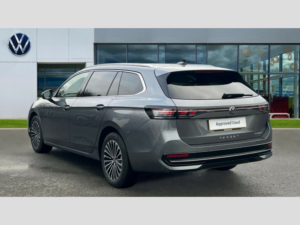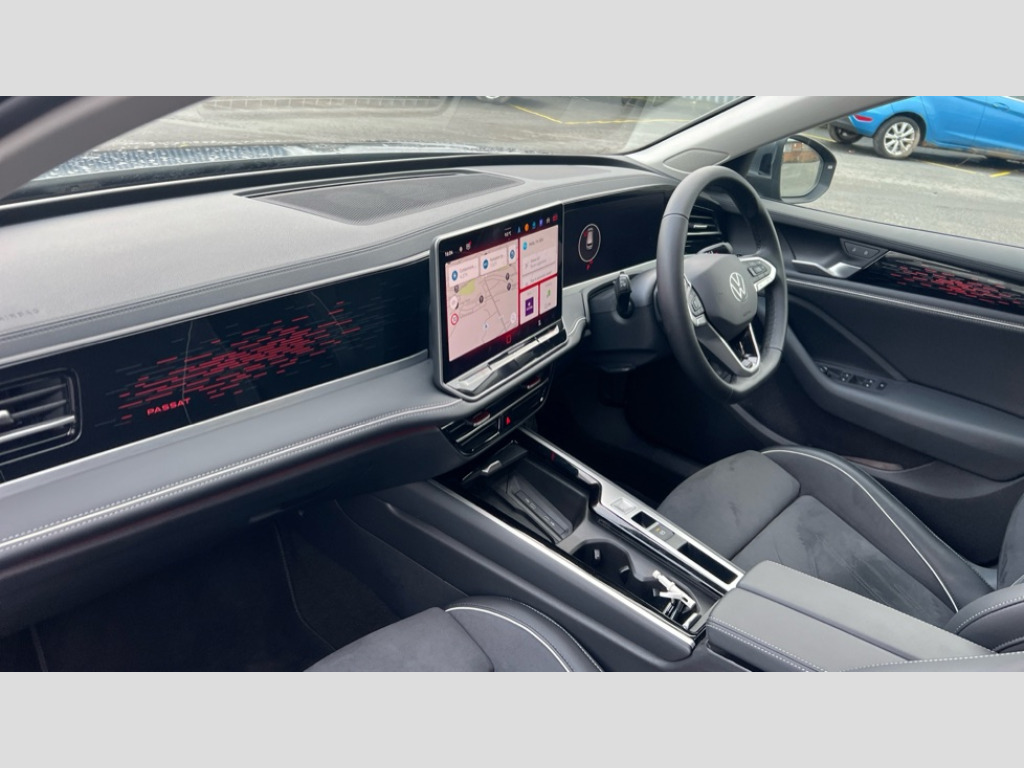 Volkswagen Passat 1.5 TSI eHybrid Elegance 5dr DSG 2 x Front USB-C ports,2 x USB-C charging sockets on the centre console in the rear,charging capacity up to 45W, Adaptive cruise control, Advanced driver attention and drowsiness monitor, Chat GPT function for IDA voice assistant, Digital cockpit pro 10.25" high resolution, Discover media navigation system includes streaming and internet, Dynamic road sign display, E-Sim card for online connectivity, eCall emergency call service, Electronic engine sound, Full electric tailgate operation, Inductive smartphone charging without external antenna connection, Memory feature for park assist, Oncoming vehicle braking when turning including swerve support, Park assist pro with park distance control (Remote park assist), Predictive speed limiter, Preparation for We connect and We connect plus, Wireless app connect, Battery 340 A (58 Ah), Front wheel drive, Petrol Particulate Filter, 8 Speakers, Auto dimming interior rear view mirror, Automatic headlights, Body colour bumpers, Body colour door handles, Electric panoramic sunroof, tilting and sliding panoramic sunroof with rear panoramic sunroof, Heated windscreen washer jets, Laminated safety glass windshield, heat and sound insulating, LED third brake light, Rain sensor, Rear side wing doors, Rear wiper, Welcome light with surround lighting, 3 seat bench in 2nd row, 3 zone air care climatronic with rear air conditioning control panel, 30 colours options interior ambient lighting, Front + rear carpet mats, Front head restraints, Front sports comfort seats, Isofix child seat preparation, easy-fit (for two outer rear seats, and front passenger seat), compatible with I-size, Leather-wrapped, heated and multi-function steering wheel with shift paddles, Luggage compartment cover, power operated, Rear centre armrest, Single front passenger seat, Standard pedal cluster, Sun visors with illuminated vanity mirrors for driver and front passenger, Sunblind for rear side windows, Three rear head restraints, Unsplit rear seat bench, split folding backrest, Acoustics pack - Passat Estate, LED High matrix headlamps pack - Passat, 3x3 point rear seat belts, ABS (Anti locking brake system) includes BAS (Brake assist) and EBD (Electronic brake pressure distribution), Autonomous emergency braking front assist with pedestrian and cyclist monitoring, Disc brakes in front, Driver/Front Passenger airbags, Drivers knee airbag, Electronic parking brake with auto hold, ESC (Electronic stability control) + EDL (Electronic Differential lock) and ASR (Traction control), EDTC (Engine drag torque control), Extended safety system with proactive passenger protection system, Front passenger airbag deactivation switch, Hill hold function, Tyre pressure loss indicator, Warning triangle and first aid kit, Alarm with interior protection, Electronic engine immobiliser, Keyless locking and starting system keyless access with safelock, Aluminium decorative inserts, Tool kit for tyre mobility set, Trims for alloy wheels, Tyre mobility kit including compressor and sealing foam