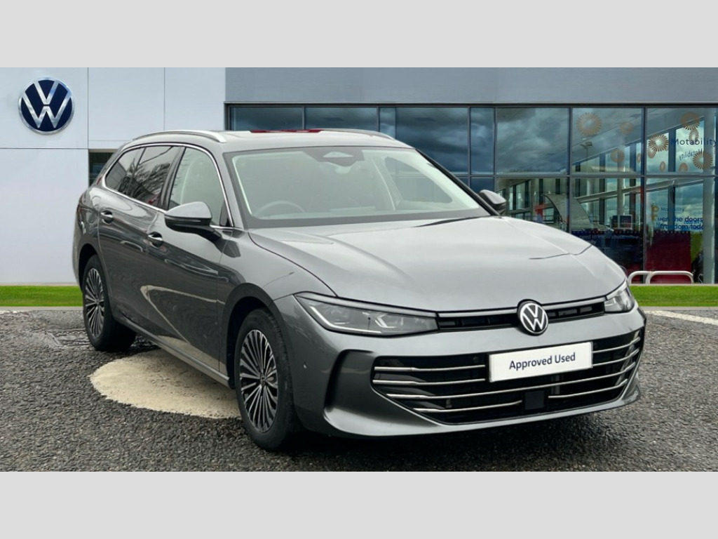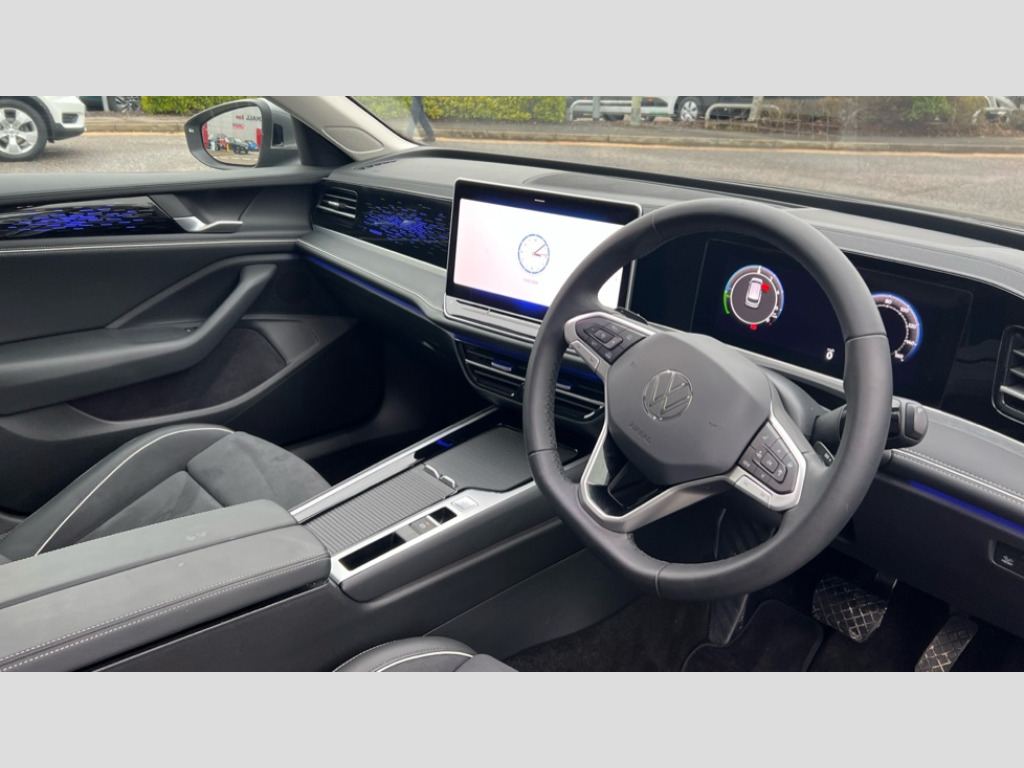 Volkswagen Passat 1.5 TSI eHybrid Elegance 5dr DSG 2 x Front USB-C ports,2 x USB-C charging sockets on the centre console in the rear,charging capacity up to 45W, Adaptive cruise control, Advanced driver attention and drowsiness monitor, Chat GPT function for IDA voice assistant, Digital cockpit pro 10.25" high resolution, Discover media navigation system includes streaming and internet, Dynamic road sign display, E-Sim card for online connectivity, eCall emergency call service, Electronic engine sound, Full electric tailgate operation, Inductive smartphone charging without external antenna connection, Memory feature for park assist, Oncoming vehicle braking when turning including swerve support, Park assist pro with park distance control (Remote park assist), Predictive speed limiter, Preparation for We connect and We connect plus, Wireless app connect, Battery 340 A (58 Ah), Front wheel drive, Petrol Particulate Filter, 8 Speakers, Auto dimming interior rear view mirror, Automatic headlights, Body colour bumpers, Body colour door handles, Electric panoramic sunroof, tilting and sliding panoramic sunroof with rear panoramic sunroof, Heated windscreen washer jets, Laminated safety glass windshield, heat and sound insulating, LED third brake light, Rain sensor, Rear side wing doors, Rear wiper, Welcome light with surround lighting, 3 seat bench in 2nd row, 3 zone air care climatronic with rear air conditioning control panel, 30 colours options interior ambient lighting, Front + rear carpet mats, Front head restraints, Front sports comfort seats, Isofix child seat preparation, easy-fit (for two outer rear seats, and front passenger seat), compatible with I-size, Leather-wrapped, heated and multi-function steering wheel with shift paddles, Luggage compartment cover, power operated, Rear centre armrest, Single front passenger seat, Standard pedal cluster, Sun visors with illuminated vanity mirrors for driver and front passenger, Sunblind for rear side windows, Three rear head restraints, Unsplit rear seat bench, split folding backrest, Acoustics pack - Passat Estate, LED High matrix headlamps pack - Passat, 3x3 point rear seat belts, ABS (Anti locking brake system) includes BAS (Brake assist) and EBD (Electronic brake pressure distribution), Autonomous emergency braking front assist with pedestrian and cyclist monitoring, Disc brakes in front, Driver/Front Passenger airbags, Drivers knee airbag, Electronic parking brake with auto hold, ESC (Electronic stability control) + EDL (Electronic Differential lock) and ASR (Traction control), EDTC (Engine drag torque control), Extended safety system with proactive passenger protection system, Front passenger airbag deactivation switch, Hill hold function, Tyre pressure loss indicator, Warning triangle and first aid kit, Alarm with interior protection, Electronic engine immobiliser, Keyless locking and starting system keyless access with safelock, Aluminium decorative inserts, Tool kit for tyre mobility set, Trims for alloy wheels, Tyre mobility kit including compressor and sealing foam