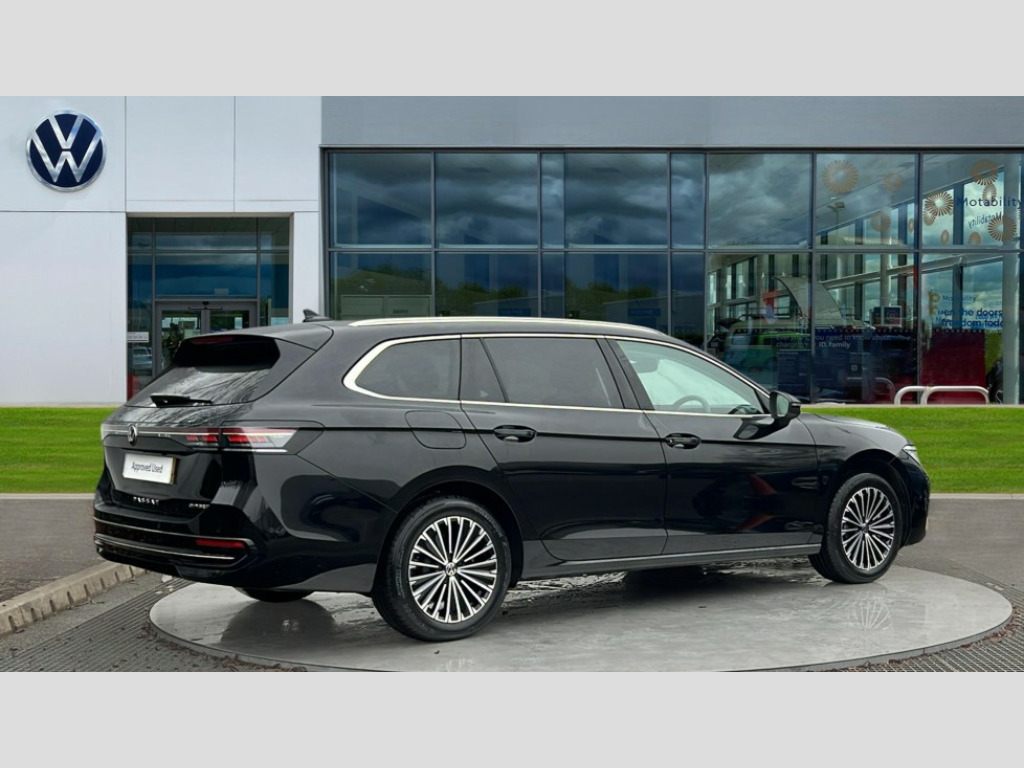 Volkswagen Passat 1.5 TSI eHybrid Elegance 5dr DSG 2 x Front USB-C ports,2 x USB-C charging sockets on the centre console in the rear,charging capacity up to 45W, Adaptive cruise control, Advanced driver attention and drowsiness monitor, Chat GPT function for IDA voice assistant, Digital cockpit pro 10.25" high resolution, Discover media navigation system includes streaming and internet, Dynamic road sign display, E-Sim card for online connectivity, eCall emergency call service, Electronic engine sound, Full electric tailgate operation, Inductive smartphone charging without external antenna connection, Memory feature for park assist, Oncoming vehicle braking when turning including swerve support, Park assist pro with park distance control (Remote park assist), Predictive speed limiter, Preparation for We connect and We connect plus, Wireless app connect, Battery 340 A (58 Ah), Front wheel drive, Petrol Particulate Filter, 8 Speakers, Auto dimming interior rear view mirror, Automatic headlights, Body colour bumpers, Body colour door handles, Electric panoramic sunroof, tilting and sliding panoramic sunroof with rear panoramic sunroof, Heated windscreen washer jets, Laminated safety glass windshield, heat and sound insulating, LED third brake light, Rain sensor, Rear side wing doors, Rear wiper, Welcome light with surround lighting, 3 seat bench in 2nd row, 3 zone air care climatronic with rear air conditioning control panel, 30 colours options interior ambient lighting, Front + rear carpet mats, Front head restraints, Front sports comfort seats, Isofix child seat preparation, easy-fit (for two outer rear seats, and front passenger seat), compatible with I-size, Leather-wrapped, heated and multi-function steering wheel with shift paddles, Luggage compartment cover, power operated, Rear centre armrest, Single front passenger seat, Standard pedal cluster, Sun visors with illuminated vanity mirrors for driver and front passenger, Sunblind for rear side windows, Three rear head restraints, Unsplit rear seat bench, split folding backrest, Acoustics pack - Passat Estate, LED High matrix headlamps pack - Passat, 3x3 point rear seat belts, ABS (Anti locking brake system) includes BAS (Brake assist) and EBD (Electronic brake pressure distribution), Autonomous emergency braking front assist with pedestrian and cyclist monitoring, Disc brakes in front, Driver/Front Passenger airbags, Drivers knee airbag, Electronic parking brake with auto hold, ESC (Electronic stability control) + EDL (Electronic Differential lock) and ASR (Traction control), EDTC (Engine drag torque control), Extended safety system with proactive passenger protection system, Front passenger airbag deactivation switch, Hill hold function, Tyre pressure loss indicator, Warning triangle and first aid kit, Alarm with interior protection, Electronic engine immobiliser, Keyless locking and starting system keyless access with safelock, Aluminium decorative inserts, Tool kit for tyre mobility set, Trims for alloy wheels, Tyre mobility kit including compressor and sealing foam