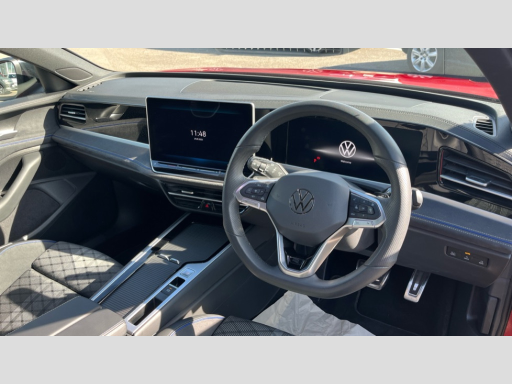 Volkswagen Passat 1.5 TSI eHybrid R-Line 5dr DSG 2 x Front USB-C ports,2 x USB-C charging sockets on the centre console in the rear,charging capacity up to 45W, Adaptive cruise control, Advanced driver attention and drowsiness monitor, Chat GPT function for IDA voice assistant, Digital cockpit pro 10.25" high resolution, Discover media navigation system includes streaming and internet, Dynamic road sign display, E-Sim card for online connectivity, eCall emergency call service, Electronic engine sound, Full electric tailgate operation, Inductive smartphone charging without external antenna connection, Memory feature for park assist, Oncoming vehicle braking when turning including swerve support, Park assist pro with park distance control (Remote park assist), Predictive speed limiter, Preparation for We connect and We connect plus, Wireless app connect, Battery 340 A (58 Ah), Front wheel drive, Petrol Particulate Filter, 8 Speakers, Auto dimming interior rear view mirror, Automatic headlights, Body colour bumpers, Body colour door handles, Heated windscreen washer jets, Laminated safety glass windshield, heat and sound insulating, LED third brake light, Rain sensor, Rear side wing doors, Rear wiper, Welcome light with surround lighting, 3 seat bench in 2nd row, 3 zone air care climatronic with rear air conditioning control panel, 30 colours options interior ambient lighting, Brushed stainless steel pedals, Front + rear carpet mats, Front head restraints, Front sports seats, Isofix child seat preparation, easy-fit (for two outer rear seats, and front passenger seat), compatible with I-size, Luggage compartment cover, power operated, Rear centre armrest, Single front passenger seat, Sun visors with illuminated vanity mirrors for driver and front passenger, Sunblind for rear side windows, Three rear head restraints, Unsplit rear seat bench, split folding backrest, Dynamic chassis control (DCC) pack - Passat, LED High matrix headlamps pack - Passat, 3x3 point rear seat belts, ABS (Anti locking brake system) includes BAS (Brake assist) and EBD (Electronic brake pressure distribution), Autonomous emergency braking front assist with pedestrian and cyclist monitoring, Disc brakes in front, Driver/Front Passenger airbags, Drivers knee airbag, Electronic parking brake with auto hold, ESC (Electronic stability control) + EDL (Electronic Differential lock) and ASR (Traction control), EDTC (Engine drag torque control), Extended safety system with proactive passenger protection system, Front passenger airbag deactivation switch, Hill hold function, Tyre pressure loss indicator, Warning triangle and first aid kit, Alarm with interior protection, Electronic engine immobiliser, Keyless locking and starting system keyless access with safelock, Tool kit for tyre mobility set, Trims for alloy wheels, Tyre mobility kit including compressor and sealing foam
