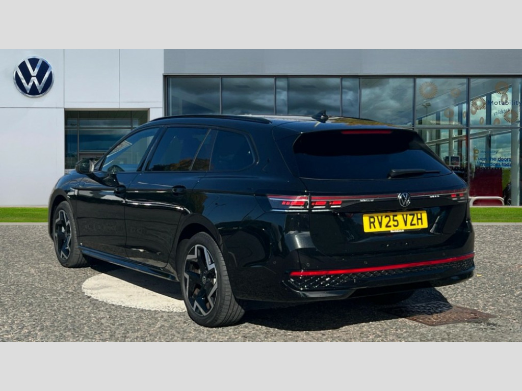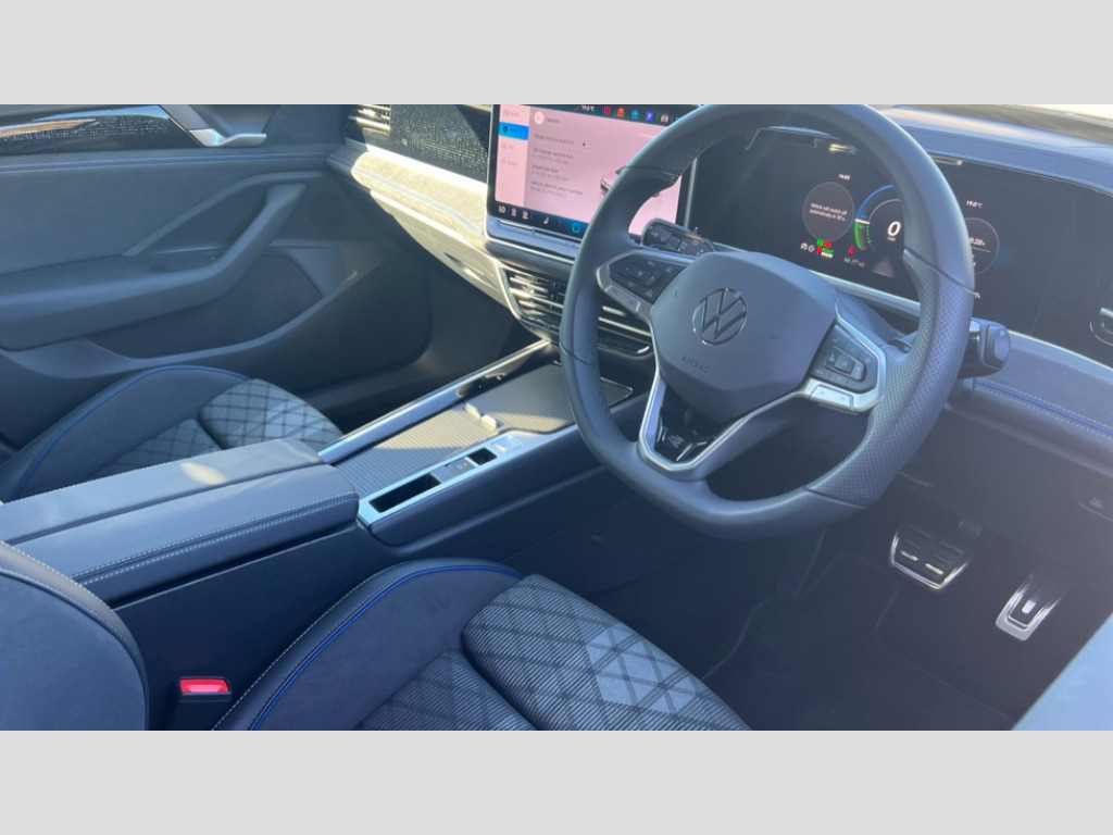 Volkswagen Passat 1.5 TSI eHybrid R-Line 5dr DSG 2 x Front USB-C ports,2 x USB-C charging sockets on the centre console in the rear,charging capacity up to 45W, Adaptive cruise control, Advanced driver attention and drowsiness monitor, Chat GPT function for IDA voice assistant, Digital cockpit pro 10.25" high resolution, Discover media navigation system includes streaming and internet, Dynamic road sign display, E-Sim card for online connectivity, eCall emergency call service, Electronic engine sound, Full electric tailgate operation, Inductive smartphone charging without external antenna connection, Memory feature for park assist, Oncoming vehicle braking when turning including swerve support, Park assist pro with park distance control (Remote park assist), Predictive speed limiter, Preparation for We connect and We connect plus, Wireless app connect, Battery 340 A (58 Ah), Front wheel drive, Petrol Particulate Filter, 8 Speakers, Auto dimming interior rear view mirror, Automatic headlights, Body colour bumpers, Body colour door handles, Heated windscreen washer jets, Laminated safety glass windshield, heat and sound insulating, LED third brake light, Rain sensor, Rear side wing doors, Rear wiper, Welcome light with surround lighting, 3 seat bench in 2nd row, 3 zone air care climatronic with rear air conditioning control panel, 30 colours options interior ambient lighting, Brushed stainless steel pedals, Front + rear carpet mats, Front head restraints, Front sports seats, Isofix child seat preparation, easy-fit (for two outer rear seats, and front passenger seat), compatible with I-size, Luggage compartment cover, power operated, Rear centre armrest, Single front passenger seat, Sun visors with illuminated vanity mirrors for driver and front passenger, Sunblind for rear side windows, Three rear head restraints, Unsplit rear seat bench, split folding backrest, Dynamic chassis control (DCC) pack - Passat, LED High matrix headlamps pack - Passat, 3x3 point rear seat belts, ABS (Anti locking brake system) includes BAS (Brake assist) and EBD (Electronic brake pressure distribution), Autonomous emergency braking front assist with pedestrian and cyclist monitoring, Disc brakes in front, Driver/Front Passenger airbags, Drivers knee airbag, Electronic parking brake with auto hold, ESC (Electronic stability control) + EDL (Electronic Differential lock) and ASR (Traction control), EDTC (Engine drag torque control), Extended safety system with proactive passenger protection system, Front passenger airbag deactivation switch, Hill hold function, Tyre pressure loss indicator, Warning triangle and first aid kit, Alarm with interior protection, Electronic engine immobiliser, Keyless locking and starting system keyless access with safelock, Tool kit for tyre mobility set, Trims for alloy wheels, Tyre mobility kit including compressor and sealing foam
