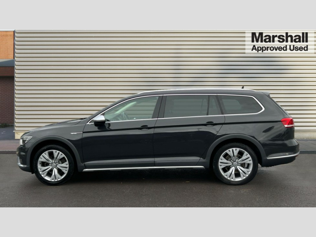 Volkswagen Passat Alltrack 2.0 TDI 190 4MOTION 5dr DSG Adaptive cruise control, Analogue clock, Door/tailgate open warning lights, Driver alert system, Exterior temperature gauge with frost alarm, Low washer fluid warning light, Multi function display colour screen, Multifunction computer, Remote fuel flap release, Remote tailgate release, Service interval indicator, Speed sensitive power steering, Off road suspension, Auxiliary socket for external device, Composition media system with Radio/CD/MP3, DAB Digital radio, MDI with USB/iPod connection cables, SD card slot, Auto dimming rear view mirror, Automatic activation of hazard warning lights, Body colour bumpers, Body colour door handles, Chrome fog light surround, Chrome louvres in grille, Chrome side sills, Chrome side window surrounds, Chrome surround for air intake, Coming/leaving home lighting function, Electric folding mirrors, Electric front windows, Electric rear windows, Electrically adjustable and heated door mirrors, Front fog lights with static cornering function, Headlight range control, Heated rear window, Matt chrome door mirrors, Rain sensor, Silver roof rails, Twin Trapezoidal tailpipes, Windscreen wipers/ intermittent wipe + 4 position delay, 12V socket in luggage compartment, 12V socket in rear centre console, 3 rear head restraints, 3 Zone electronic climate control with automatic air recirculation, 4 boot load lashing points, 40:20:40 split folding rear bench seat, Driver's cushion tilt adjust, Entry lights on doors, Front + rear carpet mats, Front and rear interior lighting with delay and dimming function, Front centre armrest with storage compartment, Front comfort seats, Front cupholders x2 with covers, Front door pocket bottle holders, Front/rear reading lights, Height/reach adjust steering wheel, Leather gearknob, Leather multifunction steering wheel, Load through provision, Lockable, illuminated, cooled glovebox, Luggage compartment cover, removable, Luggage compartment lighting, Manual lumbar adjust on passenger's seat, Rear centre armrest with cupholder and storage, Stainless steel pedals, Stainless Steel Scuff Plates, Storage compartment in driver's door, Storage compartment in passenger's door, Storage compartment in rear doors, Storage compartment in roof console, Storage pockets in backrests of front seats, Sunvisors with illuminated vanity mirrors, Variable boot floor, Ambient lighting pack - Passat, 3 rear 3 point seatbelts, ABS, brake assist and EBD, Automatic post collision braking, Curtain airbags, Driver/Front Passenger airbags, Driver/Front passenger WOKS head restraints, Drivers knee airbag, Electronic parking brake with auto hold, Electronic stability control, ESP with EDL + ASR, First aid kit, Front assist including city emergency braking, Front side airbags, Height adjustable front 3 point seatbelts + pretensioners, Hill hold function, Passenger airbag deactivation system, Pre crash system, Rear side airbags, Seatbelt warning lamp and buzzer, Warning triangle, Alarm with interior protection, Electronic engine immobiliser, Keyless Start, Remote central locking with 2 remote folding keys, Chrome air vent and instrument surround, White instrument dials