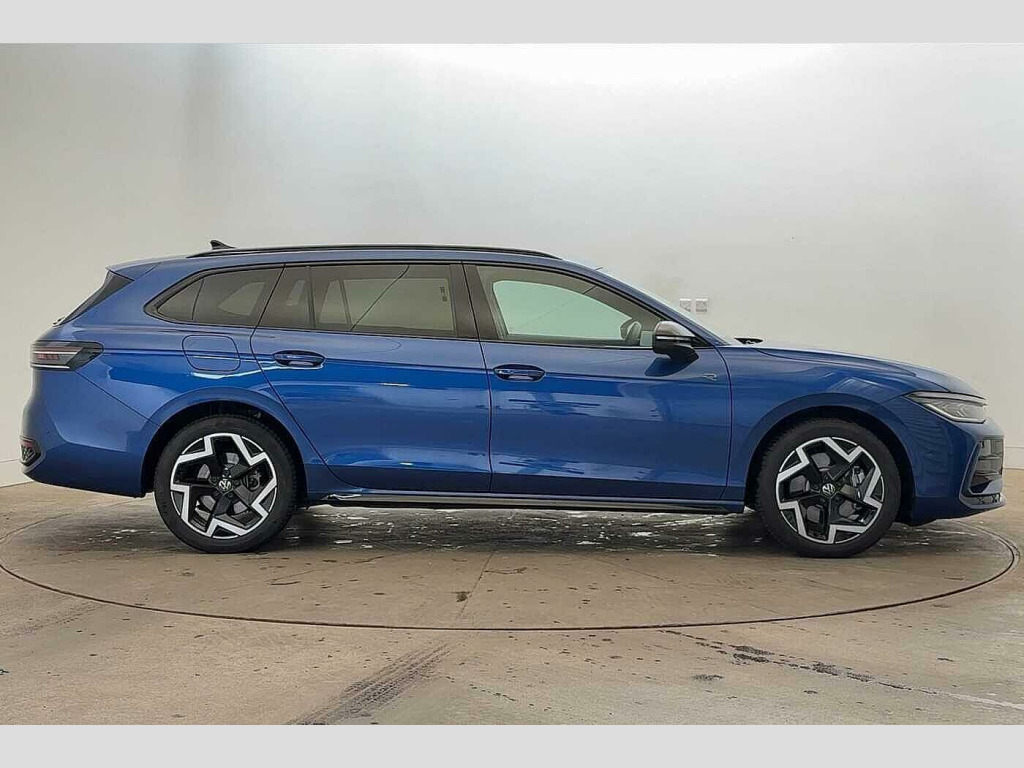 For more information regarding our flexible finance options or a personalised video, contact our sales team now. This car comes fully prepared to the Volkswagen Approved Used programme, with over £2,000 of additional customer benefits including minimum 12 months Warranty or remaining Manufacturers Warranty whichever is greater, 1 year Roadside Assistance, 142 Multi-Point Check and 30 Day or 1,000 Mile Exchange Agreement. Part Exchange & Finance Available subject to T&C's. Metallic - Reef blue, R-Line seat trim covers in Karoso fabric Karoso - Soul black, Heated windscreen washer jets, Laminated safety glass windshield, heat and sound insulating, Rain sensor, Rear wiper, Front wheel drive, Body colour bumpers, Body colour door handles, Rear side wing doors, Automatic headlights, LED third brake light, Welcome light with surround lighting, ABS (Anti locking brake system) includes BAS (Brake assist) and EBD (Electronic brake pressure distribution), Autonomous emergency braking front assist with pedestrian and cyclist monitoring, Disc brakes in front, Electronic parking brake with auto hold, ESC (Electronic stability control) + EDL (Electronic Differential lock) and ASR (Traction control), EDTC (Engine drag torque control), Hill hold function, Adaptive cruise control, Advanced driver attention and drowsiness monitor, Dynamic road sign display, Electronic engine sound, Memory feature for park assist, Oncoming vehicle braking when turning including swerve support, Park assist pro with park distance control (Remote park assist), Predictive speed limiter, Auto dimming interior rear view mirror, 3x3 point rear seat belts, Driver/Front Passenger airbags, Drivers knee airbag, Extended safety system with proactive passenger protection system, Front passenger airbag deactivation switch, Tyre pressure loss indicator, Warning triangle and first aid kit, Front + rear carpet mats, 3 zone air care climatronic with rear air conditioning control panel, Brushed stainless steel pedals, Luggage compartment cover, power operated, Rear centre armrest, Sunblind for rear side windows, 30 colours options interior ambient lighting, Sun visors with illuminated vanity mirrors for driver and front passenger, 2 x Front USB-C ports, 2 x USB-C charging sockets on the centre console in the rear, charging capacity up to 45W, Discover media navigation system includes streaming and internet, E-Sim card for online connectivity, Inductive smartphone charging without external antenna connection, Preparation for We connect and We connect plus, Wireless app connect, 8 Speakers, Full electric tailgate operation, Chat GPT function for IDA voice assistant, Digital cockpit pro 10.25" high resolution, eCall emergency call service, Battery 340 A (58 Ah), Petrol Particulate Filter, Dynamic chassis control (DCC) pack - Passat, LED High matrix headlamps pack with Illuminated VOLKSWAGEN emblem rear - Passat, 3 seat bench in 2nd row, Front head restraints, Front sports seats, Isofix child seat preparation, easy-fit (for two outer rear seats, and front passenger seat), compatible with I-size, Single front passenger seat, Three rear head restraints, Unsplit rear seat bench, split folding backrest, Alarm with interior protection, Electronic engine immobiliser, Keyless locking and starting system keyless access with safelock, Trims for alloy wheels, Tool kit for tyre mobility set