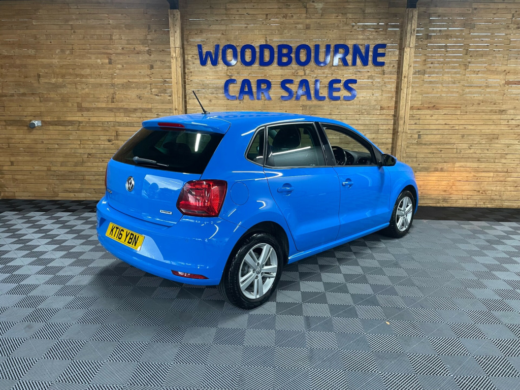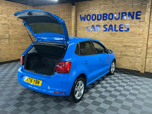 This 2016 Volkswagen Polo 1.0 BlueMotion Tech Match Hatchback with a manual transmission and Euro 6 compliant petrol engine is a fantastic family car. With only 40000 miles on the clock this 5-door hatchback offers plenty of space for passengers and luggage, boasting 5 seats and 15in Alloy Wheels. Its sleek design includes a Black Radiator Grille with Chrome Trim, Body Coloured Bumpers and Side Sills, Body Coloured Door Handles and Mirrors with Integrated Indicators, and a Chrome Trimmed Front Air Intake Surround. Additionally, this car is ULEZ compliant, making it an environmentally conscious choice. All of our vehicles go through a detailed mechanical and safety inspection and are fully serviced with a 12 month MOT with no advisories prior to collection., in alloy wheels - stratford, body coloured door handles and mirrors with integrated indicators, spare wheel - 15in steel, tinted glass - heat insulating rear 65 percent light absorbing from b pillar backwards, split folding rear backrests 60-40, bluetooth phone connectivity, composition media system, cruise control, parking sensors - front and rear