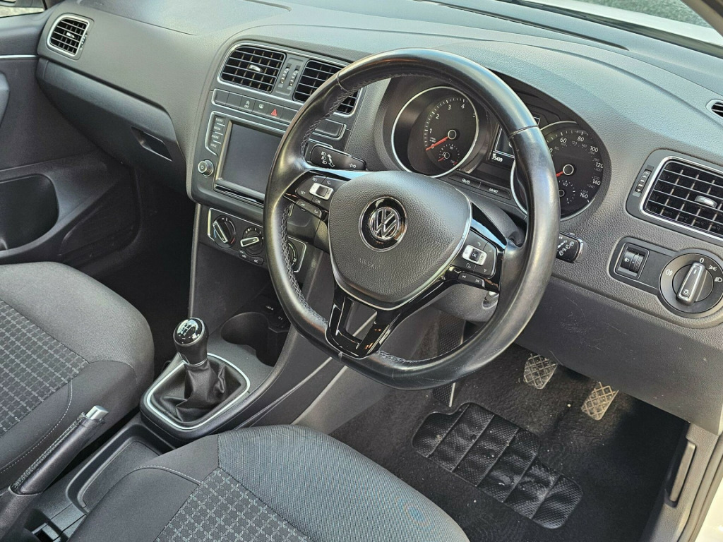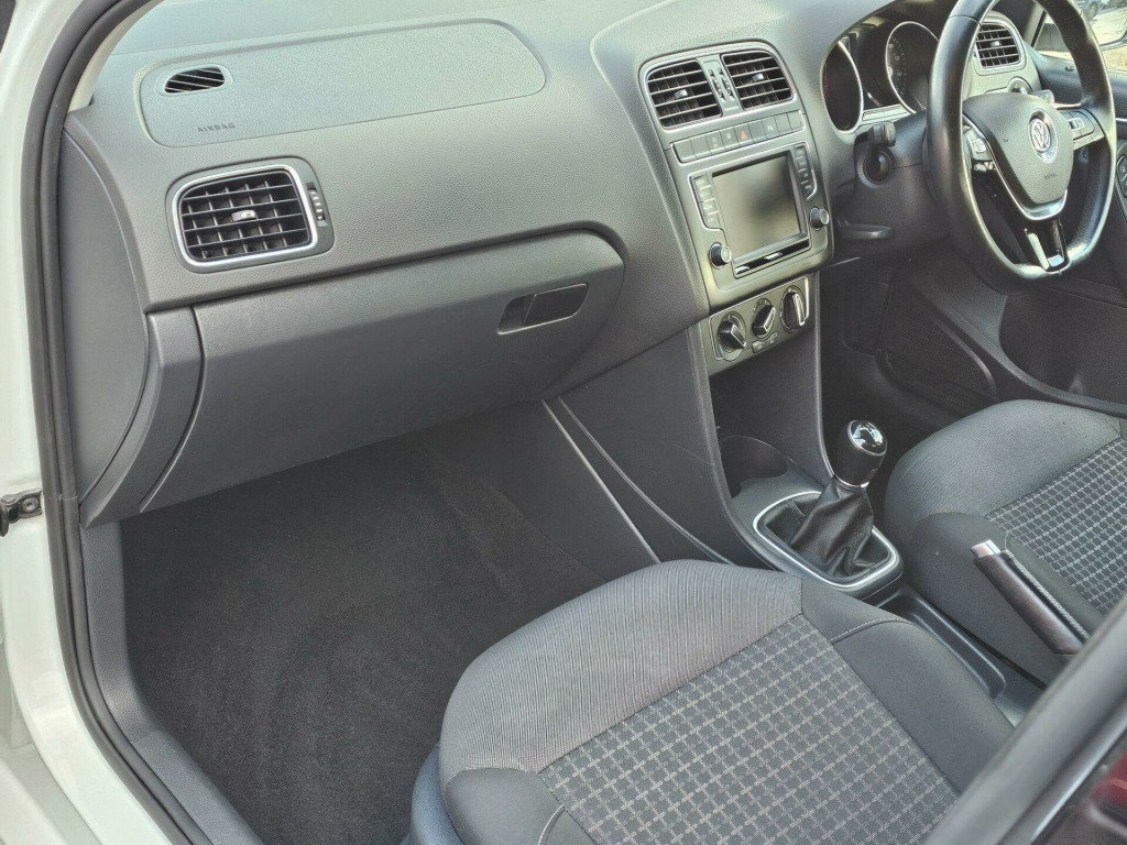 THIS GREAT SPEC 5-DOOR POLO TECH SE IS PRESENTED IN POLAR WHITE WITH GLOSS BLACK ACCENTS COMPLEMENTED BY GREAT CONDITION 15'' SILVER ALLOY WHEELS. THE ECONOMICAL AND NIPPY 1.0 PETROL ENGINE IS CONNECTED TO A MANUAL GEARBOX GIVING A GREAT DRIVING EXPERIENCE AROUND TOWN AND IS EQUALLY CAPABLE ON THE MOTORWAY. THE INTERIOR BOASTS CONTRASTING GREY/BLACK CLOTH SEATS WITH A 6.5'' TOUCHSCREEN DISPLAY GIVING ACCESS TO THE 'COMPOSITION' MEDIA SYSTEM WHICH INCLUDES; BLUETOOTH TELEPHONE, CD/DAB+ RADIO AND MEDIA STREAMING PLUS THE ABILITY TO SEND & RECEIVE TEXTS VIA THE TOUCHSCREEN. FURTHER EQUIPMENT INCLUDES AIR CONDITIONING, LEATHER-TRIMMED MULTI-FUNCTION STEERING WHEEL, ACTIVE AND PASSIVE SAFETY FEATURES PLUS ELECTRONIC DIFFERENTIAL LOCK WITH MUCH MORE TO DISCOVER. WE HAVE FULLY INSPECTED AND SERVICED THIS CAR, SO THE ONLY ISSUE FOR ITS NEW OWNER WILL BE WHERE THE NEXT TRIP SHOULD BE. PLEASE CALL 0161 761 3452 (OPTION 2) TO ARRANGE A VIEWING, TO RESERVE THE CAR OR FOR MORE INFORMATION. WHILST EVERY EFFORT HAS BEEN MADE TO ENSURE THAT THE STATED SPECIFICATION IS ACCURATE, PLEASE CHECK WITH A MEMBER OF THE SALES TEAM IF A PARTICULAR SPECIFICATION/FEATURE IS IMPORTANT TO YOU.. 12V Socket - Centre Console, 15in Alloy Wheels - Lyon, ABS - Anti-Lock Braking System, ASR - Anti Slip Regulation, Air Conditioning - Manual, Air Vent Surrounds - Matt Chrome, Airbags - Driver, Airbags - Front Passenger, Airbags - Front Side Head, Airbags - Front Thorax, Alarm with Interior Protection, Anti-Theft Wheel Bolts, Automatic Post-Collision Braking System, Aux-In Socket, Bluetooth Audio Connection, Bluetooth Phone Connectivity, Body Coloured Bumpers, Body Coloured Door Handles, Body Coloured Side Sills, Body-Coloured Door Mirrors with Integrated Indicators, Car Information Display, Carpet - Black, Central Locking - Remote with 2 Remote Keys, Chrome Trimmed Front Air Intake Grille Surround, Colour Touch Screen - 6.5in, Composition Media System, Cup Holders - Front x2, DAB+ - Digital Radio Reception, Dashboard - Titan Black, Daytime Running Lights, Differential Lock - Electronic, Door Mirrors - Electrically Adjustable and Heated, Driver Alert System, Dust and Pollen Filter, ESC - Electronic Stability Control, Electric Windows - Front and Rear, Electronic Engine Immobiliser, Front Seat Back Storage Pockets, Front Windscreen Washers and Wipers with 4 Speeds including Interval Delay, Galvanised Body, Gear Knob - Leather, Gear Lever Gaiter Surround - Matt Chrome, Glovebox, Grab Handles - Front x2 Rear x2 with Coat Hooks, HBA - Hydraulic Brake Assist, Handbrake Grip Button - Matt Chrome, Head Restraints - Front Whiplash Optimised, Headlights - Halogen Clear - Range Adjustable, Heated Rear Windscreen, Height and Reach Adjustable Steering Wheel, High Gloss Black Decorative Inserts, High Level 3rd Brake Light, Hill Hold Assist, ISOFIX Child Seat Preparation for 2 Rear Seats, Instrument Lighting - White Adjustable Panel Illumination, Interior Lighting Delay, Keys - Two Remote Control Folding Keys, Leather Trimmed Handbrake Grip, Lights on Warning Buzzer, Load Sill Protector, Luggage Compartment - Hooks x2, Luggage Compartment - Variable Load Floor, Luggage Compartment Cover - Removable, Luggage Compartment Light, MDI - Multi Device Interface, MP3 Compatible CD Player, Matt Chrome - Internal Door Handles, Multi-function Display, Multifunction Computer, Power Assisted Steering - Speed Sensitive, Radiator Grille - Black with Chrome Louvres, Reading Lights - Front x2, Reading Lights - Rear, SD Card Reader, SMS Functionality - Read - Compose and Send SMS Messages Using Touch Screen Display - Android Compatible Smartphones Only, Seats - Front Comfort, Seats - Height Adjustment - Front, Simultaneous Pairing of 2 Compatible Mobile Devices, Sound Output - 4x20 Watt, Spare Wheel - 15in Steel, Speakers x8, Split Folding Rear Backrests 60-40, Steering Wheel - 3-Spoke - Leather Trimmed, Steering Wheel - Multifunction, Storage Compartment in Centre Console, Storage Compartment in Front Doors, Storage Compartment in Rear Doors, Sun Visors - Vanity Mirrors and Illuminated x2, Sunglasses Holder, Think Blue - Trainer - Driver Tips - Journey Analysis, Three Rear Head Restraints, Tinted Glass - Heat Insulating Green, Title and Cover Art Display, Tyre Pressure Loss Indicator, USB Socket, Warning Buzzer and Light for Front Seat Belts if Unfastened, Discover Navigation Touch-Screen Navigation Radio System, Airbags - Curtain Front and Rear, Airbags - Front Passenger Deactivation Switch, Front Fog Lights with Cornering Lights, 16in Alloy Wheels - Knight, Rear View Camera, Cruise and Park Pack. Full service history