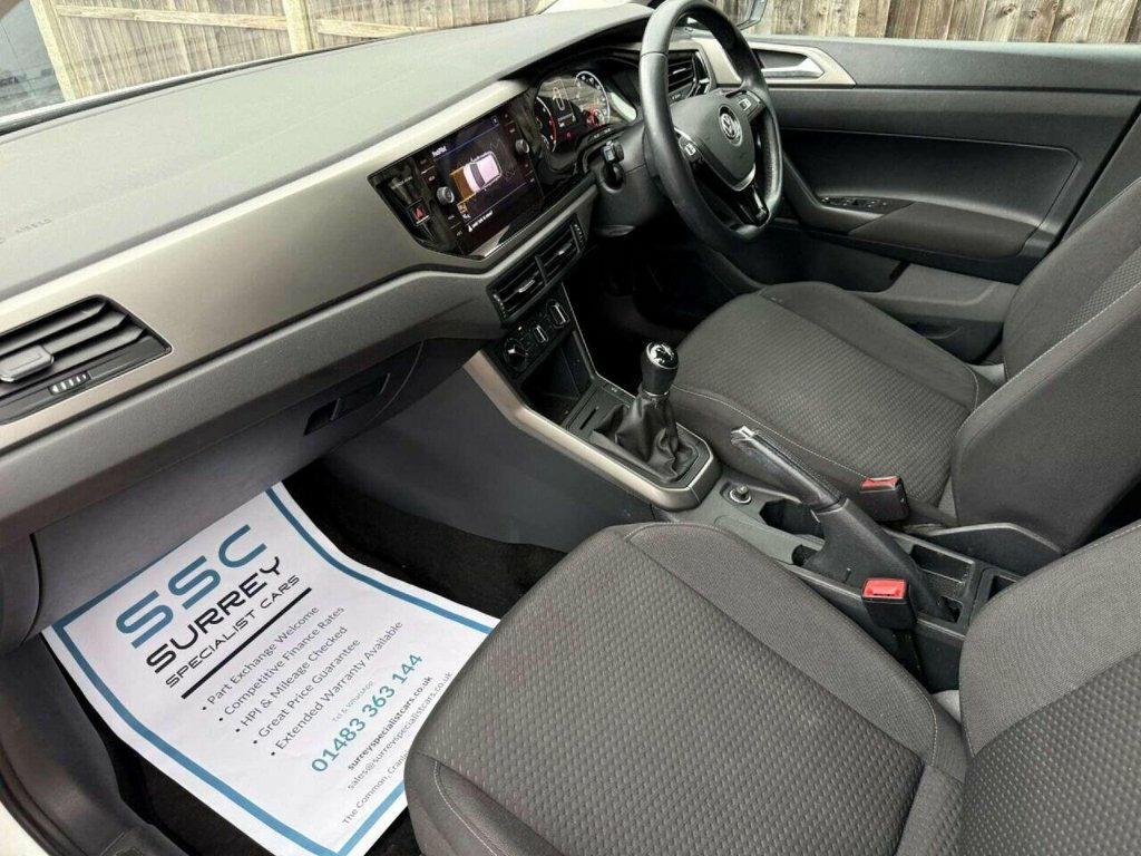 Surrey Specialist Cars are proud to present our lovely Volkswagen Polo SE EVO. This amazing car comes with Service History, finished in stunning metallic white with grey contrast interior. The car has a Long MOT until July 2026 so it is ready to go. The 1L Petrol engine offers superb economy at over 60 MPG on combined cycle. Features Include Multifunction Steering Wheel, Trip Computer, Parking Sensors, Cruise Control, Stereo/Phone Control, Touch Screen, Android Auto, Apple CarPlay, FM/DAB Radio, CD Player, Bluetooth Audio, AUX Input, USB Input, SD Card, Start/Stop System, Air Conditioning, 12V Charging Socket, two Cup Holders, Electric Windows, Fog Lights, 5 Speed Manual Gearbox, 15 Inch Alloy Wheels and two Remote Control Keys to name a few. We are open 7 days a week, and prepare all of our cars to the highest standards. We have a Click & Collect option available, and can also arrange delivery on request. All cars are HPI clear and a full history report is provided with every car. We welcome any inspection and viewing is highly recommended. All cars are available with our AA warranty starting from just ?599 for 12 months. Debit and credit card facilities are available and we offer competitive finance packages. If you have any questions or would like to view any of our cars give us a call or drop us a message on whatsapp 01483 363 144 to arrange an appointment with one of our team. We also offer full bespoke walkaround videos on request. We are always on the lookout for h 15in Alloy Wheels - Sassari, 3 Rear Three-Point Seat Belts with Tensi, ABS - Anti-Lock Braking System with HBA , Air Conditioning - Manual, Air Vents with High Gloss Black Trim, Alarm with Interior Protection with Deac, Automatic Post-Collision Braking System, Bag Hooks in the Luggage Compartment x2, Black Radiator Grille with Chrome Trim, Black Radiator Grille with Chrome Trimme, Body Coloured Bumpers and Side Sills, Body Coloured Door Handles and Mirrors w, Car-Net App Connect, Centre Console with Open Storage Compart, Chrome Effect Handbrake Grip Button, Composition Media System, Cup Holders - Front x2 and 12v Socket wi, Curtain Airbag System for Front and Rear, DataPlug, Decorative Inser