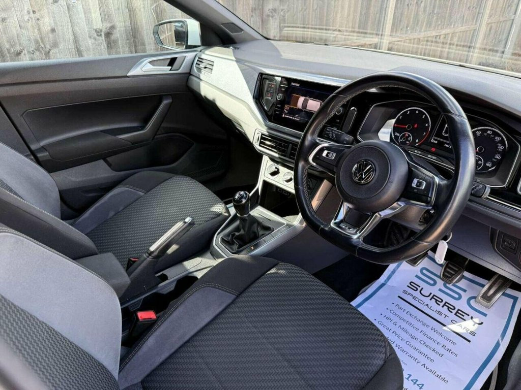 Surrey Specialist Cars are proud to present our lovely Volkswagen Polo R Line TSI. This amazing car comes with Full Service History, finished in stunning metallic white with grey contrast interior. The car has a Long MOT until September 2026 so it is ready to go. The 1L Petrol engine offers superb economy at over 65 MPG on combined cycle. Features Include Multifunction Steering Wheel, Trip Computer, Cruise Control, Stereo Control, Touch Screen, Start/Stop System, Parking Sensors, Android Auto, Apple CarPlay, Heated Rear Screen, FM/DAB Radio, CD Player, SD Card, Bluetooth Audio, AUX Input, USB Input, Air Conditioning, 12V Charging Socket, two Cup Holders, 6 Speed Manual Gearbox, Electric Windows, 16 Inch Alloy Wheels and two Remote Control Keys to name a We are open 7 days a week, and prepare all of our cars to the highest standards. We have a Click & Collect option available, and can also arrange delivery on request. All cars are HPI clear and a full history report is provided with every car. We welcome any inspection and viewing is highly recommended. All cars are available with our AA warranty starting from just ?150 for 3 months. Debit and credit card facilities are available and we offer competitive finance packages. If you have any questions or would like to view any of our cars give us a call or drop us a message on whatsapp 01483 363 144 to arrange an appointment with one of our team. We also offer full bespoke walkaround videos on request. We are always on the look 16in Alloy Wheels - Sebring Galvano Grey, 3 Rear Three-Point Seat Belts with Tensi, ABS - Anti-Lock Braking System with HBA , Air Conditioning - Manual, Alarm with Interior Protection with Deac, Ambient Lighting in Front Footwell and L, Armrest - Front Centre with Storage Comp, Automatic Post-Collision Braking System, Bag Hooks in the Luggage Compartment x2, Black Radiator Grille with Chrome Trim, Black Radiator Grille with Chrome Trimme, Body Coloured Bumpers and Side Sills, Body Coloured Door Handles and Mirrors w, Car-Net App Connect, Carpet Mats - Front and Rear, Centre Console with Open Storage Compart, Chrome Effect Handbrake Grip Button, Chrome Effect Trapezoid Exhaust Tailpipe, Chrom