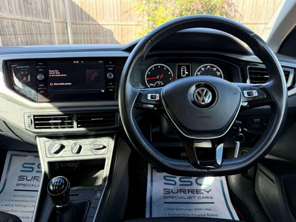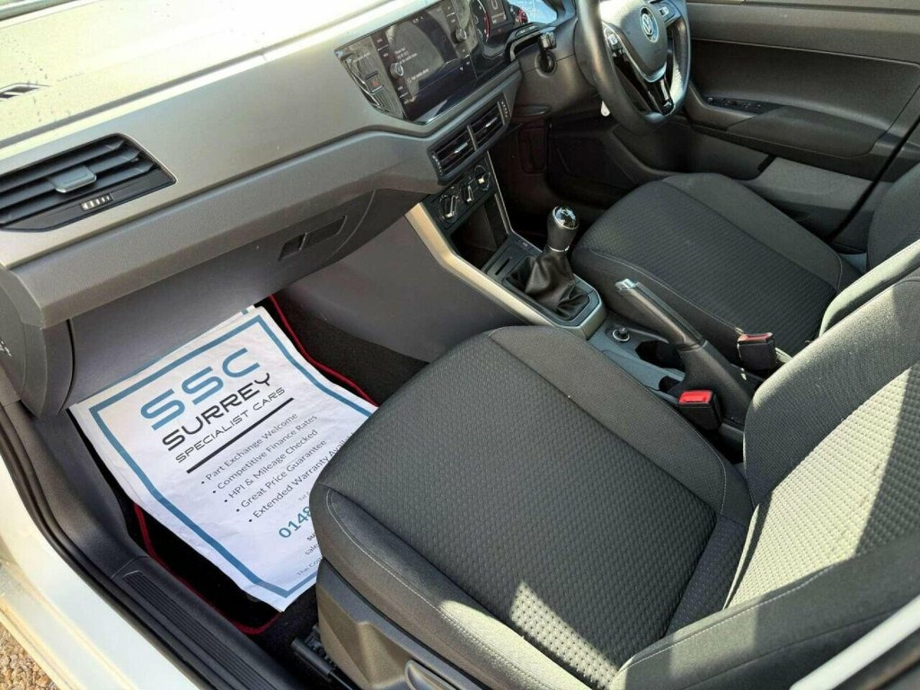 Surrey Specialist Cars are proud to present our lovely Volkswagen Polo SE TSI. This amazing car comes with Service History, finished in stunning metallic white with grey contrast interior. The car was last serviced in March 2025 37,652 miles. The car has a Long MOT until March 2026 so it is ready to go. The 1L Petrol engine offers superb economy at over 60 MPG on combined cycle. Features Include Multifunction Steering Wheel, Trip Computer, New Tyres and New Water Pump Cruise Control, Stereo/Phone Control, Android Auto, Apple CarPlay, FM/DAB Radio, CD Player, Bluetooth Audio, AUX Input, USB Input, SD Card, Start/Stop System, Touch Screen, Air Conditioning, 12V Charging Socket, two Cup Holders, Electric Windows, Fog Lights, 5 Speed Manual Gearbox, 15 Inch Alloy Wheels and two Remote Control Keys to name a few. We are open 7 days a week, and prepare all of our cars to the highest standards. We have a Click & Collect option available, and can also arrange delivery on request. All cars are HPI clear and a full history report is provided with every car. We welcome any inspection and viewing is highly recommended. All cars are available with our AA warranty starting from just ?150 for 3 months. Debit and credit card facilities are available and we offer competitive finance packages. If you have any questions or would like to view any of our cars give us a call or drop us a message on whatsapp 01483 363 144 to arrange an appointment with one of our team. We also offer full bespoke 15in Alloy Wheels - Sassari, 3 Rear Three-Point Seat Belts with Tensi, ABS - Anti-Lock Braking System with HBA , Air Conditioning - Manual, Air Vents with High Gloss Black Trim, Alarm with Interior Protection with Deac, Automatic Post-Collision Braking System, Bag Hooks in the Luggage Compartment x2, Black Radiator Grille with Chrome Trim, Black Radiator Grille with Chrome Trimme, Body Coloured Bumpers and Side Sills, Body Coloured Door Handles and Mirrors w, Car-Net App Connect, Centre Console with Open Storage Compart, Chrome Effect Handbrake Grip Button, Composition Media System, Cup Holders - Front x2 and 12v Socket wi, Curtain Airbag System for Front and Rear, DataPlug, Decorative Inser