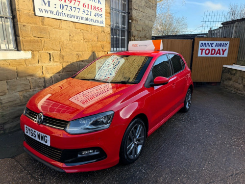 2015 VW POLO 1.0 PETROL 5 DOOR RED, 12 MONTHS MOT (NO ADVISORIES), OIL & FILTER SERVICE, £20 ROAD TAX, EXCELLENT CONDITION THROUGHOUT, 12 MONTHS FREE RAC ROADSIDE COVER, RAC PLATINUM WARRANTY, PROFESSIONALLY VALETED, CLEAR ON EXPERIAN, £100 DEPOSIT SECURES THIS VEHICLE, DRIVEAWAY TODAY! Driveaway Motors is centrally located in the village of Ackworth, West Yorkshire, WF7 7HY, close to Doncaster, Barnsley, Wakefield, Pontefract and Castleford, Excellent reviews, Established 2011, Over 20 vehicles in stock, Finance available with no deposit, Extended warranty available, Part exchange considered, New vehicles arriving daily please visit driveawaymotors.co.uk, If you require any further information then please do not hesitate to contact us, Next MOT due 06/01/2027, Last serviced on 07/01/2026 at 82,918 miles, Part service history, 5 seats, Red, Any inspection, viewing or test drive welcome, £7,000. , This car comes with:, 12V Socket - Centre Console, 16in Alloy Wheels - Salvador, ABS - Anti-Lock Braking System, ASR - Anti Slip Regulation, Air Conditioning - Manual, Air Vent Surrounds - Matt Chrome, Alarm with Interior Protection, Aluminium Look Pedals, Anti-Theft Wheel Bolts, Armrest - Front Centre with Storage Compartment, Automatic Post-Collision Braking System, Aux-In Socket, Bluetooth Audio Connection, Bluetooth Phone Connectivity, Body Coloured Bumpers, Body Coloured Door Handles, Body Coloured Rear Spoiler, Body Coloured Side Sills, Body-Coloured Door Mirrors with Integrated Indicators, Bumpers - R-Line Design, Car Information Display, Chrome Trimmed Front Air Intake Grille Surround, Colour Touch Screen - 6.5in, Composition Media System, Cruise Control, Cruise and Park Pack, Cup Holders - Front x2, DAB+ - Digital Radio Reception, Dashboard - Titan Black, Daytime Running Lights - LED, Differential Lock - Electronic, Door Mirrors - Electrically Adjustable and Heated, Door Sill Protectors with R-Line Logo, Door Sill Strip in Stainless Steel, Driver Alert System, Dust and Pollen Filter, ESC - Electronic Stability Control, Electric Windows - Front and Rear, Electronic Engine Immobiliser, Extended Sill Strips - Flared in Body Colour, Front Fog Lights with Cornering Lights, Front Seat Back Storage Pockets, Front Sports Seats, Front Windscreen Washers and Wipers with 4 Speeds including Interval Delay, Galvanised Body, Gear Knob - Leather, Gear Lever Gaiter Surround - Matt Chrome, Grab Handles - Front x2 Rear x2 with Coat Hooks, HBA - Hydraulic Brake Assist, Handbrake Grip Button - Matt Chrome, Head Restraints - Front Whiplash Optimised, Head Restraints - Front with R-Line Logo, Headlights - Automatic Range Adjustment, Headlights - LED, Heated Rear Windscreen, Height and Reach Adjustable Steering Wheel, High Gloss Black Decorative Inserts, High Level 3rd Brake Light, Hill Hold Assist, ISOFIX Child Seat Preparation for 2 Rear Seats, Instrument Lighting - White Adjustable Panel Illumination, Interior Lighting Delay, LED Rear Number Plate Lights, Leather Trimmed Handbrake Grip, Lights on Warning Buzzer, Low Washer Fluid Warning Light, Luggage Compartment - Hooks x2, Luggage Compartment - Variable Load Floor, Luggage Compartment Cover - Removable, Luggage Compartment Light, MDI - Multi Device Interface, MP3 Compatible CD Player, Matt Chrome - Internal Door Handles, Multi-function Display, Multifunction Computer, Parking Sensors - Front, Parking Sensors - Rear, Power Assisted Steering - Speed Sensitive, Radiator Grille - Black with Chrome Louvres, Radiator Grille - R-Line Design, Reading Lights - Front x2, Reading Lights - Rear, Roof Lining - Black, SD Card Reader, SMS Functionality - Read - Compose and Send SMS Messages Using Touch Screen Display - Android Compatible Smartphones Only, Seats - Height Adjustment - Front, Side Skirts - R-Line Design, Simultaneous Pairing of 2 Compatible Mobile Devices, Sound Output - 4x20 Watt, Spare Wheel - 15in Steel, Speakers x8, Split Folding Rear Backrests 60-40, Steering Wheel - 3-Spoke - Leather Trimmed with Aluminium Inserts and R-Line Logo, Steering Wheel - Multifunction, Styling Pack for R-Line, Sun Visors - Vanity Mirrors and Illuminated x2, Sunglasses Holder, Think Blue - Trainer - Driver Tips - Journey Analysis, Tinted Glass - Heat Insulating Rear 65 Percent Light Absorbing from B Pillar Backwards, Title and Cover Art Display, Tyre Pressure Loss Indicator, USB Socket, Unique R-Line Badging, Warning Buzzer and Light for Front Seat Belts if Unfastened.