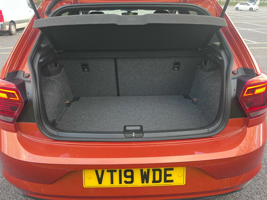 2019 VW Polo 1.0 TSI Automatic Full service history Part exchange welcome , in alloy wheels - sebring galvano grey, black radiator grille with chrome trim, black radiator grille with chrome trimmed louvres, body coloured bumpers and side sills, body coloured door handles and mirrors with integrated indicators, chrome effect trapezoid exhaust tailpipe surrounds left and right, electric windows - front and rear, electrically foldable door mirrors, heated rear windscreen - automatically switches off, r-line styling pack, rear diffuser, rear tinted glass from b pillar backwards - approx 65 percent tinted, spare wheel - space saver, unique r-line badging, 3 rear three-point seat belts with tensioners on outer seats, abs - anti-lock braking system with hba - hydraulic brake assist, alarm with interior protection with deactivation via infotainment system, automatic post-collision braking system, curtain airbag system for front and rear passengers including side airbags in the front, drivers and front passengers airbags with front passenger airbag deactivation switch, esc - electronic stability control, electronic engine immobiliser, front assist - radar sensor controlled distance monitoring system - city emergency braking system and predictive pedestrian protection, height-adjustable front three-point seat belts with tensioners, hill hold control, isofix child seat preparation, license plate with led illumination, rear windscreen washer and wiper with interval delay - reverse activated, remote central locking with 2 remote folding keys, single tone horn, warning buzzer and light for front and rear seat belts if unfastened, air conditioning - manual, ambient lighting in front footwell and light stripes below trim in front and rear doors and dashboard, armrest - front centre with storage compartment, bag hooks in the luggage compartment x2, carpet mats - front and rear, centre console with open storage compartment, chrome effect handbrake grip button, chrome plated air vent surrounds, chrome plated electric mirror adjustment switch surround, chrome plated electric window button surrounds, chrome plated instrument surrounds, cup holders - front x2 and 12v socket with cover, decorative inserts - shadow steel, door sill protectors with r-line logo, drivers and front passengers safety optimised head restraints, dust and pollen filter, front seat back storage pockets, front sports seats with r-line logo on seat backrest, front windscreen washers and wipers with 4 speeds including interval delay, gear lever gaiter in black trim surround, glovebox, height and reach adjustable steering wheel, instrument lighting - white adjustable panel illumination, interior lighting - front and rear with interior delay and dimming function, interior lighting with delayed switch off, leather trimmed three-spoke multifunction steering wheel with aluminium inserts and r-line logo, light and sight pack, luggage compartment - variable load floor, luggage compartment cover - removable, luggage compartment light, pedals - stainless steel, premium usb cable, rain sensor and automatic dimming interior rear-view mirror, seats - front lumbar support, seats - height adjustment - front, speedo and rev counter - electronic odometer - trip - service interval display - digital clock and fuel gauge, split folding rear backrests 60-40, steering wheel - paddle shift, storage compartment under front seats, storage compartment in front and rear doors, three rear head restraints, titanium black rooflining - internal grab handles and sun visors, tool kit and jack, car-net app connect, composition media system, dataplug, driver alert system, multifunction computer plus, parking sensors - front and rear, power assisted steering - speed sensitive, tyre pressure monitoring system, front fog lights with static cornering function, halogen clear headlights range adjustable with separate daytime running lights including automatic headlights on, high level 3rd brake light, led tail lights, lights on warning buzzer, manual coming-automatic leaving home lighting function