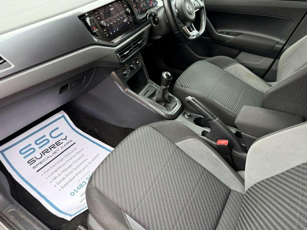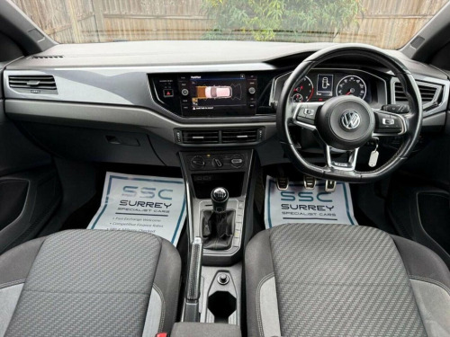 Surrey Specialist Cars are proud to present our lovely Volkswagen Polo R Line TSI. This amazing car comes with Service History, finished in stunning metallic black with grey interior. The car was last serviced in April 2025 at 41,904 miles. The car has a Long MOT until August 2026 so it is ready to go. The 1L Petrol engine offers superb economy at over 65 MPG on combined cycle. Features Include Multifunction Steering Wheel, Trip Computer, Cruise Control, Stereo Control, Touch Screen, Start/Stop System, Parking Camera, Apple CarPlay, Heated Rear Screen, FM/DAB Radio, CD Player, SD Card, Bluetooth Audio, AUX Input, USB Input, Air Conditioning, 12V Charging Socket, two Cup Holders, 5 Speed Manual Gearbox, Electric Windows, 16 Inch Alloy Wheels and two Remote Control Keys to name a We are open 7 days a week, and prepare all of our cars to the highest standards. We have a Click & Collect option available, and can also arrange delivery on request. All cars are HPI clear and a full history report is provided with every car. We welcome any inspection and viewing is highly recommended. All cars are available with our AA warranty starting from just ?599 for 12 months. Debit and credit card facilities are available and we offer competitive finance packages. If you have any questions or would like to view any of our cars give us a call or drop us a message on whatsapp 01483 363 144 to arrange an appointment with one of our team. We also offer full bespoke walkaround videos on request 16in Alloy Wheels - Sebring Galvano Grey, 3 Rear Three-Point Seat Belts with Tensi, ABS - Anti-Lock Braking System with HBA , Air Conditioning - Manual, Alarm with Interior Protection with Deac, Ambient Lighting in Front Footwell and L, Armrest - Front Centre with Storage Comp, Automatic Post-Collision Braking System, Bag Hooks in the Luggage Compartment x2, Black Radiator Grille with Chrome Trim, Black Radiator Grille with Chrome Trimme, Body Coloured Bumpers and Side Sills, Body Coloured Door Handles and Mirrors w, Car-Net App Connect, Carpet Mats - Front and Rear, Centre Console with Open Storage Compart, Chrome Effect Handbrake Grip Button, Chrome Effect Trapezoid Exhaust Tailpipe, Chrom