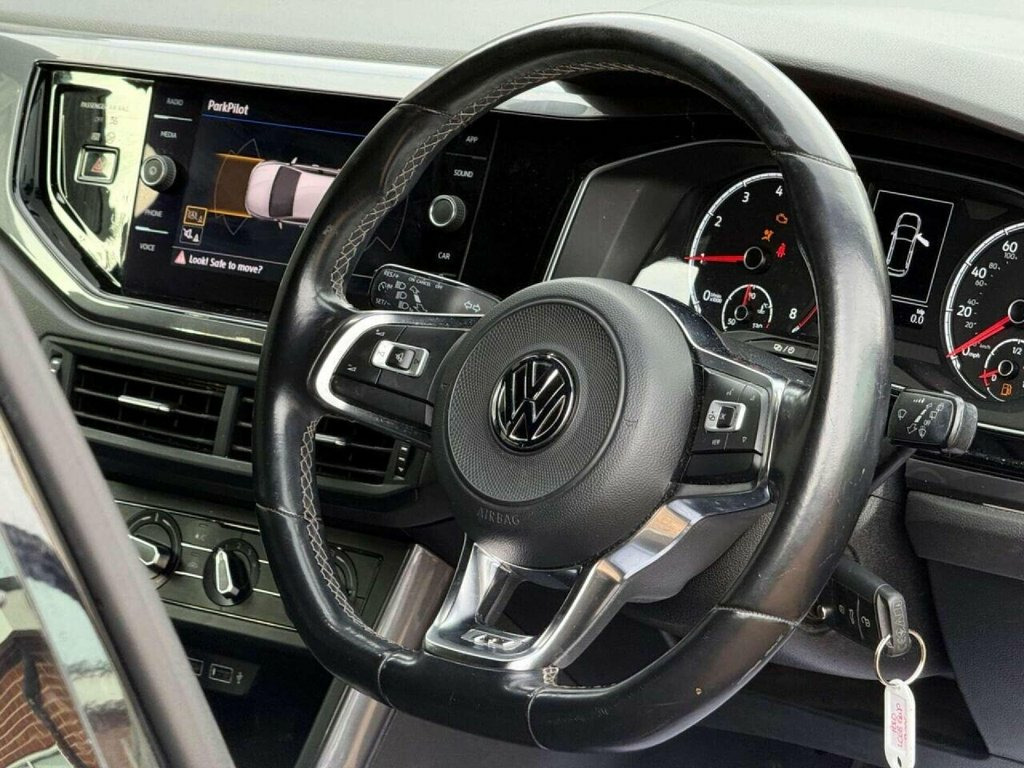 Surrey Specialist Cars are proud to present our lovely Volkswagen Polo R Line TSI. This amazing car comes with Service History from the Main Dealer, finished in stunning metallic black with grey contrast interior. The car has a Long MOT until June 2026 so it is ready to go. The 1L Petrol engine offers superb economy at over 65 MPG on combined cycle. Features Include Multifunction Steering Wheel, Trip Computer, Cruise Control, Stereo Control, Touch Screen, Start/Stop System, Parking Sensors, Android Auto, Apple CarPlay, Heated Rear Screen, FM/DAB Radio, CD Player, SD Card, Bluetooth Audio, AUX Input, USB Input, Air Conditioning, 12V Charging Socket, two Cup Holders, 5 Speed Manual Gearbox, Electric Windows, 16 Inch Alloy Wheels and two Remote Control Keys to name a We are open 7 days a week, and prepare all of our cars to the highest standards. We have a Click & Collect option available, and can also arrange delivery on request. All cars are HPI clear and a full history report is provided with every car. We welcome any inspection and viewing is highly recommended. All cars are available with our AA warranty starting from just ?150 for 3 months. Debit and credit card facilities are available and we offer competitive finance packages. If you have any questions or would like to view any of our cars give us a call or drop us a message on whatsapp 01483 363 144 to arrange an appointment with one of our team. We also offer full bespoke walkaround videos on request. We are alwa 16in Alloy Wheels - Sebring Galvano Grey, 3 Rear Three-Point Seat Belts with Tensi, ABS - Anti-Lock Braking System with HBA , Air Conditioning - Manual, Alarm with Interior Protection with Deac, Ambient Lighting in Front Footwell and L, Armrest - Front Centre with Storage Comp, Automatic Post-Collision Braking System, Bag Hooks in the Luggage Compartment x2, Black Radiator Grille with Chrome Trim, Black Radiator Grille with Chrome Trimme, Body Coloured Bumpers and Side Sills, Body Coloured Door Handles and Mirrors w, Car-Net App Connect, Carpet Mats - Front and Rear, Centre Console with Open Storage Compart, Chrome Effect Handbrake Grip Button, Chrome Effect Trapezoid Exhaust Tailpipe, Chrom