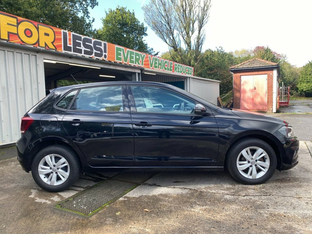 This stylish and reliable Polo has covered less than 40,000 miles and has just two owners from new. It's fully colour coded in Deep Black Pearl and comes with smart 15" diamond cut alloy wheels and an integrated rear spoiler. The last owner has obviously taken care of the vehicle - the interior is as clean and fresh as the exterior and the modern dashboard design is very well laid out with intuitive controls. Just a few of the features included are a large colour touch-screen media system that incorporates Bluetooth connectivity, Apple CarPlay and DAB digital radio. There's also air conditioning, cruise control, ISOFIX anchor points and a leather multi-function sport steering wheel. The solid 1.0 TSi petrol engine is equally at home around town or on the motorway, with VW's figures of up to 71 mpg achievable on these longer journeys and it's ULEZ compliant. 15in Alloy Wheels - Sassari, 3 Rear Three-Point Seat Belts with Tensi, ABS - Anti-Lock Braking System with HBA , Air Conditioning - Manual, Air Vents with High Gloss Black Trim, Alarm with Interior Protection with Deac, Automatic Post-Collision Braking System, Bag Hooks in the Luggage Compartment x2, Black Radiator Grille with Chrome Trim, Black Radiator Grille with Chrome Trimme, Body Coloured Bumpers and Side Sills, Body Coloured Door Handles and Mirrors w, Car-Net App Connect, Centre Console with Open Storage Compart, Chrome Effect Handbrake Grip Button, Composition Media System, Cup Holders - Front x2 and 12v Socket wi, Curtain Airbag System for Front and Rear, DataPlug, Decorative Inser