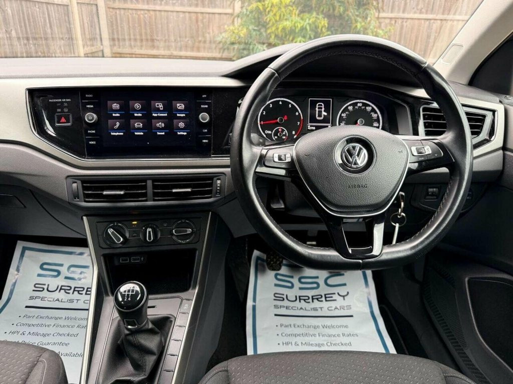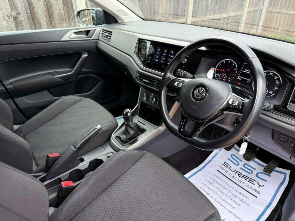 Surrey Specialist Cars are proud to present our lovely Volkswagen Polo SE TSI. This amazing car comes with Service History, finished in stunning metallic grey with grey contrast interior. The car was last serviced in September 2025 at 41,619 miles. The car has a Long MOT until October 2026 so it is ready to go. The 1L Petrol engine offers superb economy at over 60 MPG on combined cycle. Features Include Multifunction Steering Wheel, Trip Computer, Apple CarPlay, Android Auto, Cruise Control, Stereo/Phone Control, FM/DAB Radio, CD Player, Bluetooth Audio, AUX Input, USB Input, SD Card, Start/Stop System, Touch Screen, Air Conditioning, 12V Charging Socket, two Cup Holders, Electric Windows, Fog Lights, 5 Speed Manual Gearbox, 15 Inch Alloy Wheels and two Remote Control Keys to name a few. We are open 7 days a week, and prepare all of our cars to the highest standards. We have a Click & Collect option available, and can also arrange delivery on request. All cars are HPI clear and a full history report is provided with every car. We welcome any inspection and viewing is highly recommended. All cars are available with our AA warranty starting from just ?150 for 3 months. Debit and credit card facilities are available and we offer competitive finance packages. If you have any questions or would like to view any of our cars give us a call or drop us a message on whatsapp 01483 363 144 to arrange an appointment with one of our team. We also offer full bespoke walkaround videos on 15in Alloy Wheels - Sassari, 3 Rear Three-Point Seat Belts with Tensi, ABS - Anti-Lock Braking System with HBA , Air Conditioning - Manual, Air Vents with High Gloss Black Trim, Alarm with Interior Protection with Deac, Automatic Post-Collision Braking System, Bag Hooks in the Luggage Compartment x2, Black Radiator Grille with Chrome Trim, Black Radiator Grille with Chrome Trimme, Body Coloured Bumpers and Side Sills, Body Coloured Door Handles and Mirrors w, Car-Net App Connect, Centre Console with Open Storage Compart, Chrome Effect Handbrake Grip Button, Composition Media System, Cup Holders - Front x2 and 12v Socket wi, Curtain Airbag System for Front and Rear, DataPlug, Decorative Inser