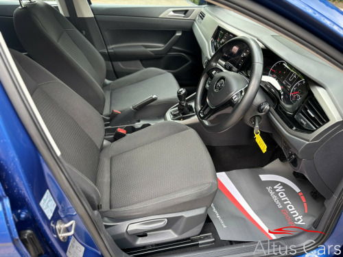 WE ARE CLOSED 17-24TH OCTOBER INCLUSIVE. PLEASE SEND US YOUR ENQUIRY VIA THE WEBSITE (www.altuscars.co.uk) AND WE WILL RESPOND WHEN WE RE-OPEN ON 25TH OCTOBER.2019 Volkswagen Polo 1.0 TSI GPF SE Hatchback in Reef Blue , 5 speed manual gearbox, 65k Miles with comprehensive/full service history making this the perfect first car. Recent service & MOT that expires on 18/06/2026. Equipped with Parking Sensors - Front and Rear, Cruise Control with Speed Limiter, Park Pilot, Automatic lights, Heated electric mirrors, Carplay/Android Auto, DAB radio, Aircon, Hard wired front & rear dash cam. We are a family business and pride ourselves on supplying top quality used cars. This Volkswagen will come with 6 months comprehensive WSG Platinum warranty & roadside assistance plus a full Motor Check provenance report for your peace of mind. Optional 12 months AA cover and 5 day driveaway insurance also available. P/ex welcome in alloy wheels - sassari, door mirrors - electrically adjustable and heated, electric windows - front and rear, tinted glass - heat insulating green, abs - anti-lock braking system with hba - hydraulic brake assist, automatic post-collision braking system, curtain airbag system for front and rear passengers including side airbags in the front, esc - electronic stability control, air conditioning - manual, decorative inserts - limestone grey, multifunction leather steering wheel including leather trimmed gear knob and handbrake grip, car-net app connect, composition media system, driver alert system, multifunction computer plus, power assisted steering - speed sensitive, halogen clear headlights range adjustable with separate daytime running lights including automatic headlights on
