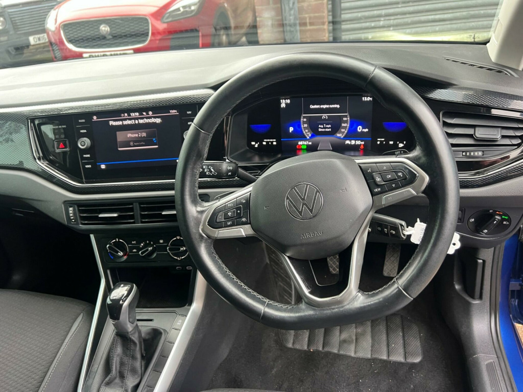 This 2022 Volkswagen Polo TSI Life is a superb example, having had only one owner since new. It features a responsive 1.0 litre Euro 6 compliant petrol engine, ensuring efficient performance for your journeys. The Life trim level comes equipped with a manually controlled air conditioning system to keep you comfortable, and automatic headlight control with LED separate daytime running lights, plus a coming home and leaving home feature. For added convenience, it includes adaptive cruise control and a Bluetooth mobile phone interface, allowing for seamless connectivity on the go.This particular Polo stands out with its LED headlights, providing excellent visibility. Its large boot space offers practicality for shopping trips or luggage, and its low insurance group rating makes it an economical choice. These aspects, combined with its single owner provenance, indicate that this Volkswagen Polo TSI Life is a well cared for and appealing option compared to other similar vehicles on the market. v socket - centre console, 15in alloy wheels - essex, 2 usb-c ports in the front and 2 usb-c charging socket on the centre console in the rear, 3-point seatbelts in front with seatbelt pretensioners, abs - anti-lock braking system with hba - hydraulic brake assist, adaptive cruise control, airbags - front seat side impact, anti-theft alarm system with interior monitoring - backup horn and towing protection, anti-theft wheel bolts, armrest - front centre, automatic dimming interior rear view mirror, automatic headlight control with led separate daytime running lights and coming home-leaving home feature, automatic post-collision braking system, bluetooth mobile phone interface, body coloured - door mirrors and door handles, body coloured bumpers, chrome plated radiator grille inserts - air vent surrounds and light switch surrounds, curtain and side airbags in front with centre airbag, decorative inserts in dash and doors panels - lava stone black gloss-matt, digital cockpit - basic - 8in display, diversity antenna for fm reception, door mirrors - power folding - adjustable and heated - with front passenger exterior mirror lowering function, door and side trim panel, driver alert system, driver and front passenger seat height adjustment, drivers and front passengers airbags with front passenger airbag deactivation switch, drivers and front passengers safety optimised head restraints, drivers and front passengers sun visors with illuminated vanity mirrors, dust and pollen filter, esc - electronic stability control, electric windows - front and rear, electromechanical speed sensitive power steering, electronic engine immobiliser, extended and predictive pedestrian-cyclist protection, front assist - radar sensor controlled distance monitoring system - city emergency braking system and predictive pedestrian protection, front seat back storage pockets, gear knob - leather, handbrake lever handle in leather, headlight range control, headliner - ceramique, heat insulating glass in side and rear windows, heat insulating glass windscreen, hill hold control, isofix child seat preparation, led headlights, led rear combination lamps, leather-wrapped multi-function steering wheel with paddle shift, light and sight pack, light and vision pack, luggage compartment cover, luggage compartment floor, luggage compartment light, manually controlled air conditioning system, multifunction camera, pedal cluster - standard, preparation for we connect and we connect plus, radio, rain sensor, reading lights - front x2 and rear x2, ready 2 discover infotainment system, rear fog light, rear seat bench not split - backrest split folding 60-40, rear shock absorbers, rear three-point seatbelts x3, rear windscreen washer and wiper with interval delay, remote central locking with 2 remote folding keys, single tone horn, speedo and rev counter - electronic odometer - trip - service interval display - exterior temperature gauge, standard rear axle, standard seats in front, three rear head restraints, travel assist, travel assist including emergency assist, tyre mobility kit and compressor, tyre pressure loss indicator, warning buzzer and light for front and rear seat belts if unfastened, washer fluid level indicator, wireless app connect, ecall - emergency call service