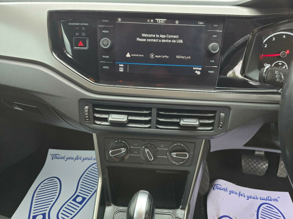 This 2021 Volkswagen Polo TSI Match is a superb example, having been owned by just one careful keeper from new and boasting a clear vehicle history check. Powered by an efficient 1.0 litre Euro 6 compliant petrol engine, this model offers a smooth and economical driving experience. It comes equipped with practical features such as halogen clear headlights with automatic activation and separate daytime running lights, along with front and rear parking sensors to assist with manoeuvring. Inside, you'll find the Ready 2 Discover infotainment system with Bluetooth connectivity, allowing seamless integration with your smartphone via App Connect, supporting both Android Auto and Apple CarPlay. Manual air conditioning ensures a comfortable cabin environment for all journeys.The Polo TSI Match stands out with its generous boot space, offering ample room for shopping or luggage, making it a versatile choice for everyday needs. Furthermore, its low insurance group rating indicates that running costs are kept to a minimum, providing excellent value. These aspects, combined with its single owner provenance and comprehensive features, position this Volkswagen Polo as a highly desirable and practical option compared to other vehicles in its class. in alloy wheels - seyne black diamond turned, 3 rear three-point seat belts with tensioners on outer seats, abs - anti-lock braking system with hba - hydraulic brake assist, air conditioning - manual, air vents with high gloss black trim, alarm with interior protection with deactivation via infotainment system, app connect, automatic post-collision braking system, bag hooks in the luggage compartment x2, black radiator grille with chrome trimmed louvres, body coloured bumpers and side sills, body coloured door handles and mirrors with integrated indicators, centre console with open storage compartment, chrome effect handbrake grip button, cruise control with speed limiter, cup holders - front x2 and 12v socket with cover, curtain airbag system for front and rear passengers including side airbags in the front, decorative inserts - limestone grey, door mirrors - electrically adjustable and heated, driver alert system, drivers and front passengers airbags with front passenger airbag deactivation switch, drivers and front passengers safety optimised head restraints, drivers and front passengers sun visors with illuminated vanity mirrors, dust and pollen filter, esc - electronic stability control, electric windows - front and rear, electronic engine immobiliser, front assist - radar sensor controlled distance monitoring system - city emergency braking system and predictive pedestrian protection, front fog lights with static cornering function, front seat back storage pockets, front windscreen washers and wipers with 4 speeds including interval delay, galvanised body, gear lever gaiter in black trim surround, glovebox, halogen clear headlights range adjustable with separate daytime running lights including automatic headlights on, heated rear windscreen - automatically switches off, height and reach adjustable steering wheel, height-adjustable front three-point seat belts with tensioners, high level 3rd brake light, hill hold control, isofix child seat preparation, instrument lighting - adjustable panel illumination, interior lighting with delayed switch off, internally adjustable door mirrors, license plate with led illumination, lights on warning buzzer, luggage compartment - variable load floor, luggage compartment cover - removable, luggage compartment light, manually dimmable interior rear-view mirror, multifunction computer plus, multifunction leather steering wheel including leather trimmed gear knob and handbrake grip, parking sensors - front and rear, power assisted steering - speed sensitive, premium usb cable, reading lights - front x2 and rear x2, ready 2 discover infotainment system, rear tinted glass from b pillar backwards - approx 65 percent tinted, rear windscreen washer and wiper with interval delay - reverse activated, remote central locking with 2 remote folding keys, seats - front lumbar support, seats - height adjustment - front, speedo and rev counter - electronic odometer - trip - service interval display - digital clock and fuel gauge, split folding rear backrests 60-40, storage compartment in front and rear doors, three rear head restraints, tyre mobility kit and compressor, tyre pressure monitoring system, under seat drawers - front passenger, warning buzzer and light for front and rear seat belts if unfastened, we connect preparation