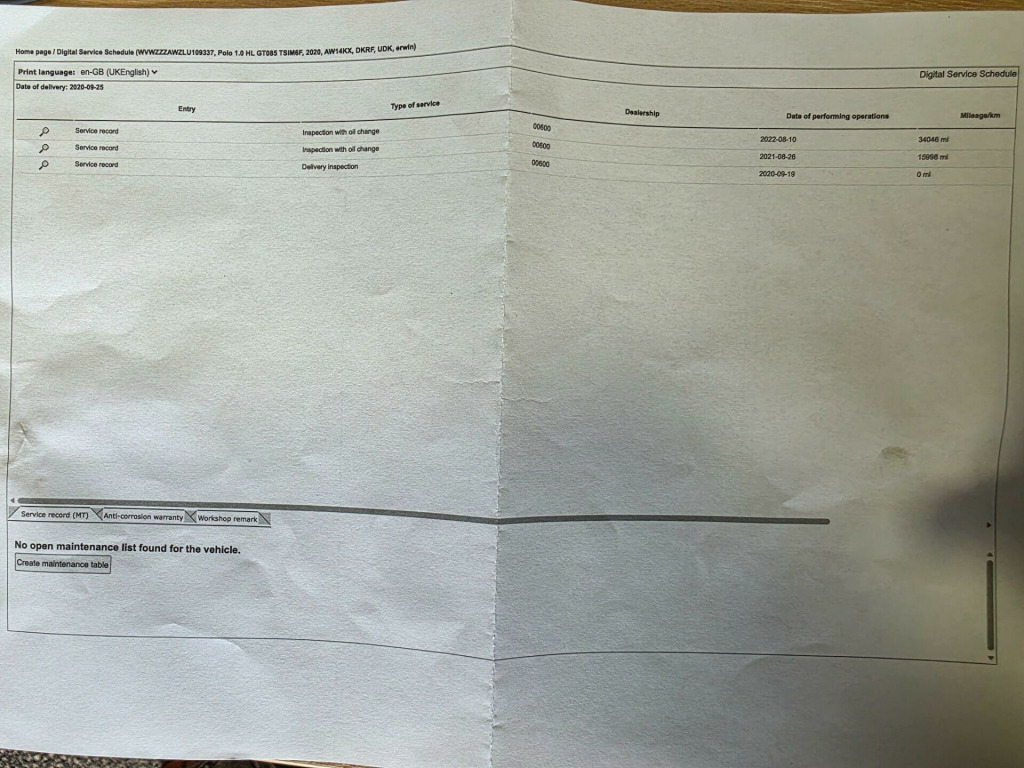 Please contact us for further information or to arrange a viewing.OPEN 7 DAYS A WEEK Out-of-hours appointments are available upon request. Most of our vehicles can be driven away the same day (typically within two working days if additional preparation is required).The majority of our vehicles are sourced directly from main dealers, where we carefully hand-pick high-quality examples to offer our customers the very best selection.We pride ourselves on going above and beyond to ensure your car-buying experience is smooth, transparent, and enjoyable — with a relaxed environment and no pushy sales tactics.For enquiries, please get in touch: Mobile: 07891 709799 Landline: 01536 263876 Email: [email protected] All our vehicles are HPI clear and, subject to status and exclusions, will come with: • A fresh MOT* • A fresh service* • 6 months warranty* *Terms and conditions apply.. 16in Alloy Wheels - Sebring Galvano Grey, 3 Rear Three-Point Seat Belts with Tensioners on Outer Seats, ABS - Anti-Lock Braking System with HBA - Hydraulic Brake Assist, Air Conditioning - Manual, Alarm with Interior Protection with Deactivation via Infotainment System, Ambient Lighting in Front Footwell and Light Stripes Below Trim in Front and Rear Doors and Dashboard, App Connect, Automatic Post-Collision Braking System, Bag Hooks in the Luggage Compartment x2, Black Radiator Grille with Chrome Trimmed Louvres, Body Coloured Bumpers and Side Sills, Body Coloured Door Handles and Mirrors with Integrated Indicators, Carpet Mats - Front and Rear, Centre Console with Open Storage Compartment, Chrome Effect Handbrake Grip Button, Chrome Effect Trapezoid Exhaust Tailpipe Surrounds Left and Right, Chrome Plated Air Vent Surrounds, Chrome Plated Electric Mirror Adjustment Switch Surround, Chrome Plated Electric Window Button Surrounds, Chrome Plated Instrument Surrounds, Cup Holders - Front x2 and 12v Socket with Cover, Curtain Airbag System for Front and Rear Passengers including Side Airbags in the Front, Decorative Inserts - Glossy Shadow Steel, Door Sill Protectors with R-Line Logo, Driver Alert System, Drivers and Front Passengers Airbags with Front Passenger Airbag Deactivation Switch, Drivers and Front Passengers Safety Optimised Head Restraints, Dust and Pollen Filter, ESC - Electronic Stability Control, Electric Windows - Front and Rear, Electrically Foldable Door Mirrors, Electronic Engine Immobiliser, Front Assist - Radar Sensor Controlled Distance Monitoring System - City Emergency Braking System and Predictive Pedestrian Protection, Front Centre Armrest with Storage Compartment - Longitudinal Adjustment, Front Centre Armrest with x2 USB-C ports in front and x2 USB-C Ports in the Rear, Front Fog Lights with Static Cornering Function, Front Seat Back Storage Pockets, Front Sports Seats with R-Line Logo on Seat Backrest, Front Windscreen Washers and Wipers with 4 Speeds including Interval Delay, Galvanised Body, Gear Lever Gaiter in Black Trim Surround, Glovebox, Halogen Clear Headlights Range Adjustable with Separate Daytime Running Lights including Automatic Headlights On, Heated Rear Windscreen - Automatically Switches Off, Height and Reach Adjustable Steering Wheel, Height-Adjustable Front Three-Point Seat Belts with Tensioners, High Level 3rd Brake Light, Hill Hold Control, ISOFIX Child Seat Preparation, Instrument Lighting - Adjustable Panel Illumination, Interior Lighting - 2 Reading Lights Front and Rear with Interior Delay and Dimming Function, Interior Lighting with Delayed Switch Off, Internally Adjustable Door Mirrors, LED Tinted Rear Light Clusters, Leather Trimmed Three-Spoke Multifunction Steering Wheel with Aluminium Inserts and R-Line Logo, License Plate with LED Illumination, Light and Sight Pack, Lights on Warning Buzzer, Luggage Compartment - Variable Load Floor, Luggage Compartment Cover - Removable, Luggage Compartment Light, Multifunction Computer Plus, Parking Sensors - Front and Rear, Pedals - Stainless Steel, Power Assisted Steering - Speed Sensitive, Premium USB Cable, R-Line Styling Pack, Rain Sensor and Automatic Dimming Interior Rear-View Mirror, Ready 2 Discover Infotainment System, Rear Diffuser, Rear Tinted Glass from B Pillar Backwards - Approx 65 Percent Tinted, Rear Windscreen Washer and Wiper with Interval Delay - Reverse Activated, Remote Central Locking with 2 Remote Folding Keys, Seats - Front Lumbar Support, Seats - Height Adjustment - Front, Speedo and Rev Counter - Electronic Odometer - Trip - Service Interval Display - Digital Clock and Fuel Gauge, Split Folding Rear Backrests 60-40, Storage Compartment in Front and Rear Doors, Three Rear Head Restraints, Titanium Black Rooflining - Internal Grab Handles and Sun Visors, Tyre Mobility Kit and Compressor, Tyre Pressure Monitoring System, Under Seat Drawers - Front Passenger, Unique R-Line Badging, Warning Buzzer and Light for Fron. Part service history