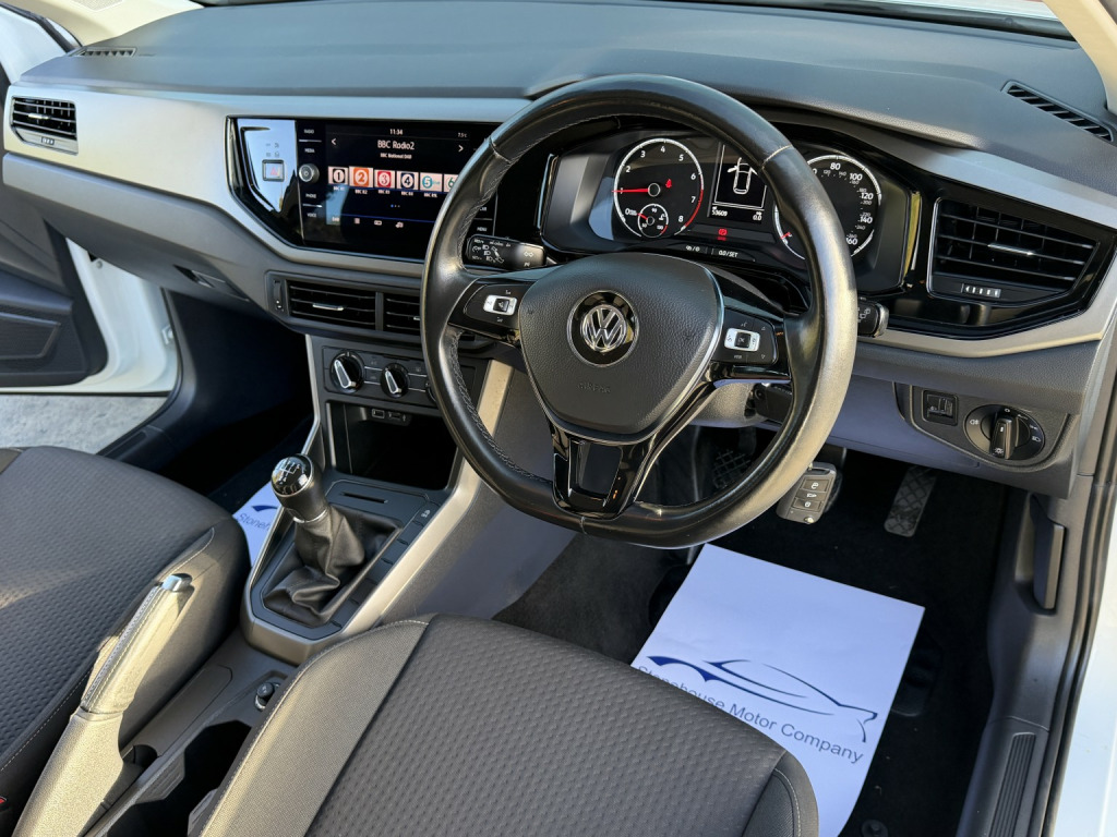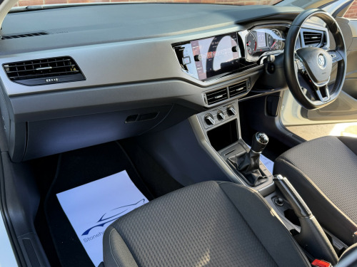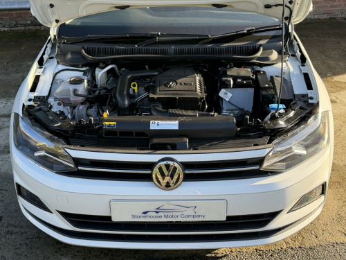 Finance available from 10.9 % APR. Stonehouse Motor Company are pleased to offer for sale this lovely Volkswagen Polo finished in the appealing colour combination of Pure white with black cloth upholstery. The desirable 1.0 turbo engine engine produces an incredible 94bhp, coupled to the fantastic manual transmission. The well presented interior of this Polo boasts some useful features to keep you comfortable on the road including Apple car play, bluetooth phone connection, air conditioning, electric windows, electric mirrors and trip computer. Externally the well presented bodywork is complimented by the original 15 spoke design alloy wheels. Since being registered in 2018 this VW has covered only 52,000 miles, during this time the previous owners have maintained this vehicle well, whilst keeping part of the service history log up to date. The most recent service being carried out at 51,500 miles. As with all of our retail vehicles a fresh MOT will be added prior to sale. Viewing by appointment only, please call ahead to avoid disappointment. Part exchange welcome. Deposit via debit/credit card - balance by bank transfer or pre arrange finance.