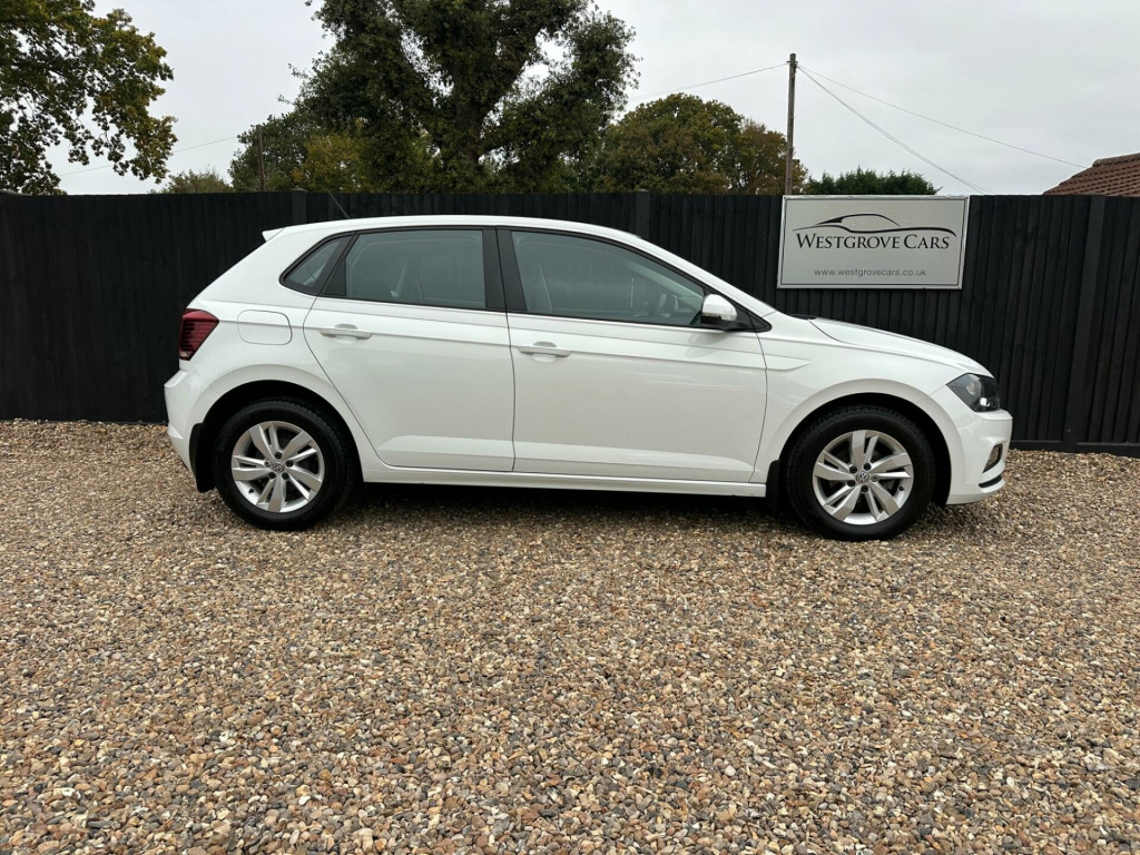 Westgrove Cars are delighted to be able to offer for sale this Low Mileage Volkswagen Polo 1.0 TSI SE Euro 6 (s/s) 5dr. Great looking car with Service History and two keys are supplied. At Westgrove Cars we are proud to have a fantastic relationship with the RAC, and are able to offer you 3 months warranty, 12 months roadside assistance completely free of charge with every vehicle, and longer-term warranties can be upgraded to if required. Highly competitive finance options are available. We are easy to locate and only 7 minutes from the M25 Junction 11. At Westgrove Cars we operate on an appointment only basis, however we will always do our upmost to accommodate all appointments. If traveling by public transport, then just give us a call and we can arrange a collection service for you to make your journey as easy as possible. If you have any questions just give us a call as we're always happy to help anyway we can. in alloy wheels - sassari, 3 rear three-point seat belts with tensioners on outer seats, abs - anti-lock braking system with hba - hydraulic brake assist, air conditioning - manual, air vents with high gloss black trim, alarm with interior protection with deactivation via infotainment system, automatic post-collision braking system, bag hooks in the luggage compartment x2, black radiator grille with chrome trim, black radiator grille with chrome trimmed louvres, body coloured bumpers and side sills, body coloured door handles and mirrors with integrated indicators, car-net app connect, centre console with open storage compartment, chrome effect handbrake grip button, composition media system, cup holders - front x2 and 12v socket with cover, curtain airbag system for front and rear passengers including side airbags in the front, dataplug, decorative inserts - limestone grey, door mirrors - electrically adjustable and heated, driver alert system, drivers and front passengers airbags with front passenger airbag deactivation switch, drivers and front passengers safety optimised head restraints, drivers and front passengers sun visors with illuminated vanity mirrors, dust and pollen filter, esc - electronic stability control, electric windows - front and rear, electronic engine immobiliser, front assist - radar sensor controlled distance monitoring system - city emergency braking system and predictive pedestrian protection, front seat back storage pockets, front windscreen washers and wipers with 4 speeds including interval delay, full size spare wheel, gear lever gaiter in black trim surround, glovebox, halogen clear headlights range adjustable with separate daytime running lights including automatic headlights on, heated rear windscreen - automatically switches off, height and reach adjustable steering wheel, height-adjustable front three-point seat belts with tensioners, high level 3rd brake light, hill hold control, isofix child seat preparation, instrument lighting - white adjustable panel illumination, interior lighting with delayed switch off, license plate with led illumination, lights on warning buzzer, luggage compartment - variable load floor, luggage compartment cover - removable, luggage compartment light, manually dimmable interior rear-view mirror, multifunction computer plus, multifunction leather steering wheel including leather trimmed gear knob and handbrake grip, power assisted steering - speed sensitive, premium usb cable, reading lights - front x2 and rear x2, rear windscreen washer and wiper with interval delay - reverse activated, remote central locking with 2 remote folding keys, seats - height adjustment - front, speedo and rev counter - electronic odometer - trip - service interval display - digital clock and fuel gauge, split folding rear backrests 60-40, storage compartment under front seats, storage compartment in front and rear doors, three rear head restraints, tinted glass - heat insulating green, tool kit and jack, two-tone horn, tyre pressure monitoring system, warning buzzer and light for front and rear seat belts if unfastened