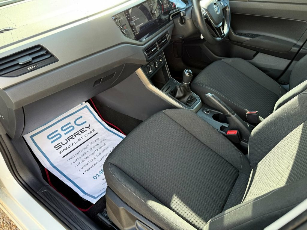 Surrey Specialist Cars are proud to present our lovely Volkswagen Polo SE TSI. This amazing car comes with Service History, finished in stunning metallic white with grey contrast interior. The car was last serviced in March 2025 37,652 miles. The car has a Long MOT until March 2026 so it is ready to go. The 1L Petrol engine offers superb economy at over 60 MPG on combined cycle. Features Include Multifunction Steering Wheel, Trip Computer, New Tyres and New Water Pump Cruise Control, Stereo/Phone Control, Android Auto, Apple CarPlay, FM/DAB Radio, CD Player, Bluetooth Audio, AUX Input, USB Input, SD Card, Start/Stop System, Touch Screen, Air Conditioning, 12V Charging Socket, two Cup Holders, Electric Windows, Fog Lights, 5 Speed Manual Gearbox, 15 Inch Alloy Wheels and two Remote Control Keys to name a few. 15in Alloy Wheels - Sassari, 3 Rear Three-Point Seat Belts with Tensi, ABS - Anti-Lock Braking System with HBA , Air Conditioning - Manual, Air Vents with High Gloss Black Trim, Alarm with Interior Protection with Deac, Automatic Post-Collision Braking System, Bag Hooks in the Luggage Compartment x2, Black Radiator Grille with Chrome Trim, Black Radiator Grille with Chrome Trimme, Body Coloured Bumpers and Side Sills, Body Coloured Door Handles and Mirrors w, Car-Net App Connect, Centre Console with Open Storage Compart, Chrome Effect Handbrake Grip Button, Composition Media System, Cup Holders - Front x2 and 12v Socket wi, Curtain Airbag System for Front and Rear, DataPlug, Decorative Inser