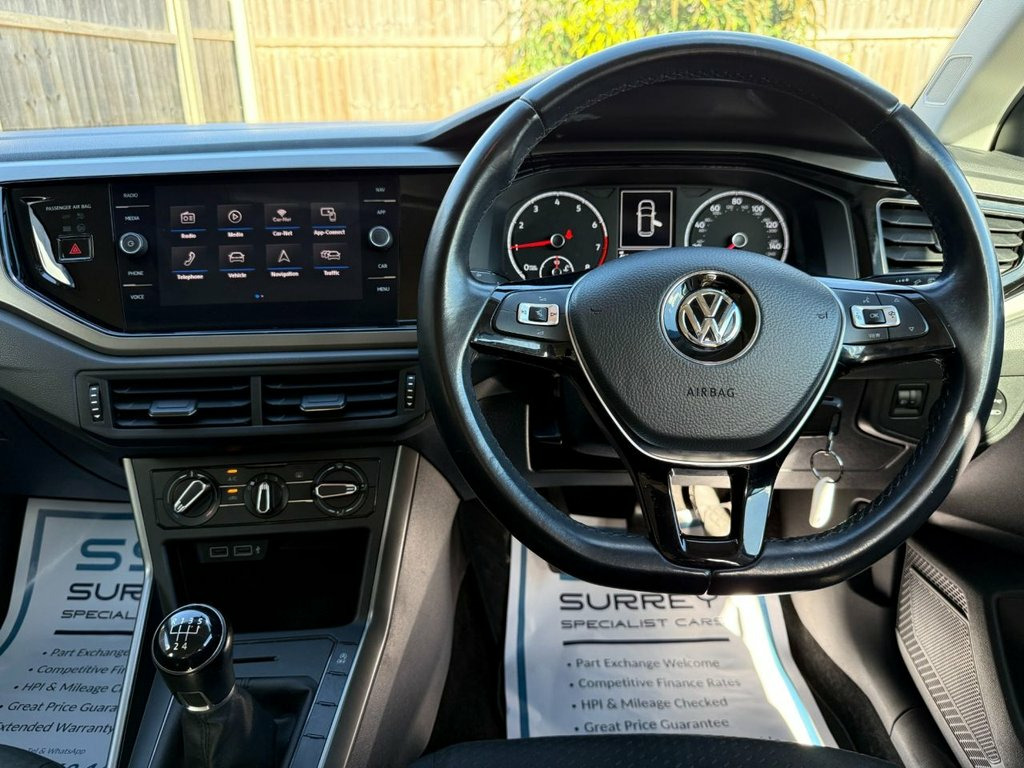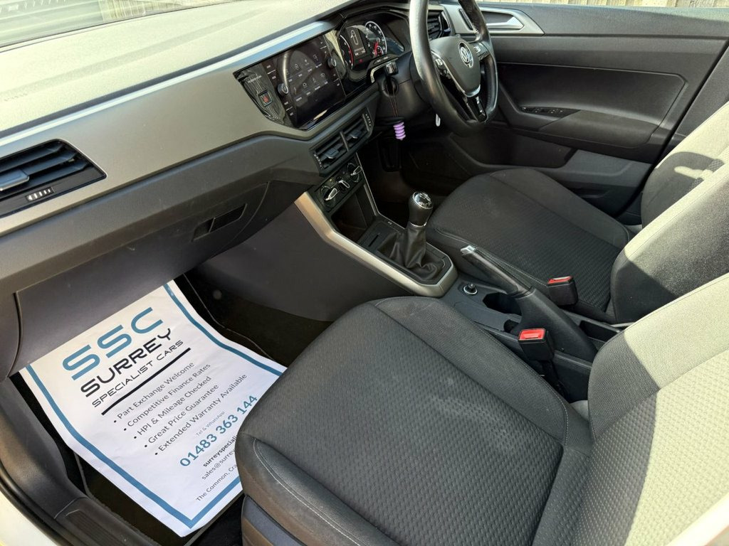 Surrey Specialist Cars are proud to present our lovely Volkswagen Polo SE TSI. This amazing car comes with Service History, finished in stunning metallic white with grey contrast interior. The car was last serviced in May 2025 at 42,269 miles. The car has a Long MOT until May 2026 so it is ready to go. The 1L Petrol engine offers superb economy at over 54 MPG on combined cycle. Features Include Multifunction Steering Wheel,  Trip Computer, Satellite Navigation,  Cruise Control, Stereo/Phone Control, FM/DAB Radio, CD Player, Bluetooth Audio, AUX Input, USB Input, SD Card, Start/Stop System, Touch Screen, Air Conditioning, 12V Charging Socket, two Cup Holders, Electric Windows, Fog Lights, 5 Speed Manual Gearbox, 15 Inch Alloy Wheels and two Remote Control Keys to name a few.   15in Alloy Wheels - Sassari, 3 Rear Three-Point Seat Belts with Tensi, ABS - Anti-Lock Braking System with HBA , Air Conditioning - Manual, Air Vents with High Gloss Black Trim, Alarm with Interior Protection with Deac, Automatic Post-Collision Braking System, Bag Hooks in the Luggage Compartment x2, Black Radiator Grille with Chrome Trim, Black Radiator Grille with Chrome Trimme, Body Coloured Bumpers and Side Sills, Body Coloured Door Handles and Mirrors w, Car-Net App Connect, Centre Console with Open Storage Compart, Chrome Effect Handbrake Grip Button, Composition Media System, Cup Holders - Front x2 and 12v Socket wi, Curtain Airbag System for Front and Rear, DataPlug, Decorative Inser