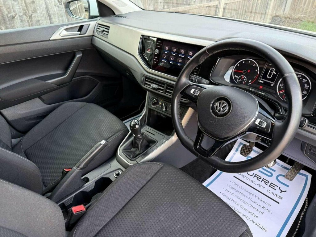 Surrey Specialist Cars are proud to present our lovely Volkswagen Polo SE TSI. This amazing car comes with Full Service History, finished in stunning metallic white with grey contrast interior. The car has a Long MOT until May 2026 so it is ready to go. The 1L Petrol engine offers superb economy at over 60 MPG on combined cycle. Features Include Multifunction Steering Wheel, Trip Computer, Cruise Control, Stereo/Phone Control, FM/DAB Radio, CD Player, Bluetooth Audio, AUX Input, USB Input, SD Card, Parking Sensors, Start/Stop System, Touch Screen, Air Conditioning, 12V Charging Socket, two Cup Holders, Electric Windows, Fog Lights, 5 Speed Manual Gearbox, 15 Inch Alloy Wheels and two Remote Control Keys to name a few. We are open 7 days a week, and prepare all of our cars to the highest standards. We have a Click & Collect option available, and can also arrange delivery on request. All cars are HPI clear and a full history report is provided with every car. We welcome any inspection and viewing is highly recommended. All cars are available with our AA warranty starting from just ?150 for 3 months. Debit and credit card facilities are available and we offer competitive finance packages. If you have any questions or would like to view any of our cars give us a call or drop us a message on whatsapp 01483 363 144 to arrange an appointment with one of our team. We also offer full bespoke walkaround videos on request. We are always on the lookout for high quality stock, if you 15in Alloy Wheels - Sassari, 3 Rear Three-Point Seat Belts with Tensi, ABS - Anti-Lock Braking System with HBA , Air Conditioning - Manual, Air Vents with High Gloss Black Trim, Alarm with Interior Protection with Deac, Automatic Post-Collision Braking System, Bag Hooks in the Luggage Compartment x2, Black Radiator Grille with Chrome Trim, Black Radiator Grille with Chrome Trimme, Body Coloured Bumpers and Side Sills, Body Coloured Door Handles and Mirrors w, Car-Net App Connect, Centre Console with Open Storage Compart, Chrome Effect Handbrake Grip Button, Composition Media System, Cup Holders - Front x2 and 12v Socket wi, Curtain Airbag System for Front and Rear, DataPlug, Decorative Inser