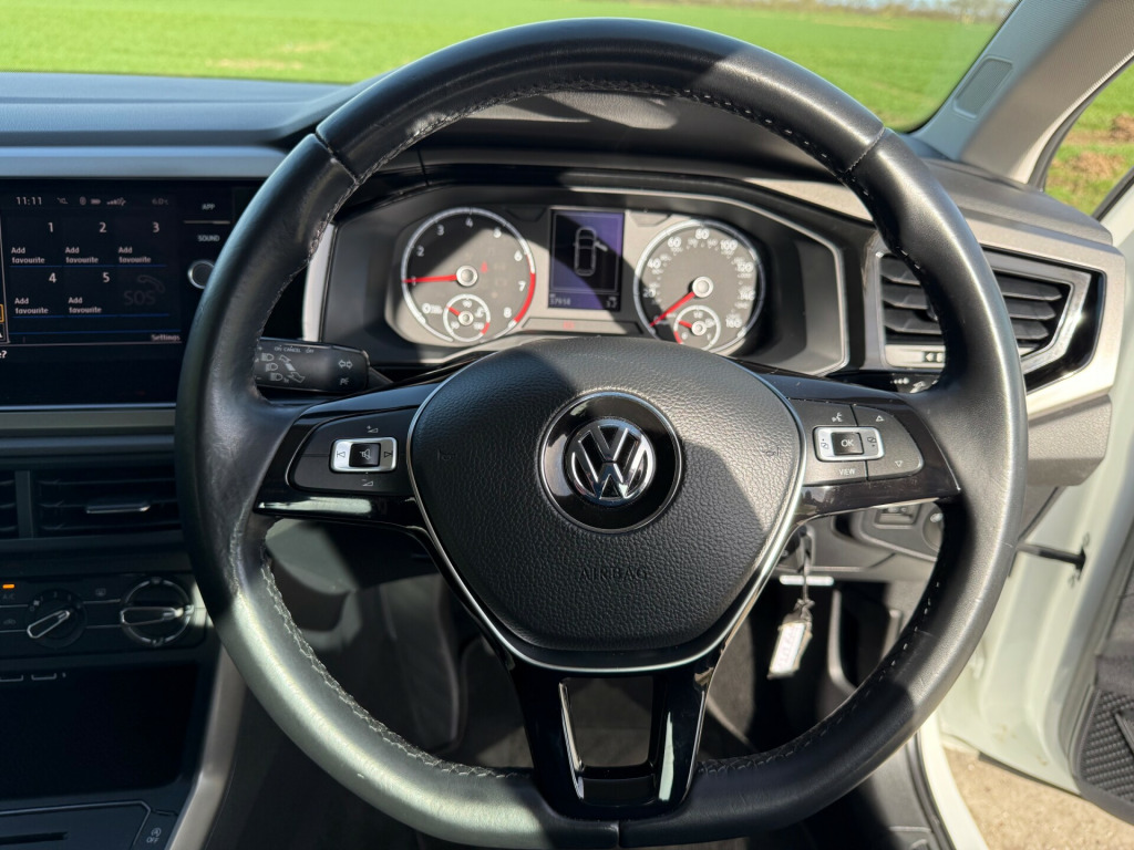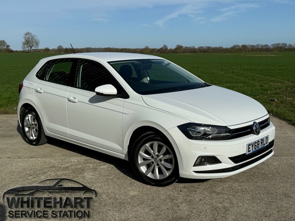 Here at Whitehart Service Station, we are pleased to offer for sale this 1 Private owner from new, 2018 ''68'' Volkswagen Polo 1.0 SE 5door, finished in White, with only 37914 miles and a Full Service History. Specification includes Electric windows, Electric door mirrors, Alloy wheels, Parking sensors, Bluetooth, Steering wheel controls and much more. If you have any questions, please call the showroom on 01702 202202 or Stuart directly on 07814 001598. in alloy wheels - sassari, black radiator grille with chrome trim, black radiator grille with chrome trimmed louvres, body coloured bumpers and side sills, body coloured door handles and mirrors with integrated indicators, door mirrors - electrically adjustable and heated, electric windows - front and rear, full size spare wheel, heated rear windscreen - automatically switches off, tinted glass - heat insulating green, 3 rear three-point seat belts with tensioners on outer seats, abs - anti-lock braking system with hba - hydraulic brake assist, alarm with interior protection with deactivation via infotainment system, automatic post-collision braking system, curtain airbag system for front and rear passengers including side airbags in the front, drivers and front passengers airbags with front passenger airbag deactivation switch, esc - electronic stability control, electronic engine immobiliser, front assist - radar sensor controlled distance monitoring system - city emergency braking system and predictive pedestrian protection, height-adjustable front three-point seat belts with tensioners, hill hold control, isofix child seat preparation, license plate with led illumination, rear windscreen washer and wiper with interval delay - reverse activated, remote central locking with 2 remote folding keys, two-tone horn, warning buzzer and light for front and rear seat belts if unfastened, air conditioning - manual, air vents with high gloss black trim, bag hooks in the luggage compartment x2, centre console with open storage compartment, chrome effect handbrake grip button, cup holders - front x2 and 12v socket with cover, decorative inserts - limestone grey, drivers and front passengers safety optimised head restraints, drivers and front passengers sun visors with illuminated vanity mirrors, dust and pollen filter, front seat back storage pockets, front windscreen washers and wipers with 4 speeds including interval delay, gear lever gaiter in black trim surround, glovebox, height and reach adjustable steering wheel, instrument lighting - white adjustable panel illumination, interior lighting with delayed switch off, luggage compartment - variable load floor, luggage compartment cover - removable, luggage compartment light, manually dimmable interior rear-view mirror, multifunction leather steering wheel including leather trimmed gear knob and handbrake grip, premium usb cable, reading lights - front x2 and rear x2, seats - height adjustment - front, speedo and rev counter - electronic odometer - trip - service interval display - digital clock and fuel gauge, split folding rear backrests 60-40, storage compartment under front seats, storage compartment in front and rear doors, three rear head restraints, tool kit and jack, car-net app connect, composition media system, dataplug, driver alert system, multifunction computer plus, power assisted steering - speed sensitive, tyre pressure monitoring system, halogen clear headlights range adjustable with separate daytime running lights including automatic headlights on, high level 3rd brake light, lights on warning buzzer