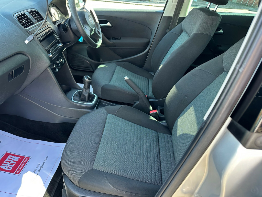 2014 14 VOLKSWAGEN POLO MATCH 1198CC PETROL 5 DOOR HATCHBACK FINISHED IN METALLIC SILVER, THIS VEHICLE HAS COVERED JUST 96,000 MILES AND COMES WITH JUST 2 PREVIOUS OWNERS FROM NEW (LAST OWNER SINCE 2020) SERVICE HISTORY INCLUDING RECENT SERVICE, MOT 11TH SPETEMBER 2026, MATCH ALLOY WHEELS, ELECTRIC FRONT WINDOWS, CLOTH INTERIOR, HEAD RESTS, HEATED REAR SCREEN, POWER STEERING, SPOT LIGHTS AND WILL BE OFFERED WITH 3 MONTHS ENGINE AND GEARBOX WARRANTY, PLEASE CALL FOR FULL DETAILS.