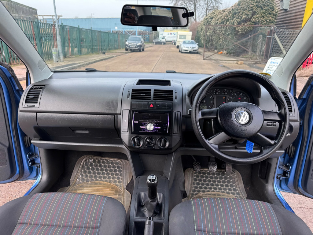 This 2005 Volkswagen Polo 1.2 S Hatchback has covered 99000 miles and is powered by a petrol engine, making it ULEZ compliant. Ideal car for new or first time driver, It features a manual transmission with 3 doors and can seat 5 people. The current MOT is valid until 27/03/2026, ensuring peace of mind the car will come with fresh MOT and new service. With 144 g/km emissions and 55 bhp, it is an efficient and reliable vehicle. This hatchback is equipped with 6Jx14in Sao Paulo alloy wheels, body-coloured bumpers, external mirrors, side protection mouldings, and a full-size steel spare wheel. This practical and stylish car is perfect for everyday use and offers a comfortable driving experience. x14in sao paulo alloy wheels, body coloured bumpers, mirrors external, side protection mouldings, spare wheel (full size steel), adjustable steering column/wheel, air-conditioning - climatic semi-auto, electric windows (front), in car entertainment (radio/cd), speakers, upholstery cloth, air bag driver, air bag passenger, air bag side, anti-lock brakes, central door locking, centre rear seat belt, front fog lights, head restraints, immobiliser, power-assisted steering, seat - isofix anchorage point (two seats - rear), colour pack, power socket